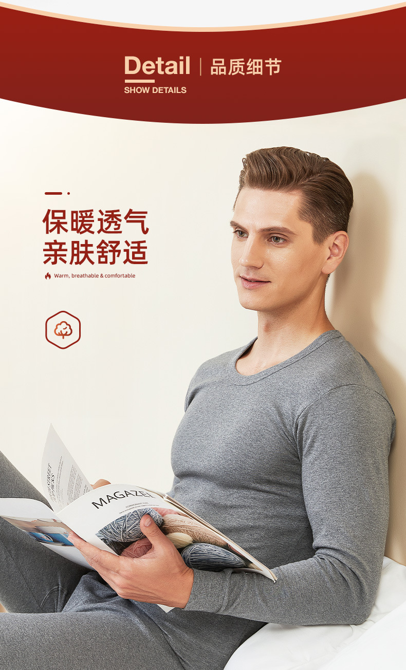 【瑜伽生活家】「男女款可选!南极人两件套」纯棉保暖内衣男士女士薄款打底全棉毛衫秋衣秋裤套装冬