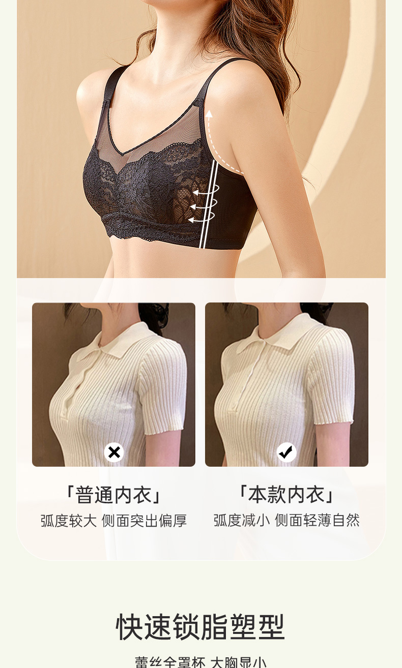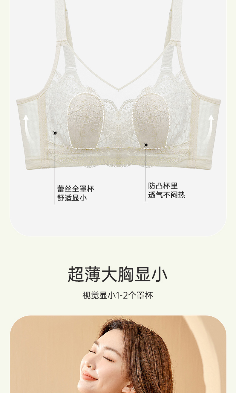 虞美人轻薄显小文胸 大胸显小 穿衣显瘦 性感舒适防震无钢圈