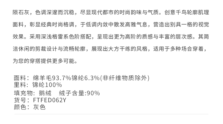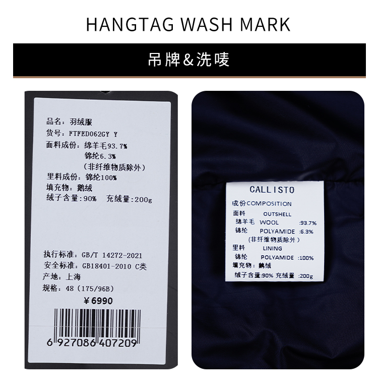callisto藏青羊毛混纺羽绒夹克 FSFED050C