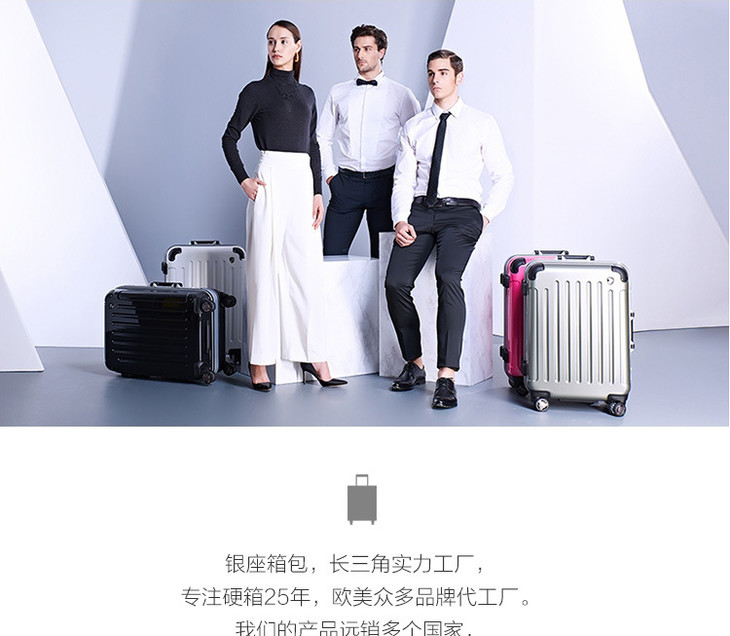 银座铝框亮面拉杆箱 男女万向轮旅行箱子 学生行李箱包A-1037K