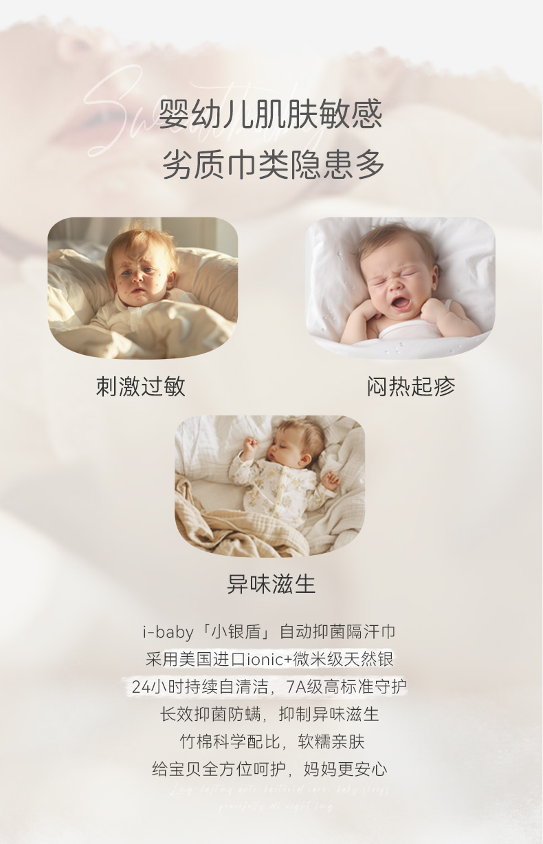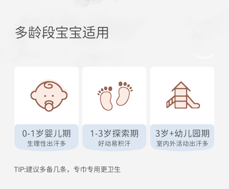 【2025年春夏新品】i-baby自然生长四层纱布低敏小月龄隔汗巾儿童吸汗巾(2条装)