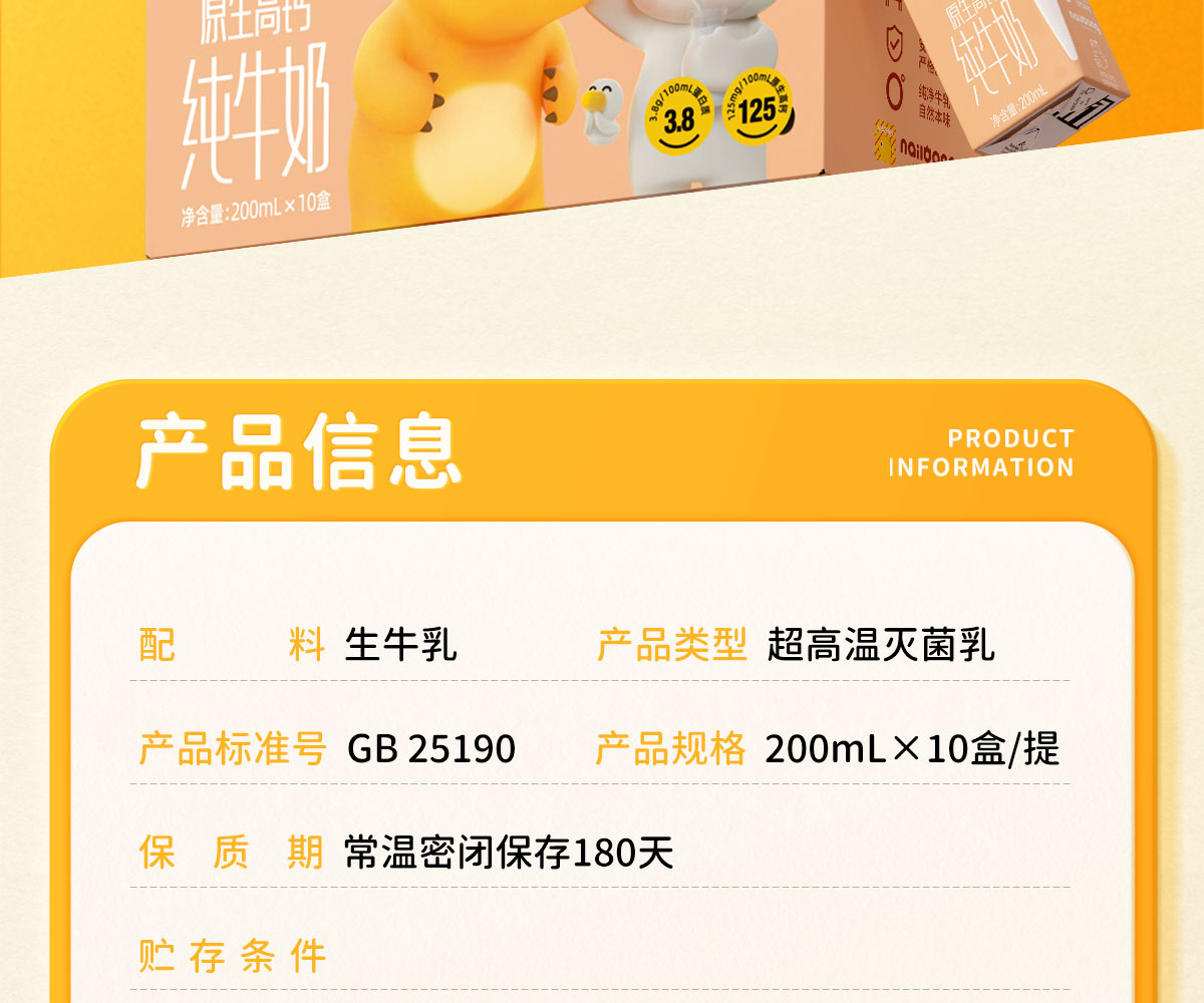认养一头牛原生高钙纯牛奶200mL*10盒*2提