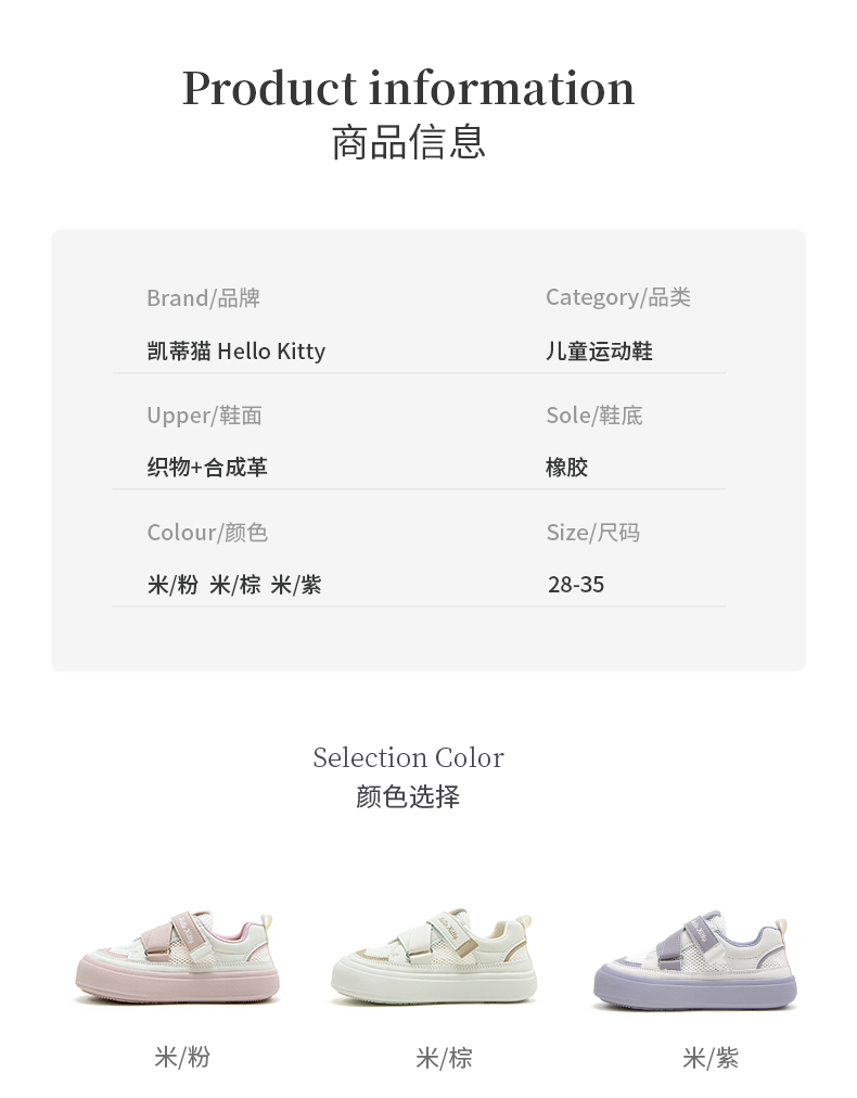 HelloKitty童鞋女童低帮板鞋夏季新款时尚百搭单网透气运动鞋 K3526887