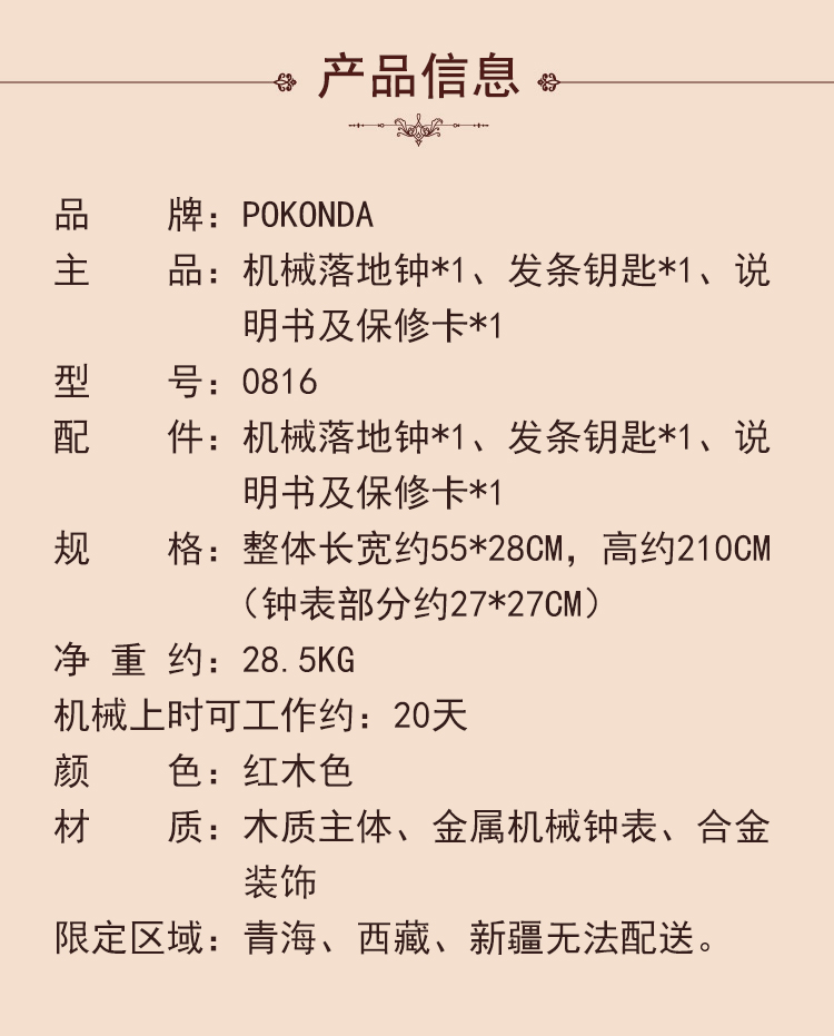 POKONDA实木机械落地钟