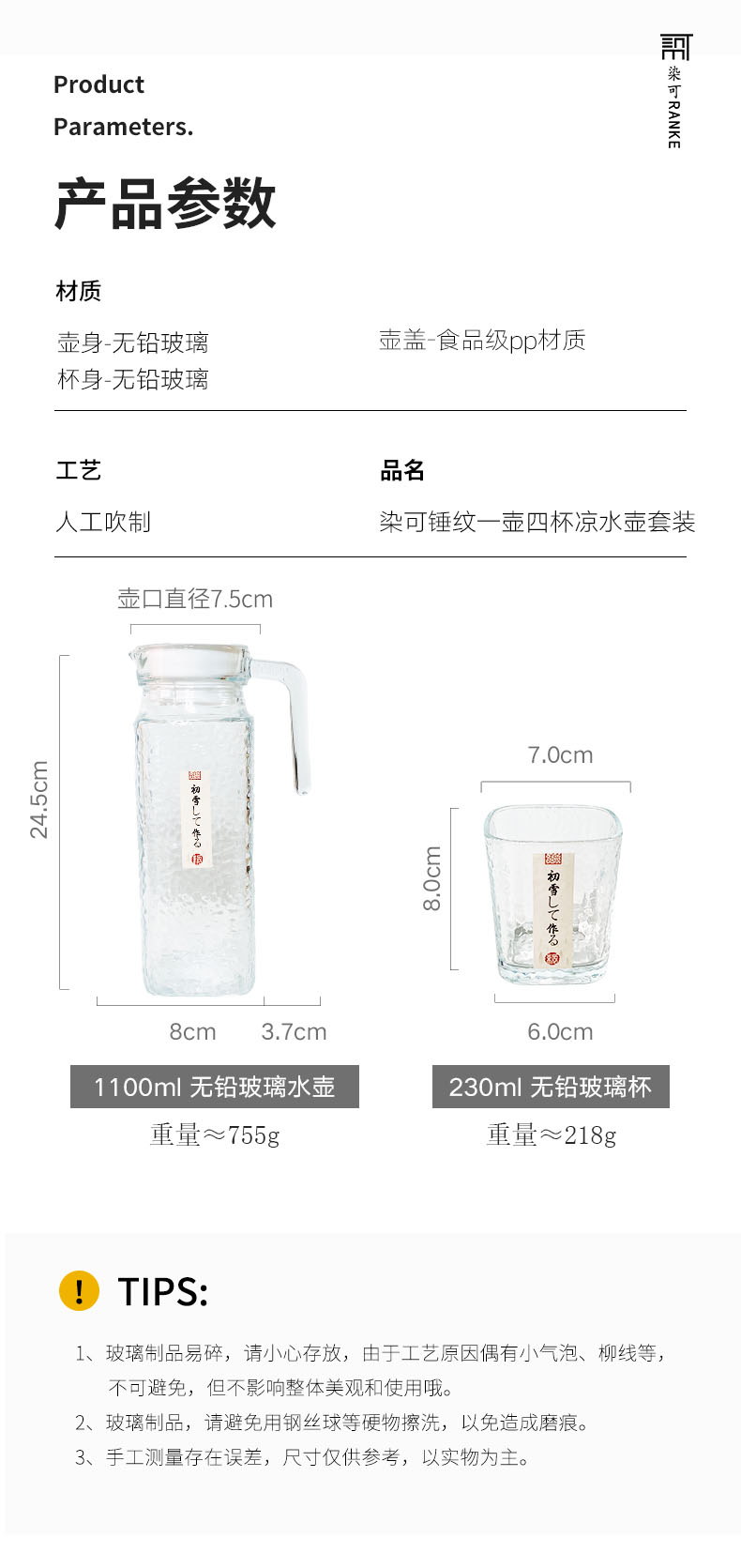 专利款出口级,限量秒杀💥29.9『染可日式锤纹一壶六杯套装』😆只需一杯果茶钱,一点都不心疼❗️❗️可放冰箱侧门,下班回家直接喝上冰水,冷饮自由