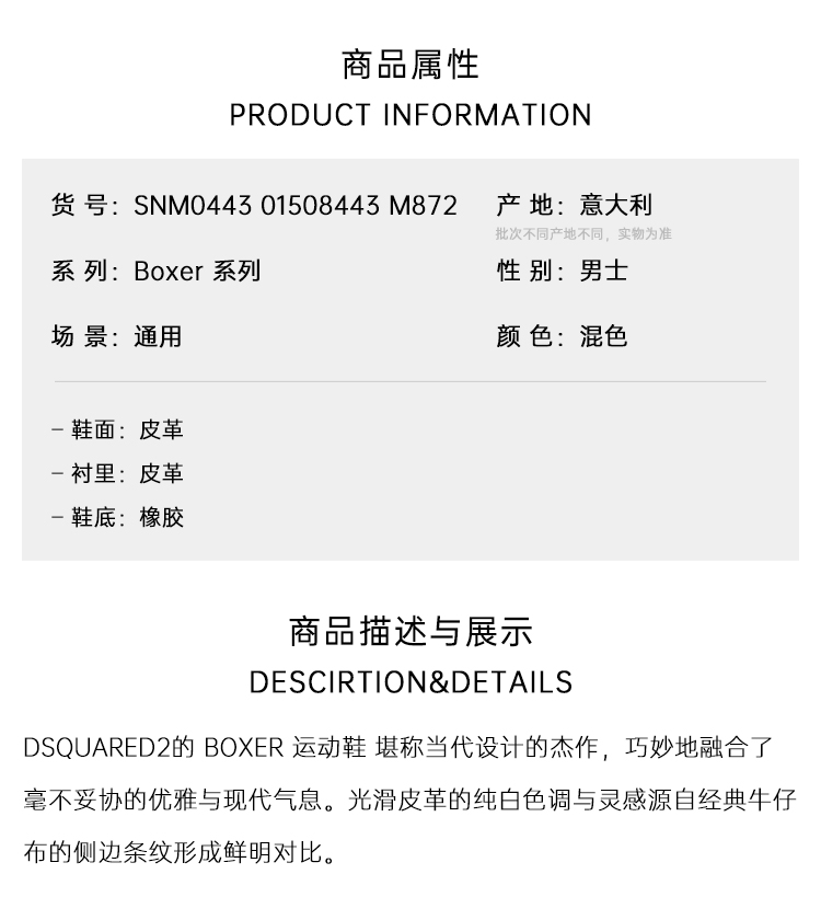DSQUARED2 男士 Boxer系列 枫叶徽标休闲运动鞋 混色 SNM0443 01508443 M872