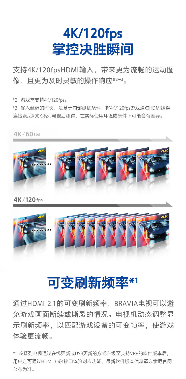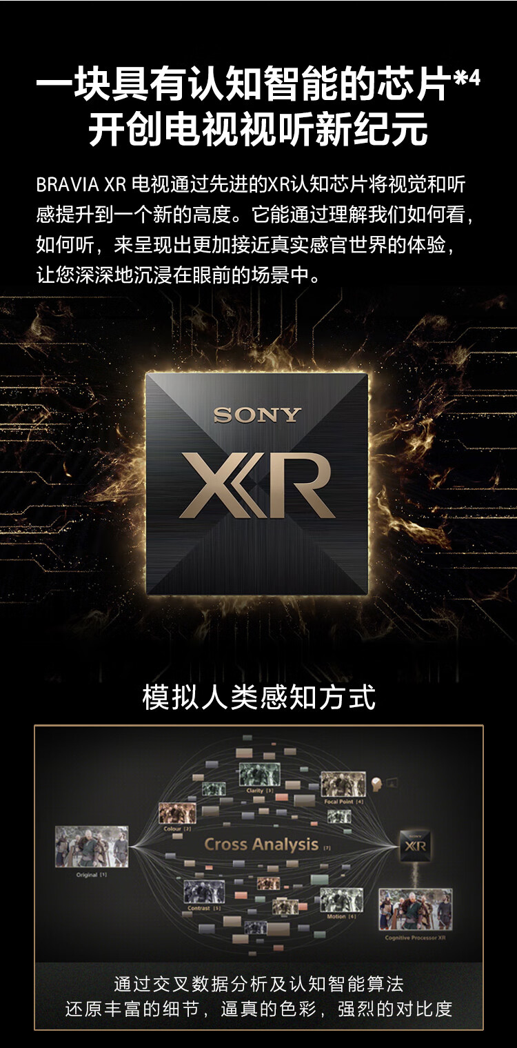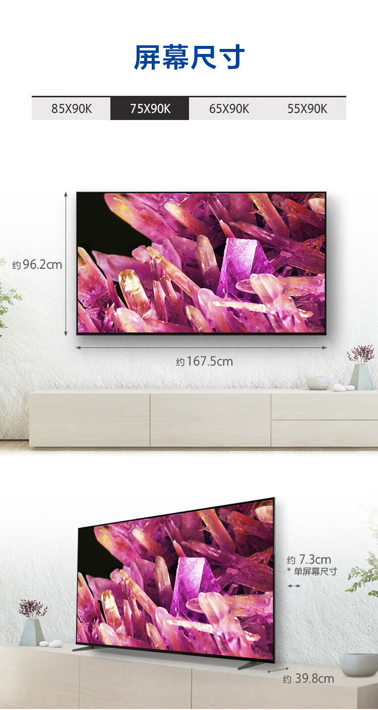 索尼(SONY)XR-75X90K 75英寸 全面屏4K超高清HDR 游戏电视 XR认知芯片 4K/120fps 京东小家 X90J升级款