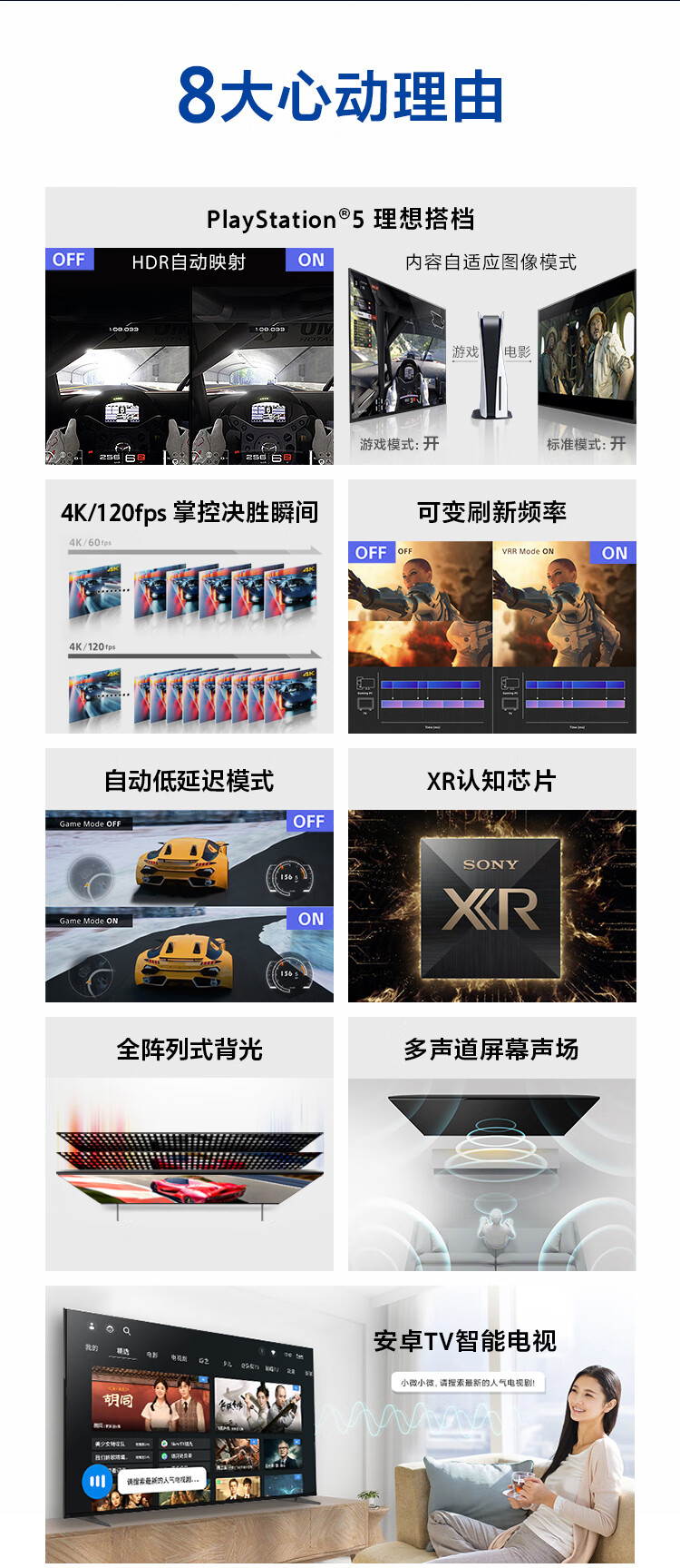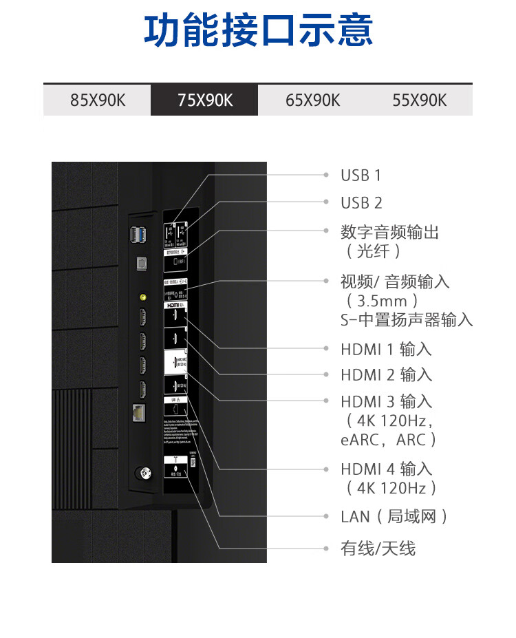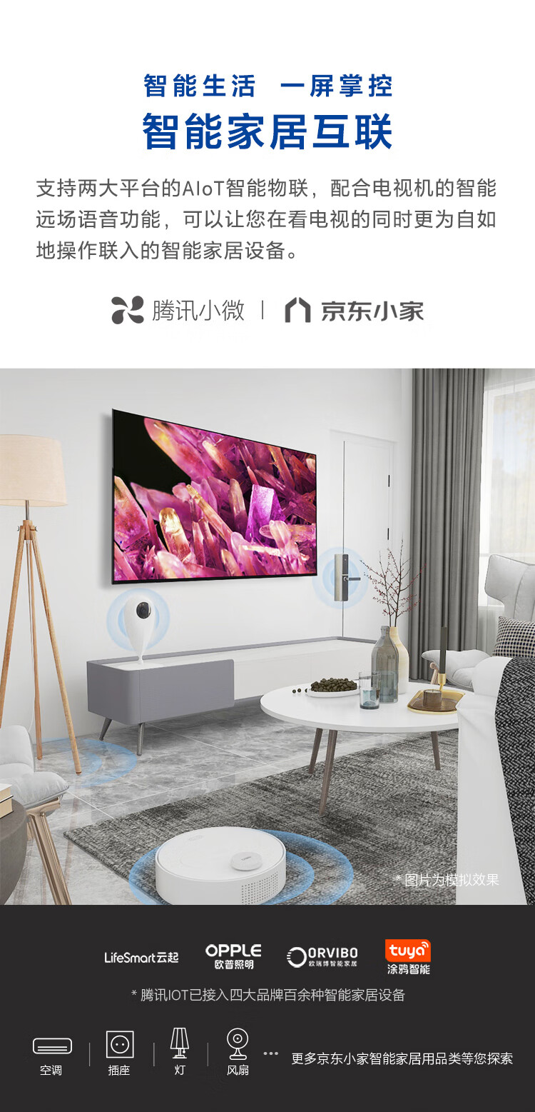 索尼(SONY)XR-75X90K 75英寸 全面屏4K超高清HDR 游戏电视 XR认知芯片 4K/120fps 京东小家 X90J升级款