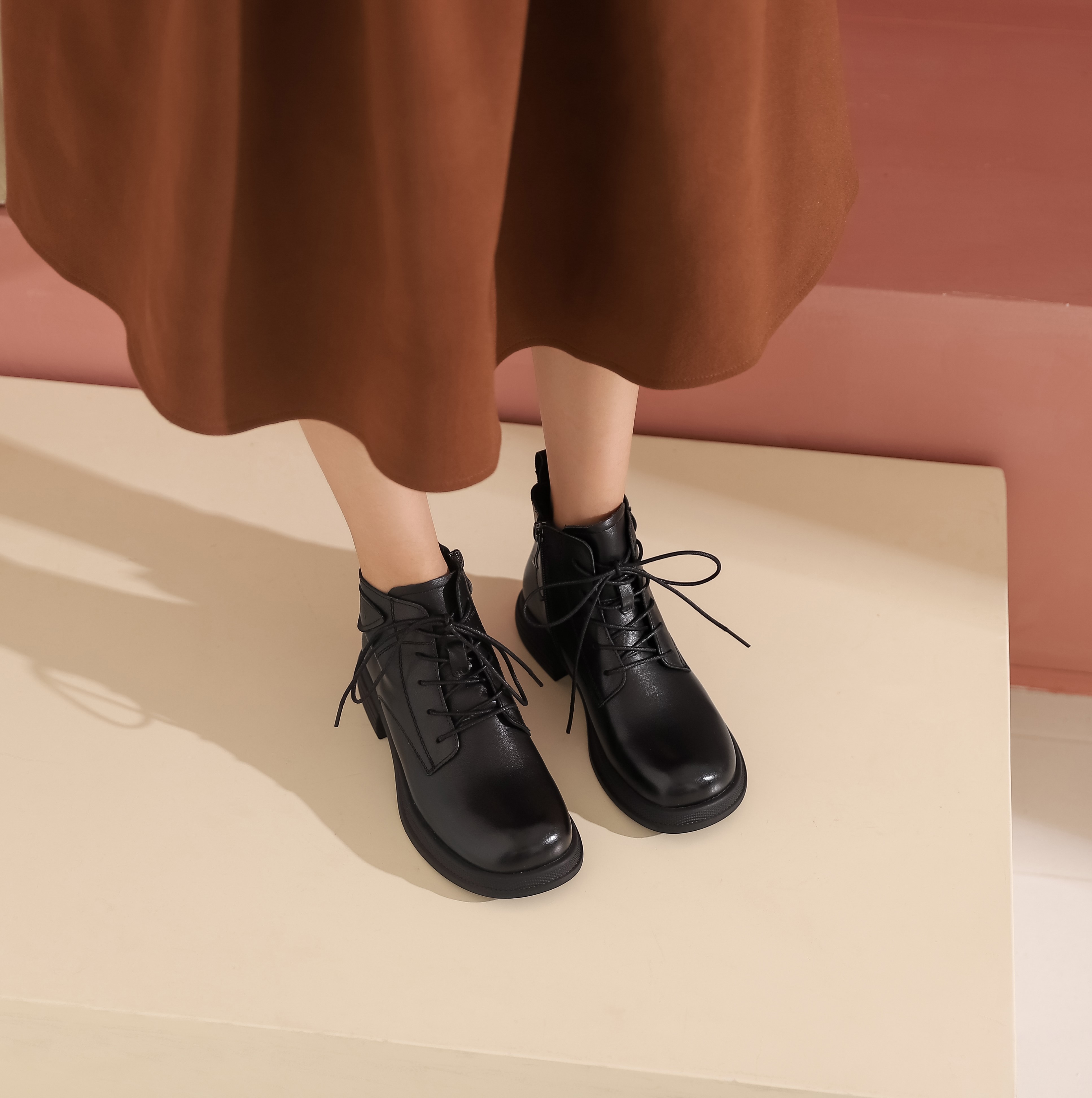 西村名物冬季新款超轻厚底增高防滑舒适系带马丁靴T22DS43881