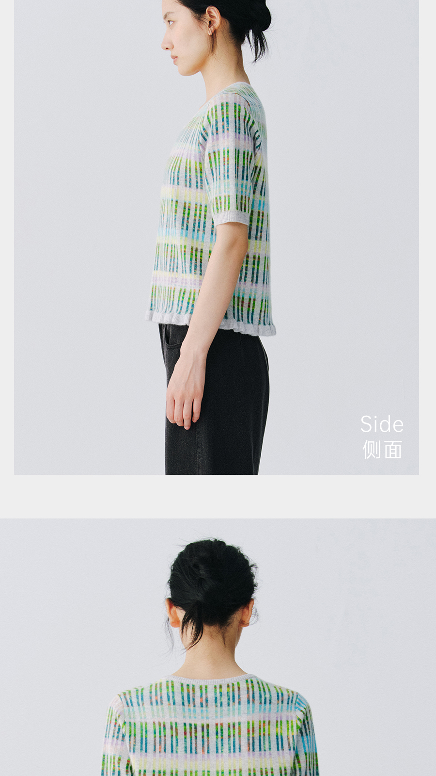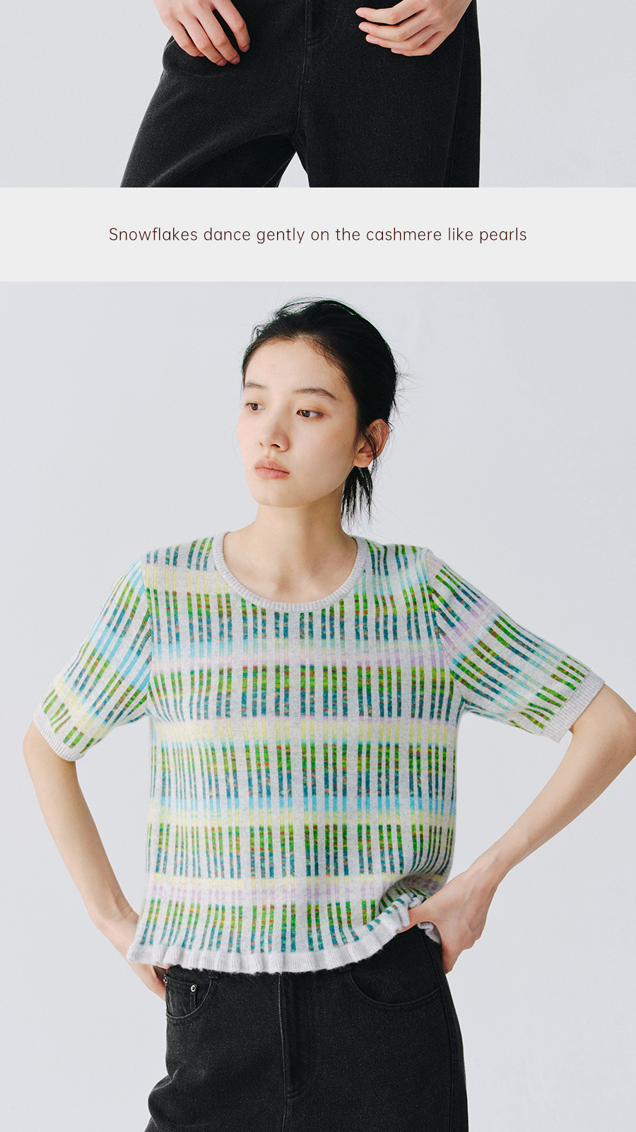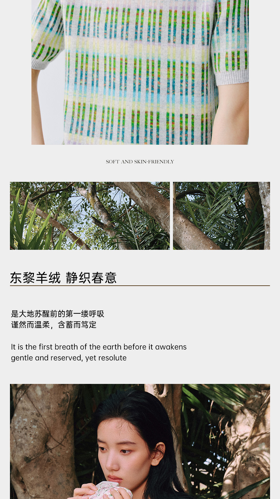 东黎 • 万物复苏 白桦林 山羊绒女士春夏圆领时尚半袖 6226