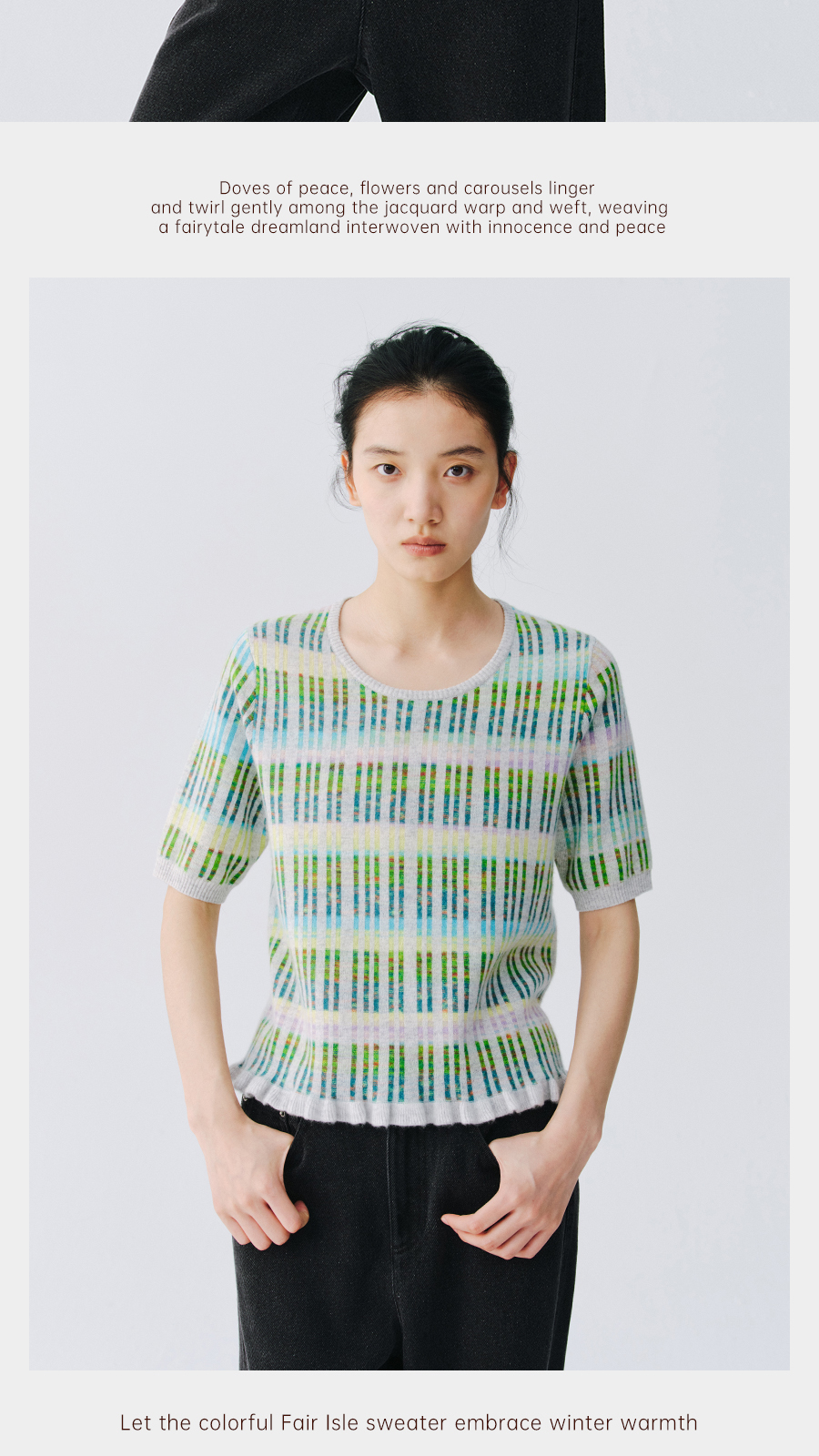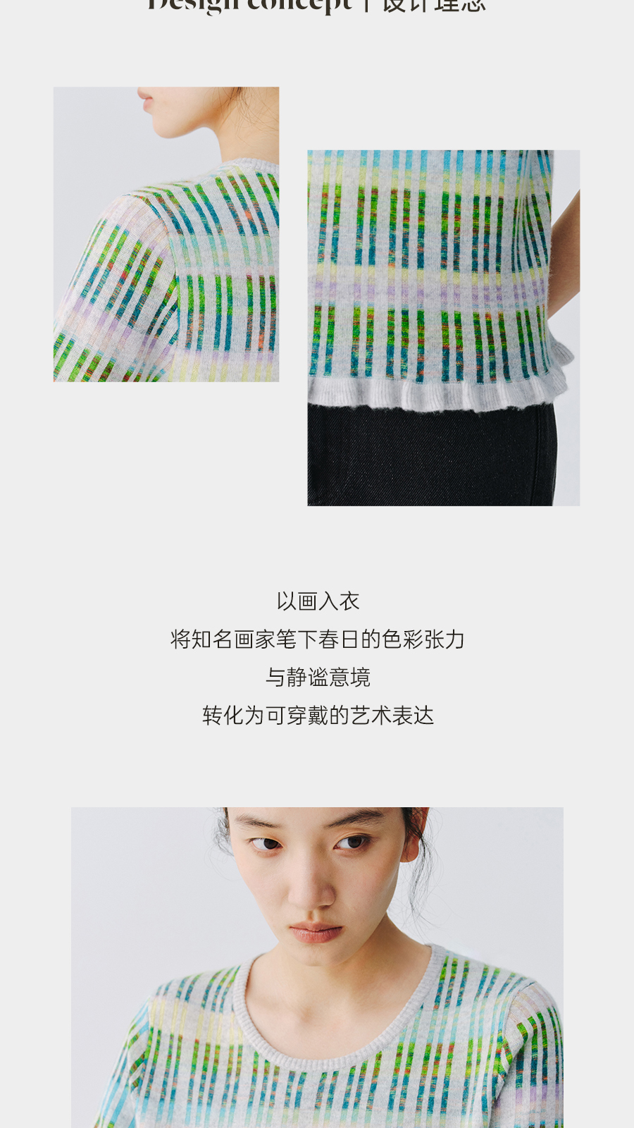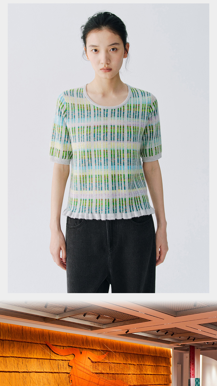 东黎 • 万物复苏 白桦林 山羊绒女士春夏圆领时尚半袖 6226