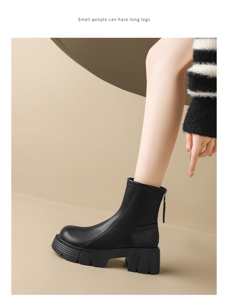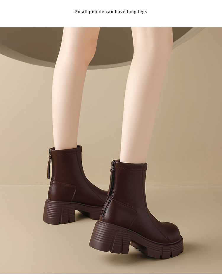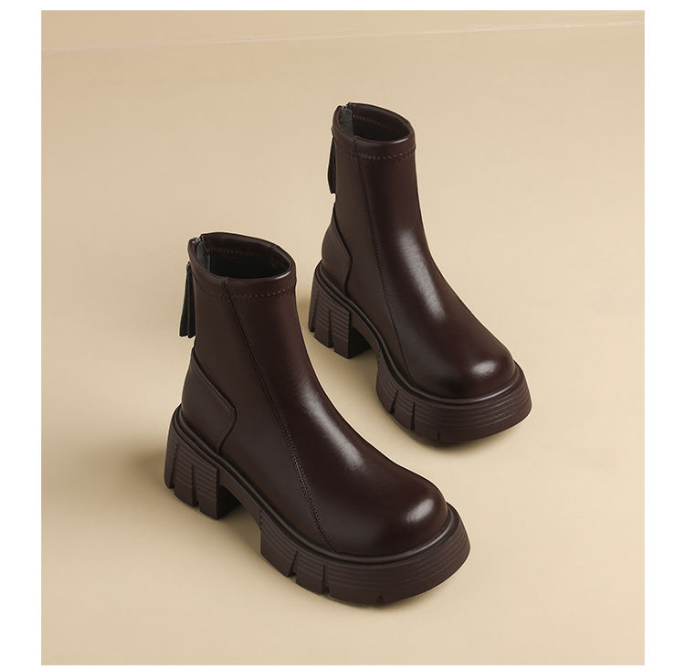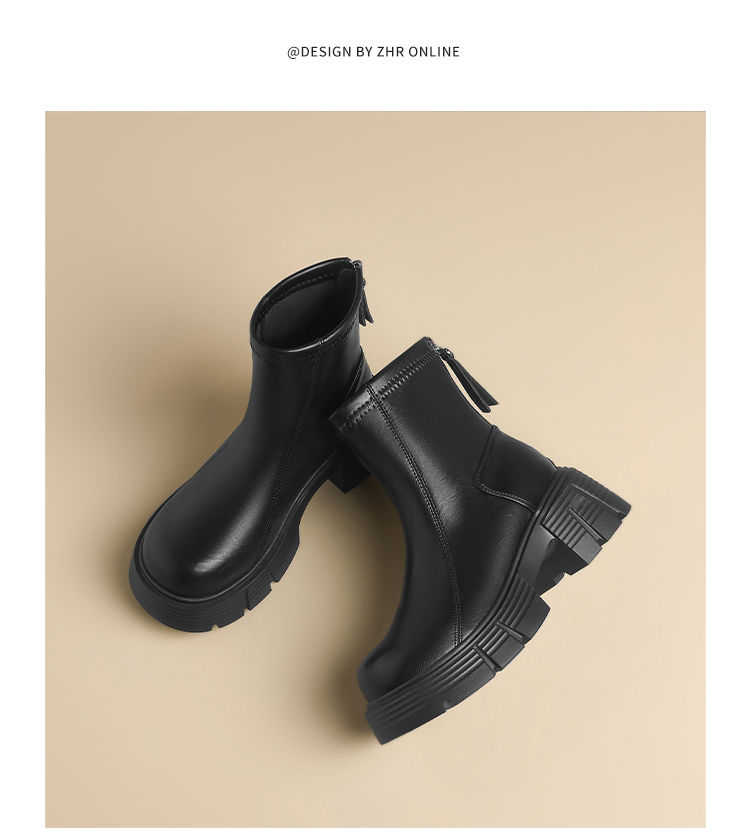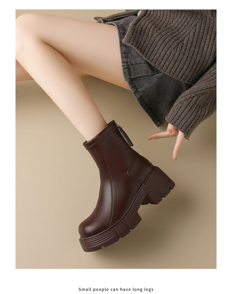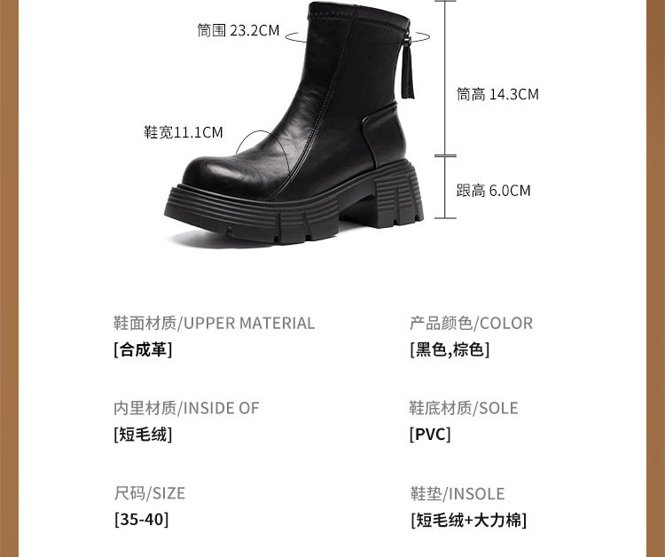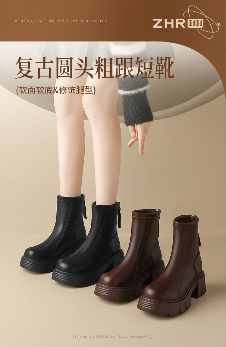 ZHR则则复古圆头粗跟短靴女2024秋冬新款英伦风加绒保暖棉靴增高