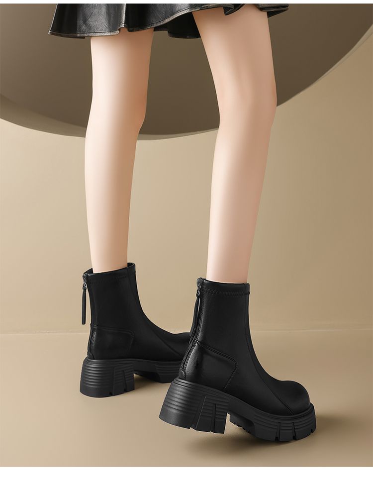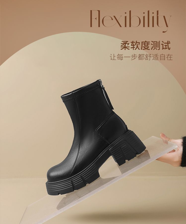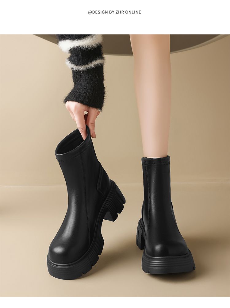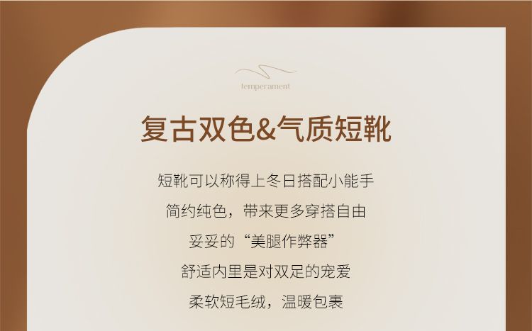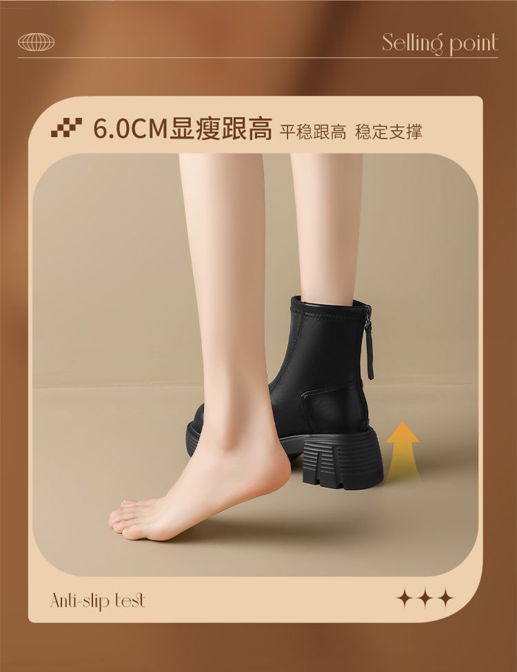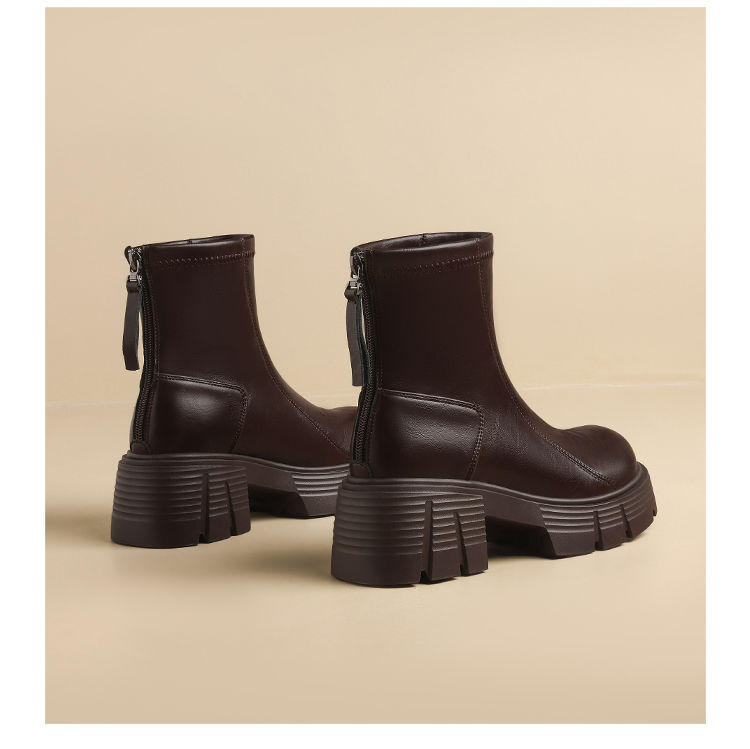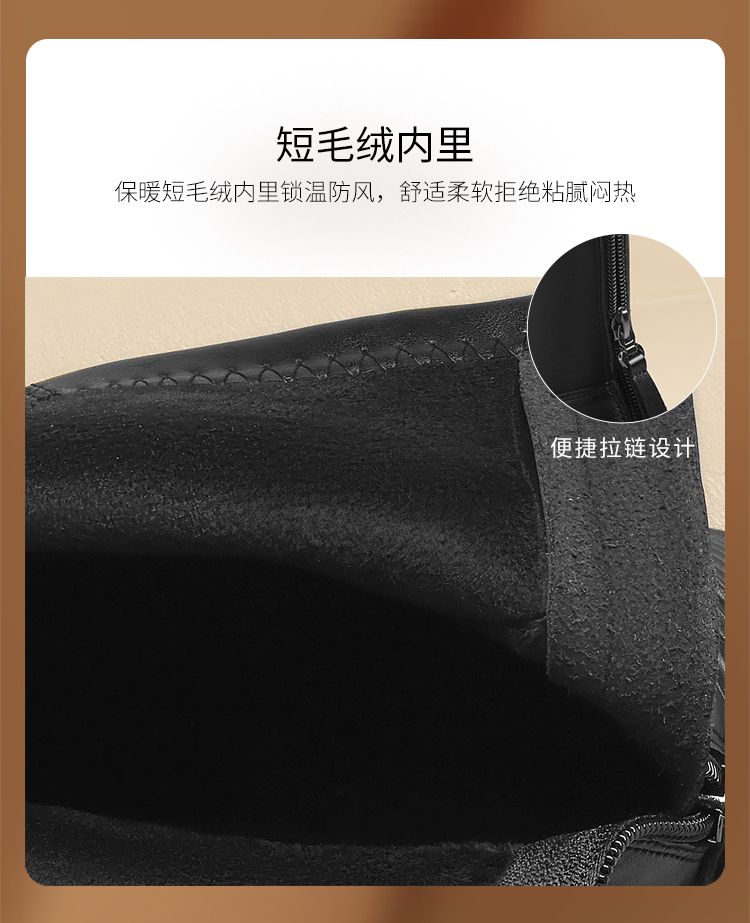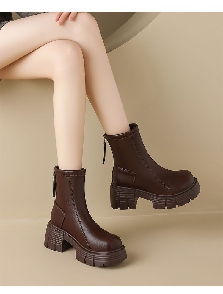 ZHR则则复古圆头粗跟短靴女2024秋冬新款英伦风加绒保暖棉靴增高