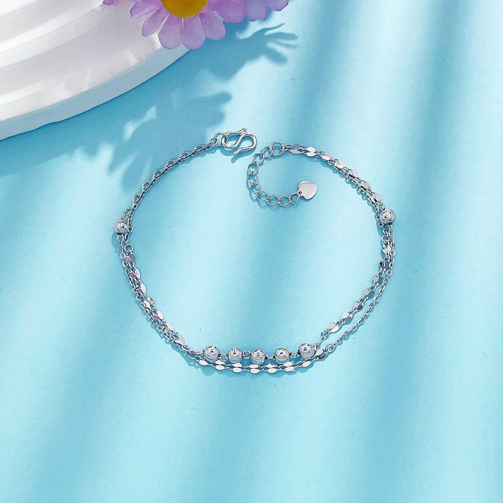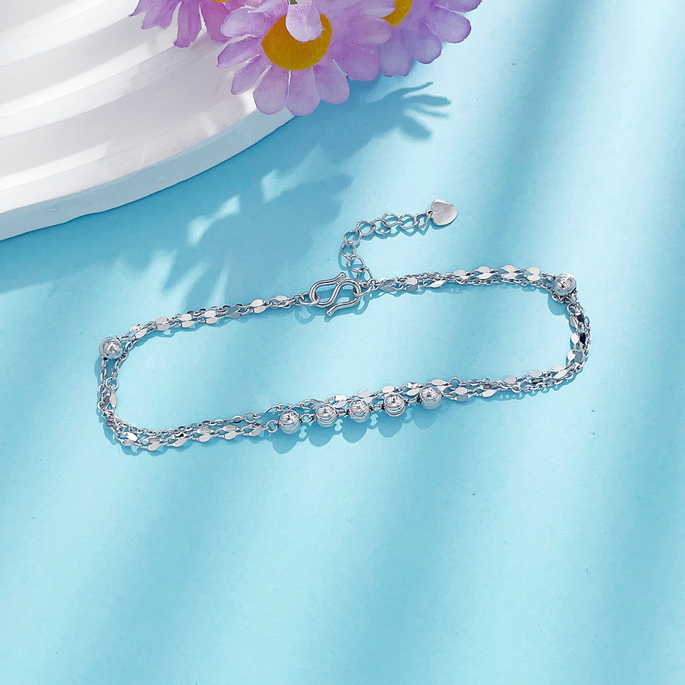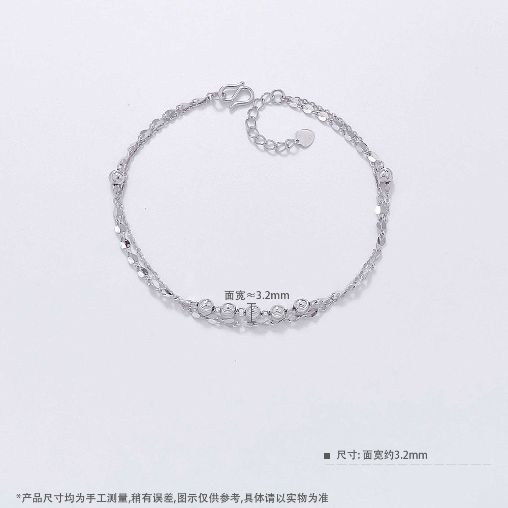 【限时8.8折】【线上铂金馆】PT950 铂金空心AB调节猫眼金珠嘴唇链双层手链(PTSL00017)预售产品下单后不退款不退货不换货不补差价)