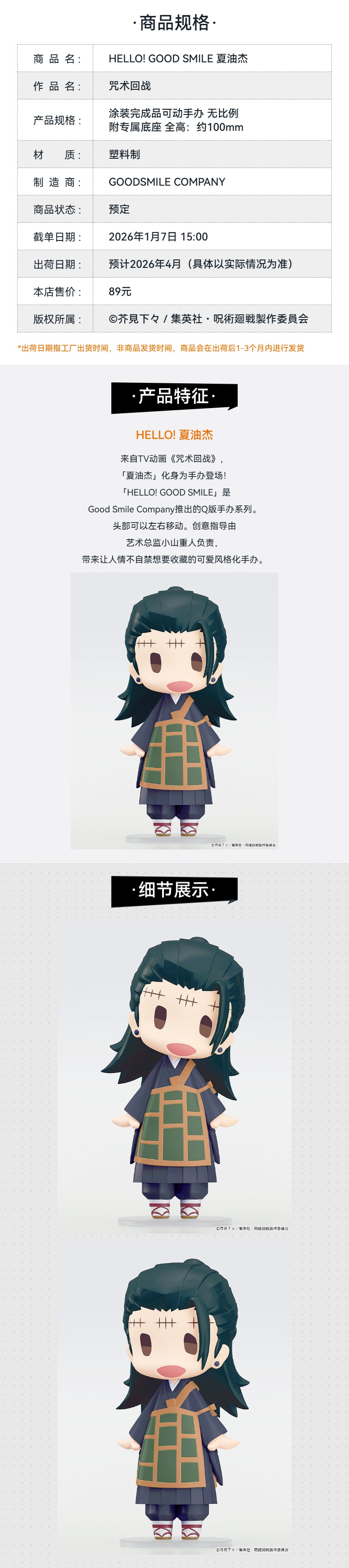 【GSC补款】HELLO! GOOD SMILE 夏油杰 咒术回战 手办模玩