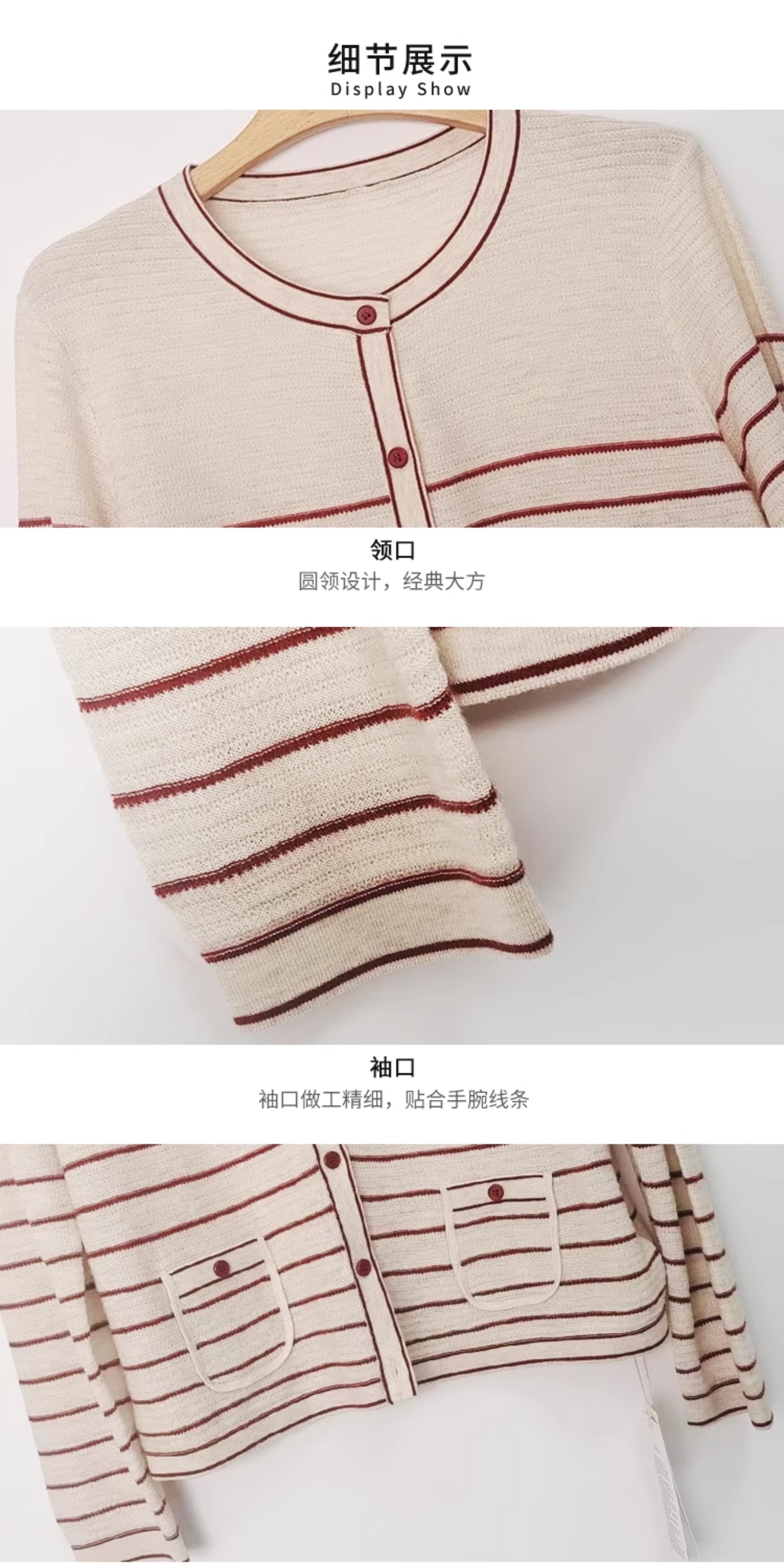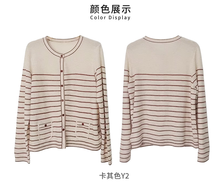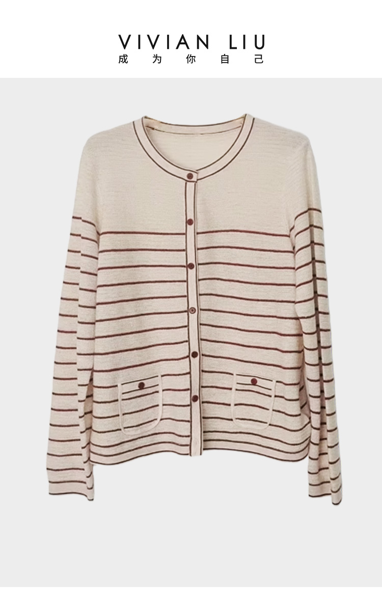 VIVIAN LIU薇薇安刘C2546307秋季女装新款条纹撞色毛织开衫