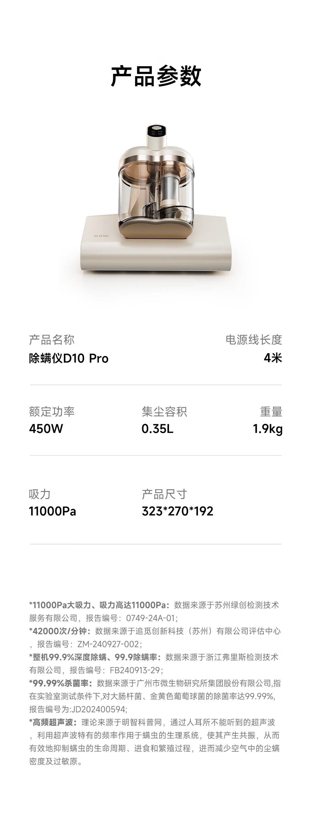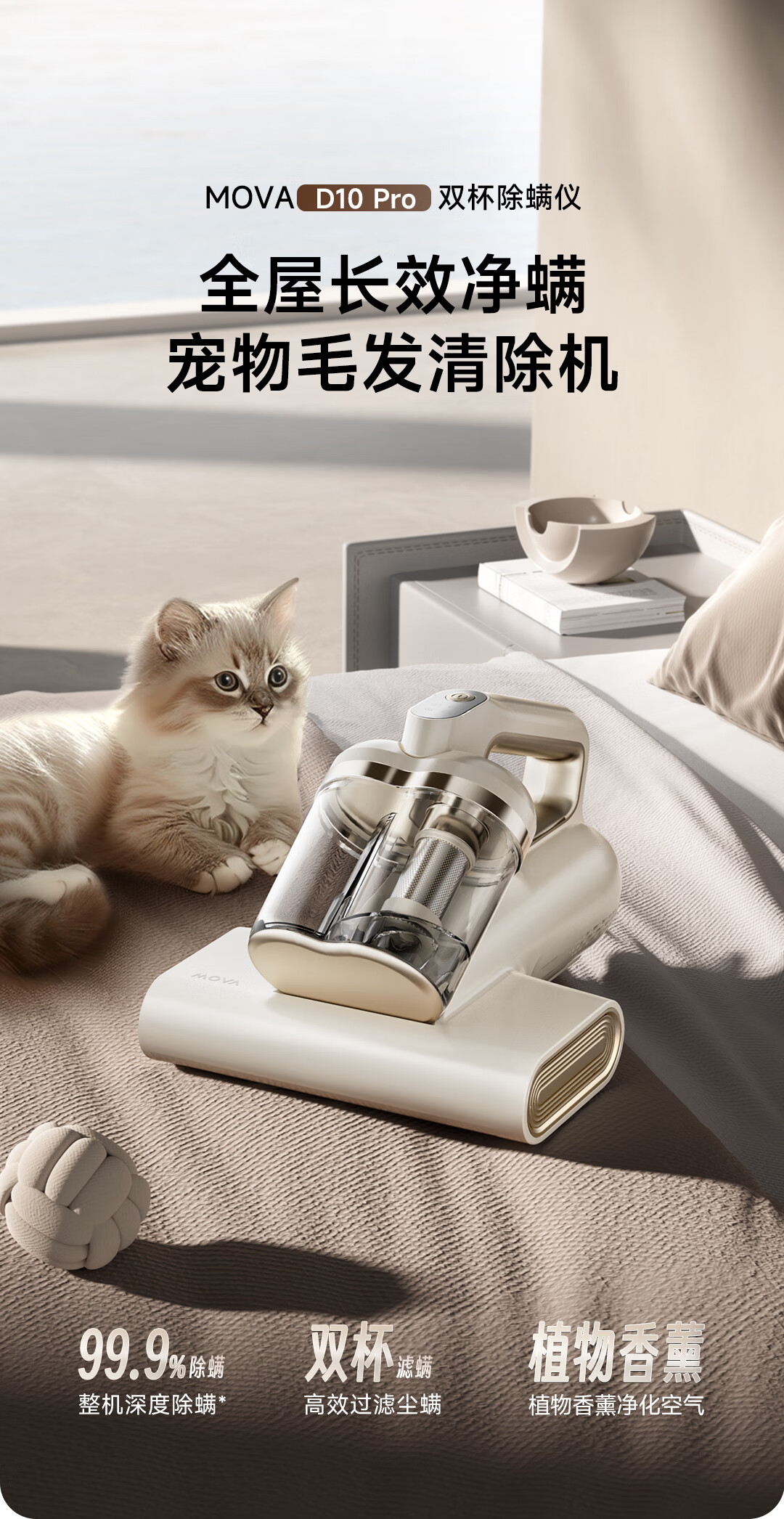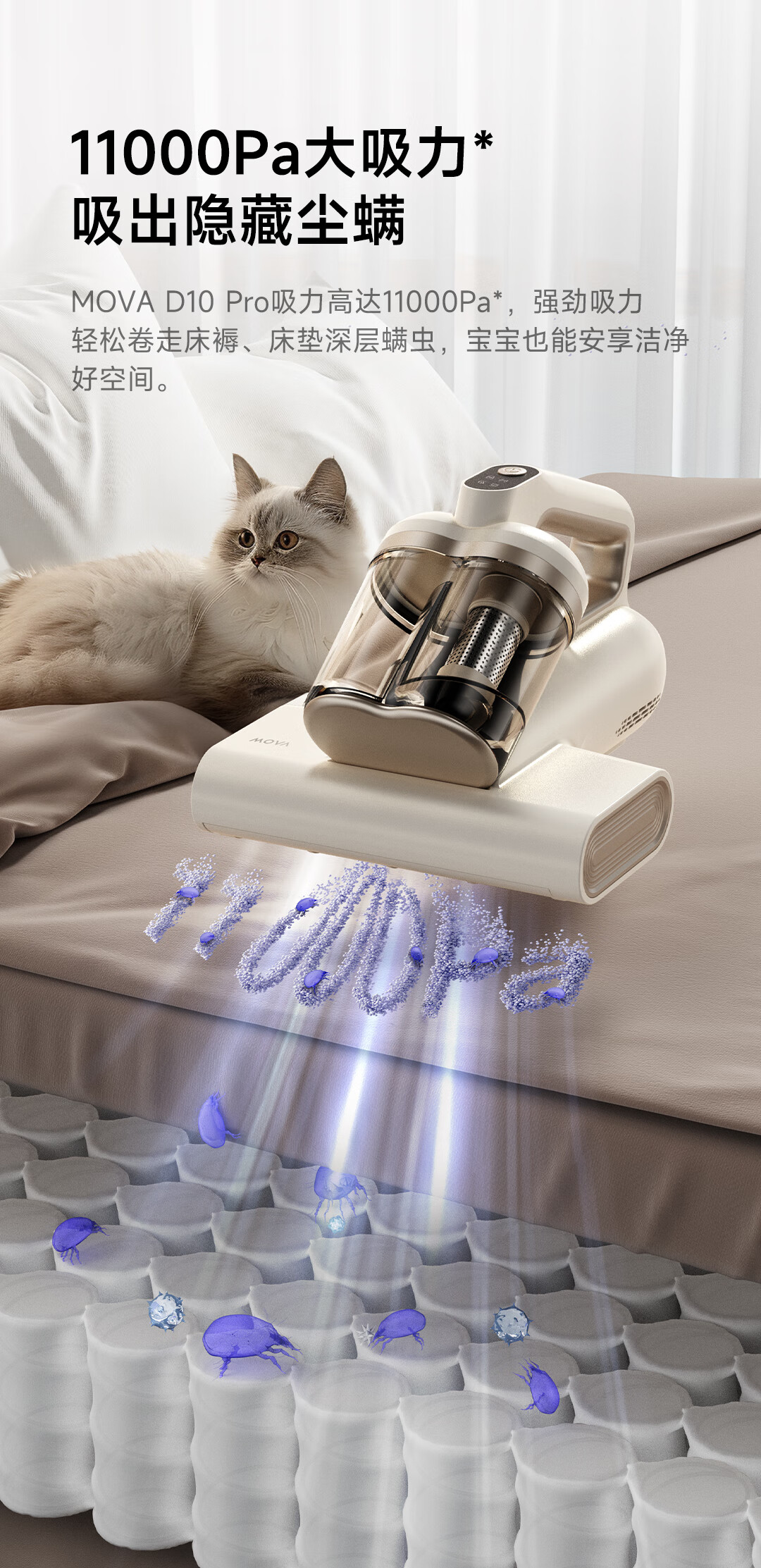 Mova除螨仪D10_Pro家用吸尘除螨_小型手持床上吸尘器_超声波紫外线杀菌_强力拍打【新】