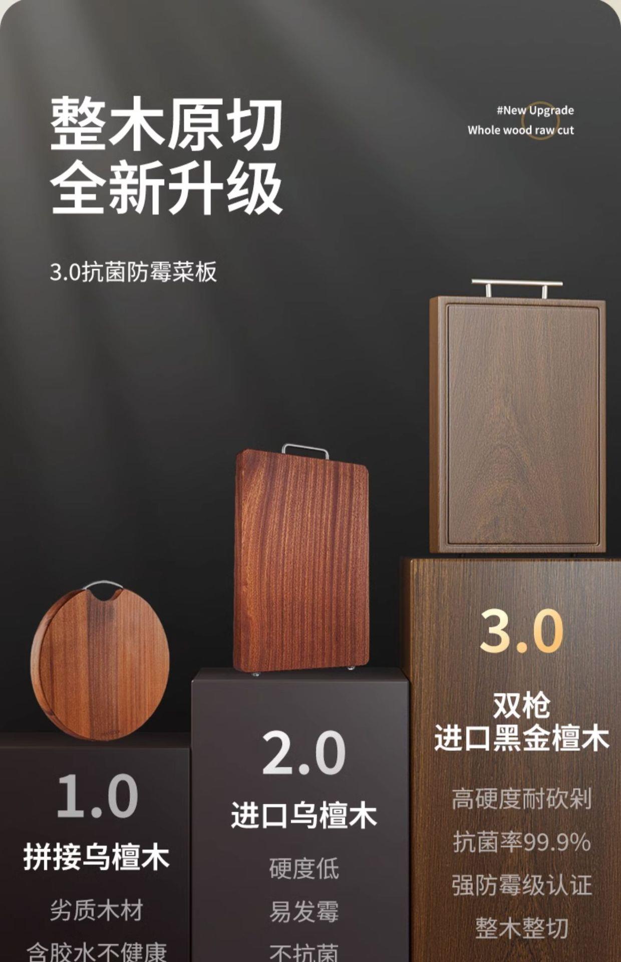 双枪黑金檀整木菜板砧板实木乌檀木家用木质切菜刀板占板案板批发