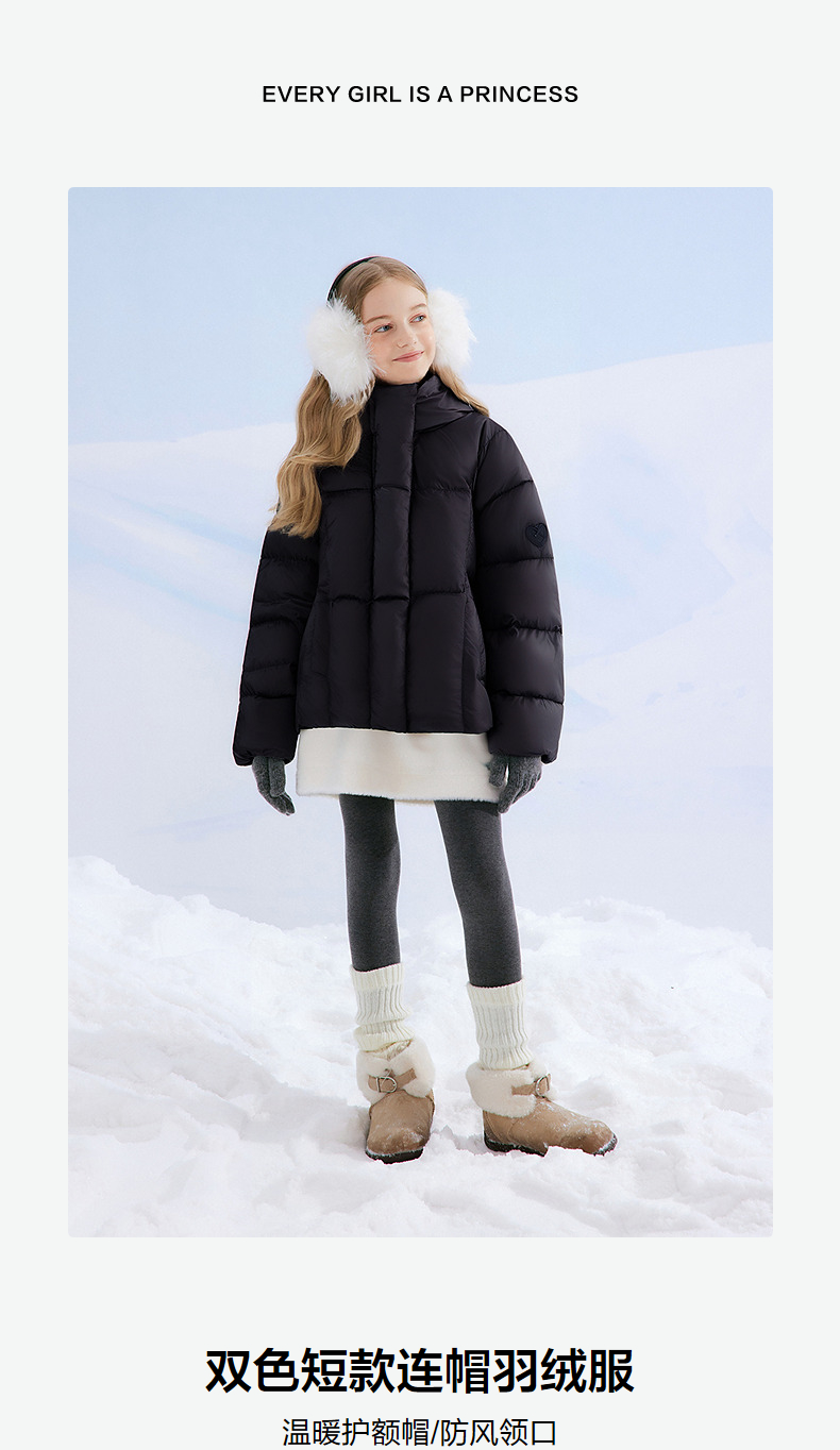 笛莎Deesha 童装女童羽绒服2025冬新款女童短款连帽羽绒服