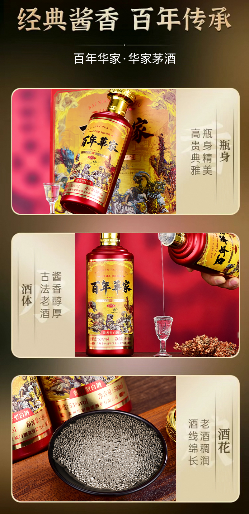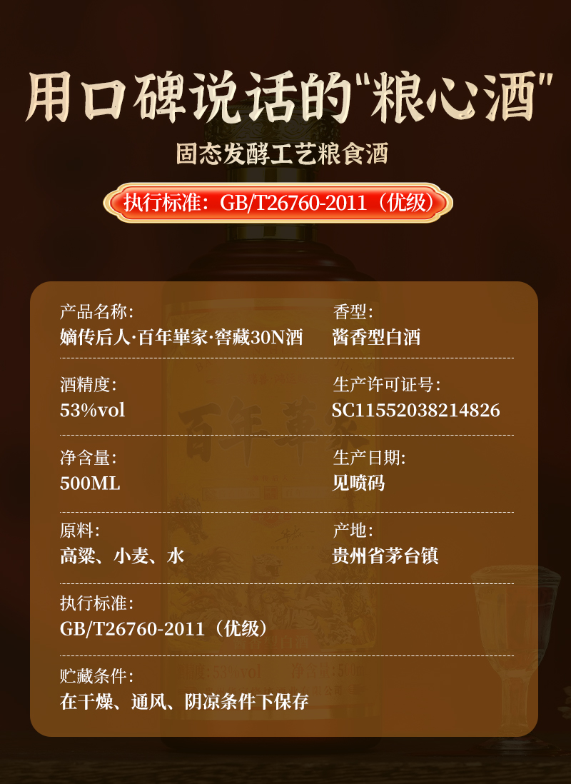 百年華家·窖藏30N酒 酱香型白酒53度 500ml3瓶装 传承正统茅香,瓶身五灵瑞兽祥瑞元素,一盒三瓶+收藏证书记录百年家族史+礼品袋;送礼显贵气,收藏有格调!