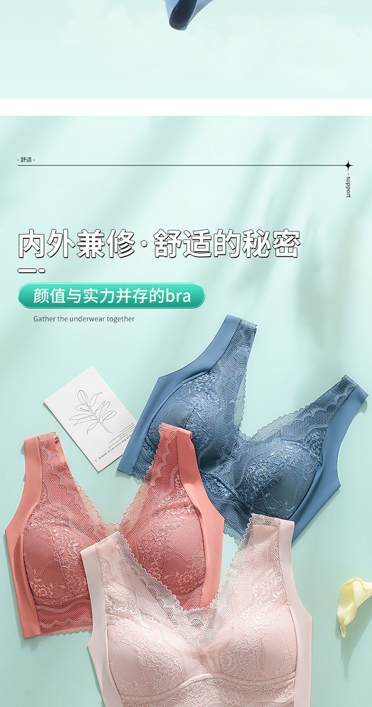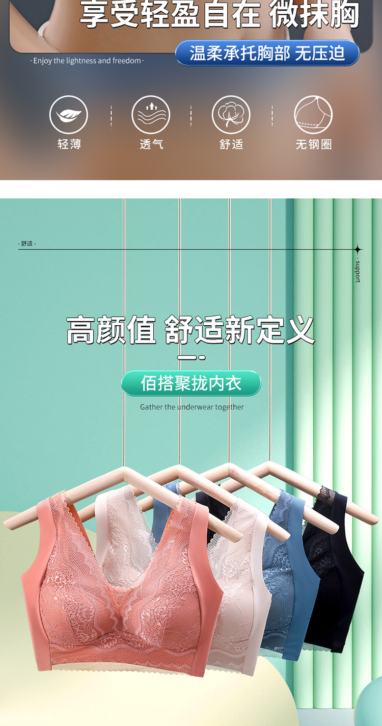 【买一送一】春夏新品聚拢美背裹胸蕾丝内衣固定胸垫无钢圈背心式文胸AL