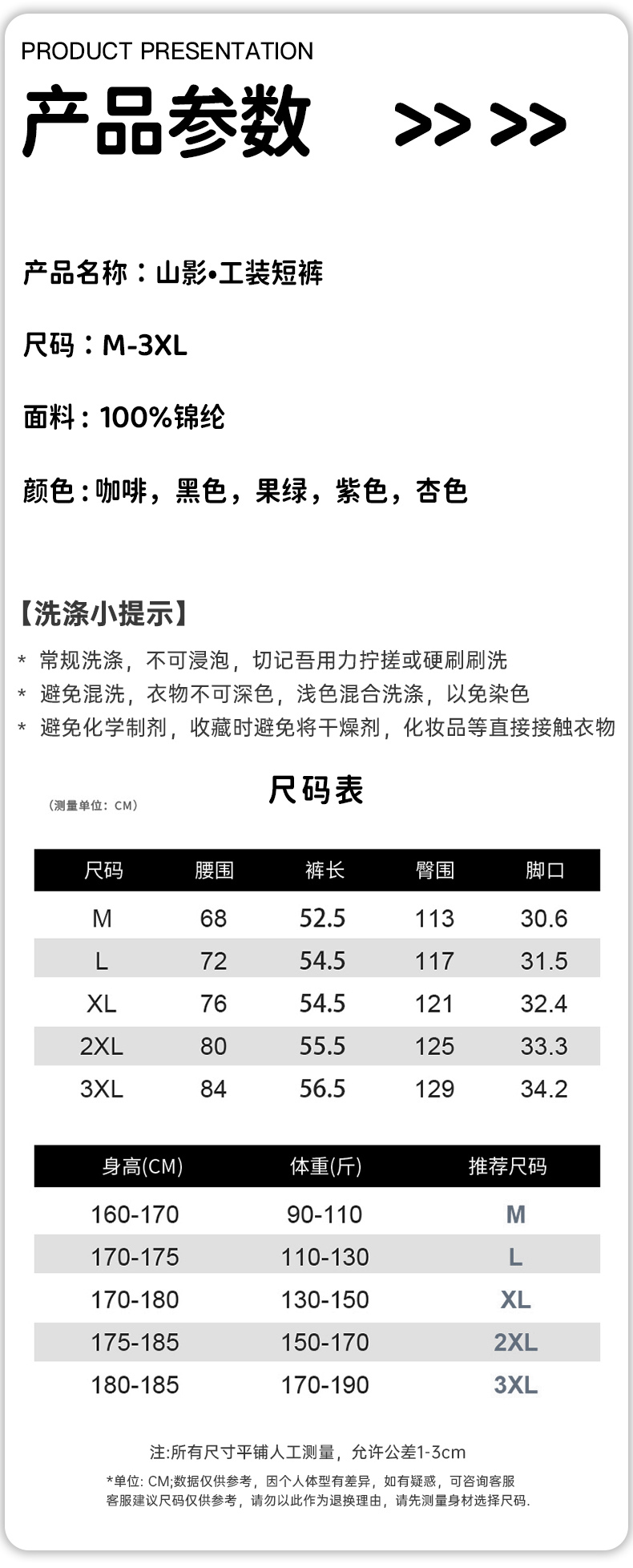 【挺括不皱】NICE SELF山影·工装短裤 春夏系列情侣同款 防水 →透气轻软 耐穿耐磨户外竞松运动裤