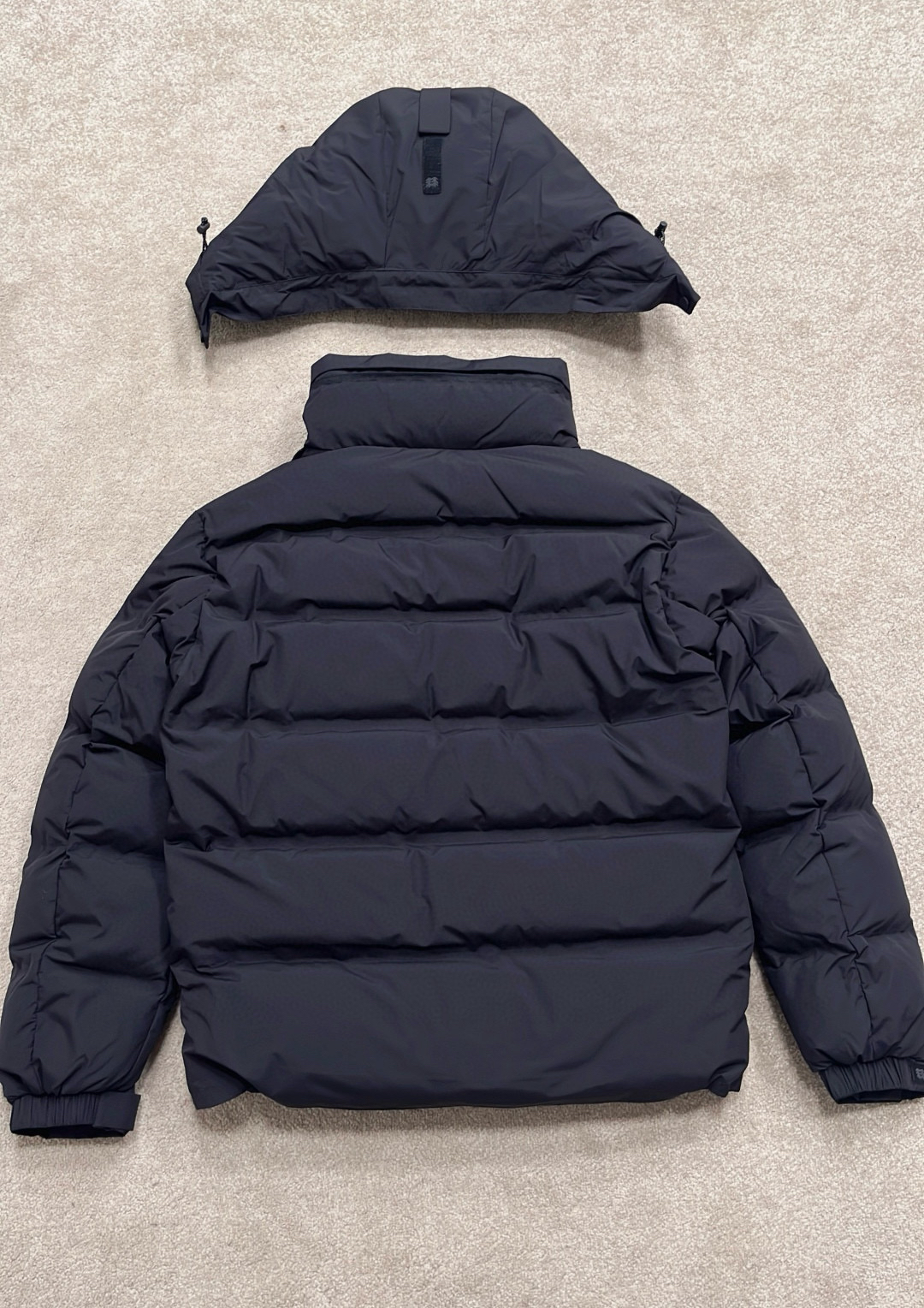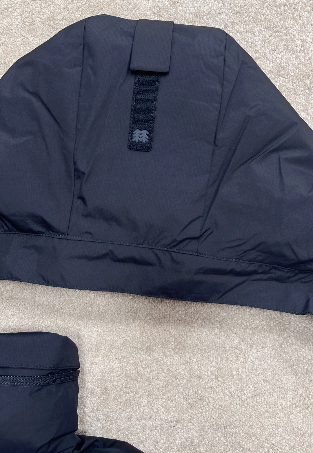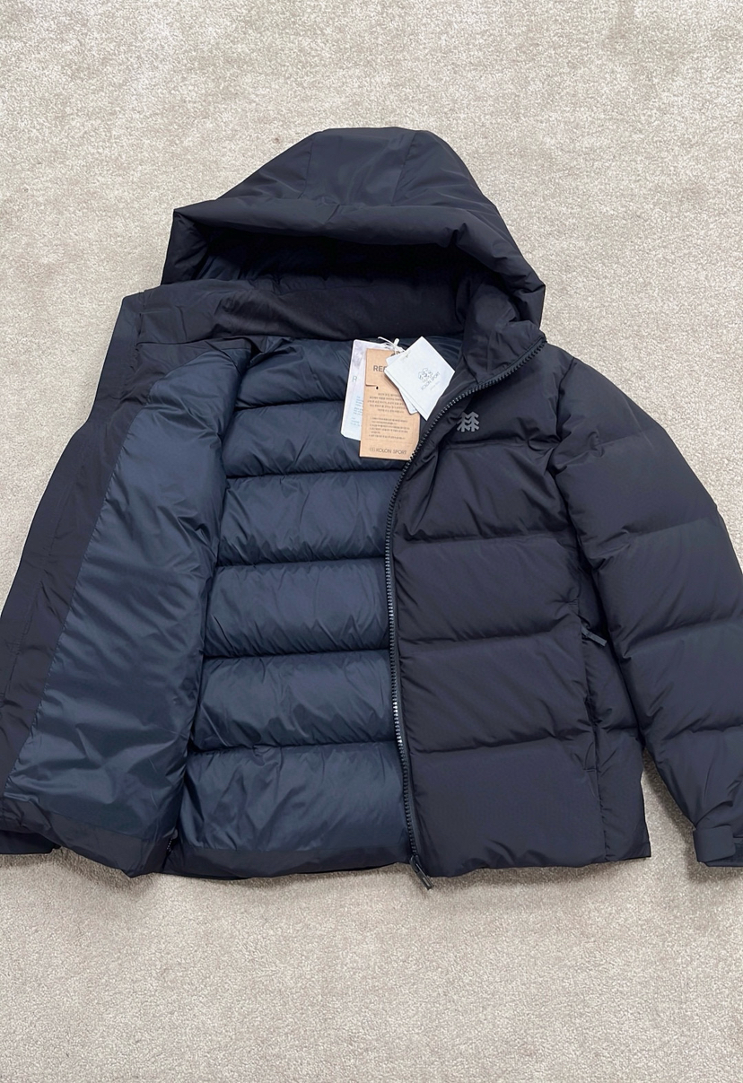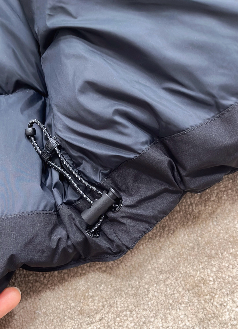 相比较前面两款加厚羽绒服这件略薄一点。但是这样也是厚款,中等厚度,偏厚实一点。所有的绗缝线位置都是压胶处理,最大程度防风防跑绒。
