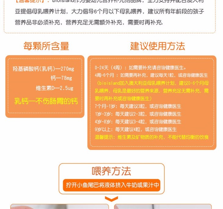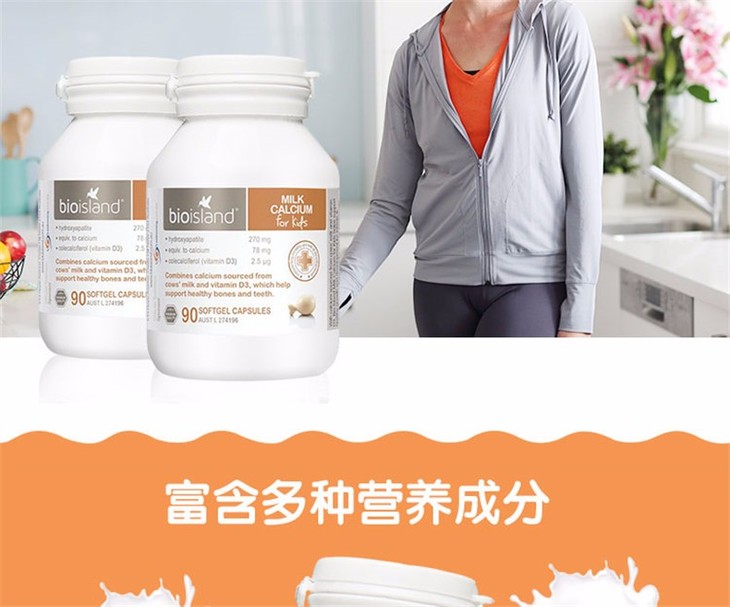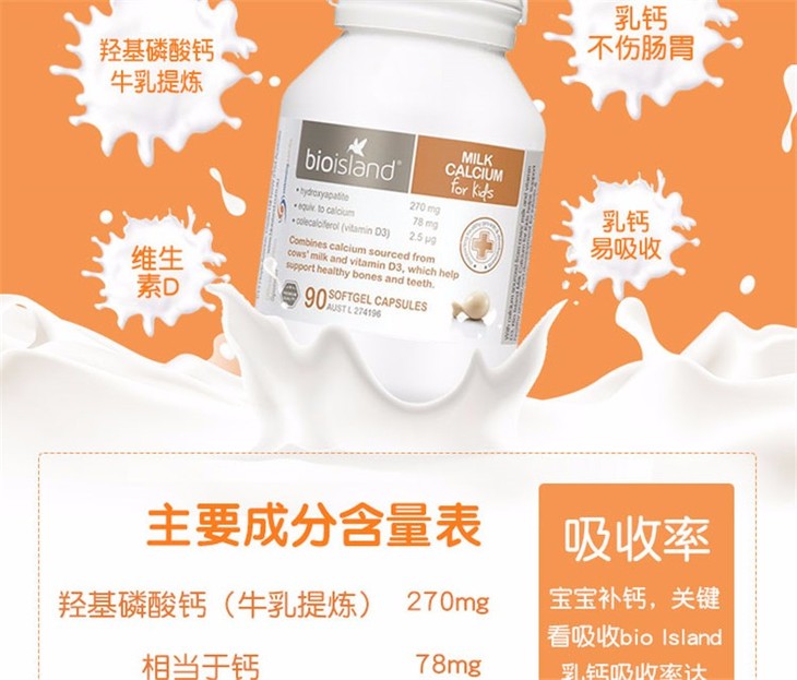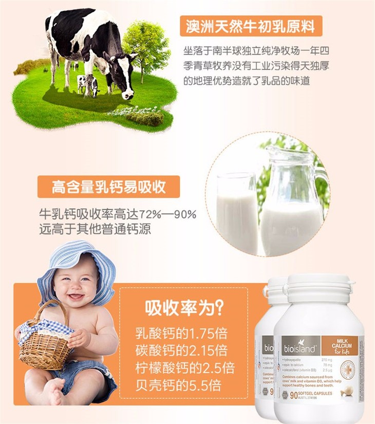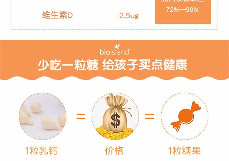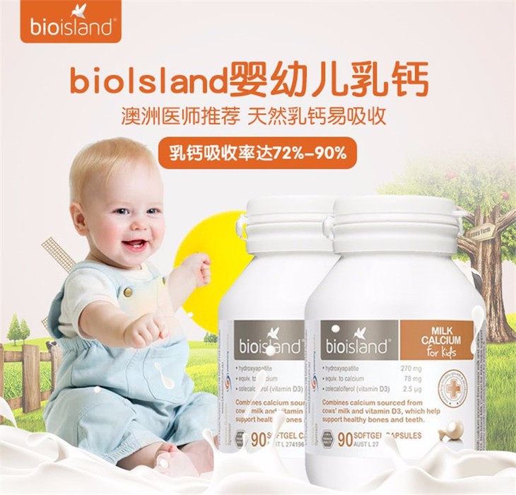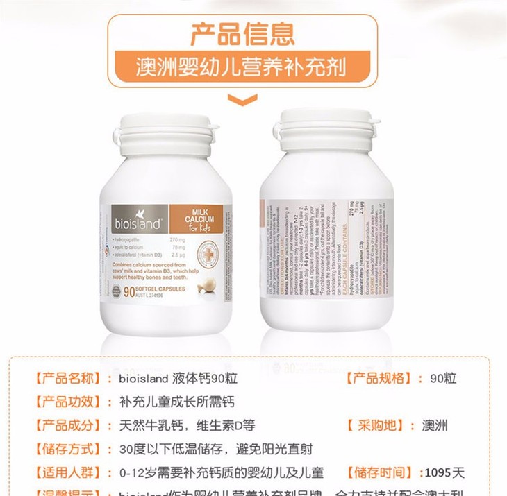 【保税仓】澳大利亚Bio Island 婴幼儿液体乳钙软胶囊 90粒