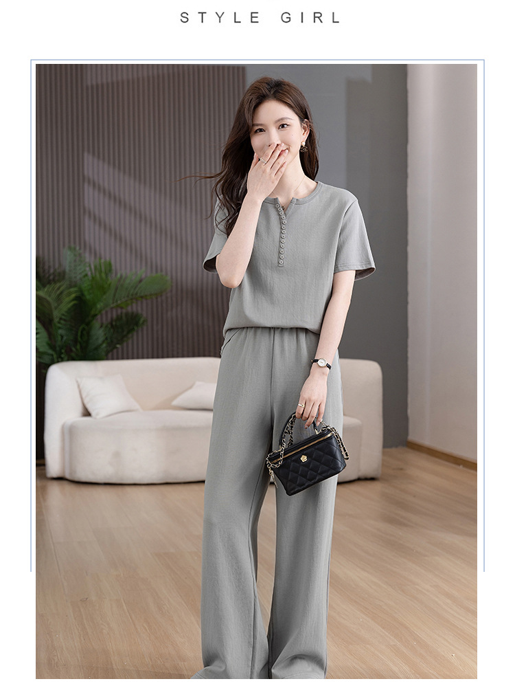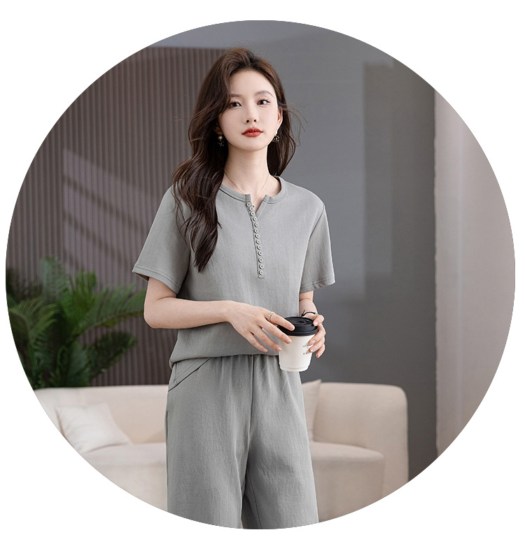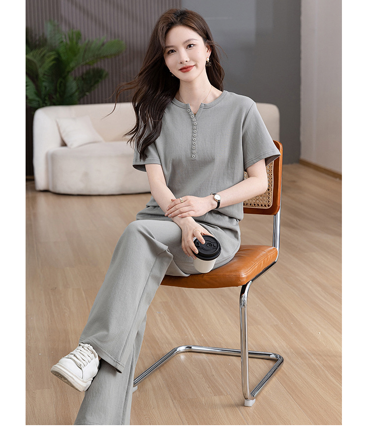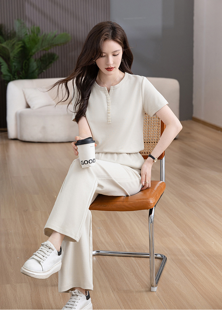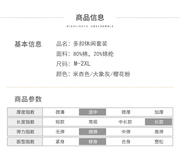 时尚纯色,多扣休闲套装HR-KSM8507