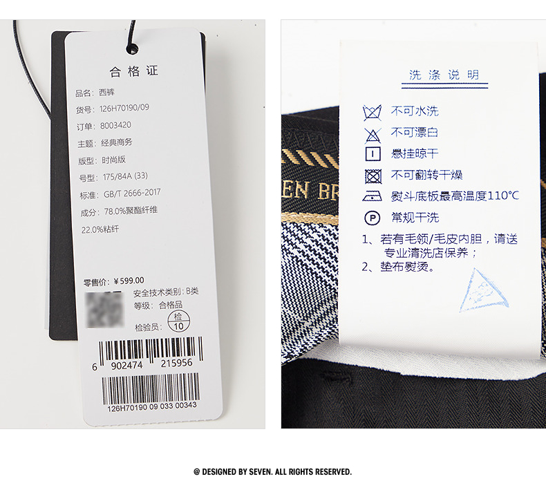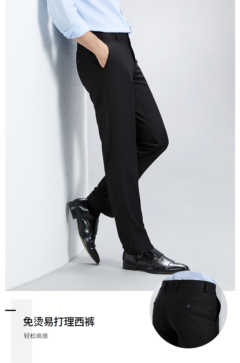 【犀牛褶免烫】柒牌西裤男士2024春季新款直筒中腰商务休闲西装裤 126H70190