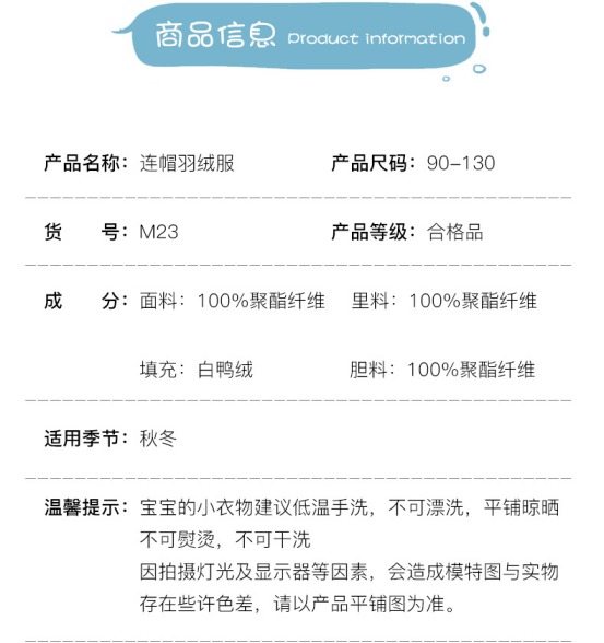 不说别的,整个面料的质感,光泽度,我相信大家也可以看出来,非常非常棒拿到手都激动!一个三防的面料,防泼水的真心的,浅色系也不怕脏哈! 细节细节细节‼整衣采用德国机针走线3厘米走17针!!!一定认真看!我相信你们收到的时候会和我是一样的心情…特别特别激动不管面料做工还是版型!一看就是专柜🗄级别的,再喊一句,宝宝寒冬必备款,绝对无补‼
