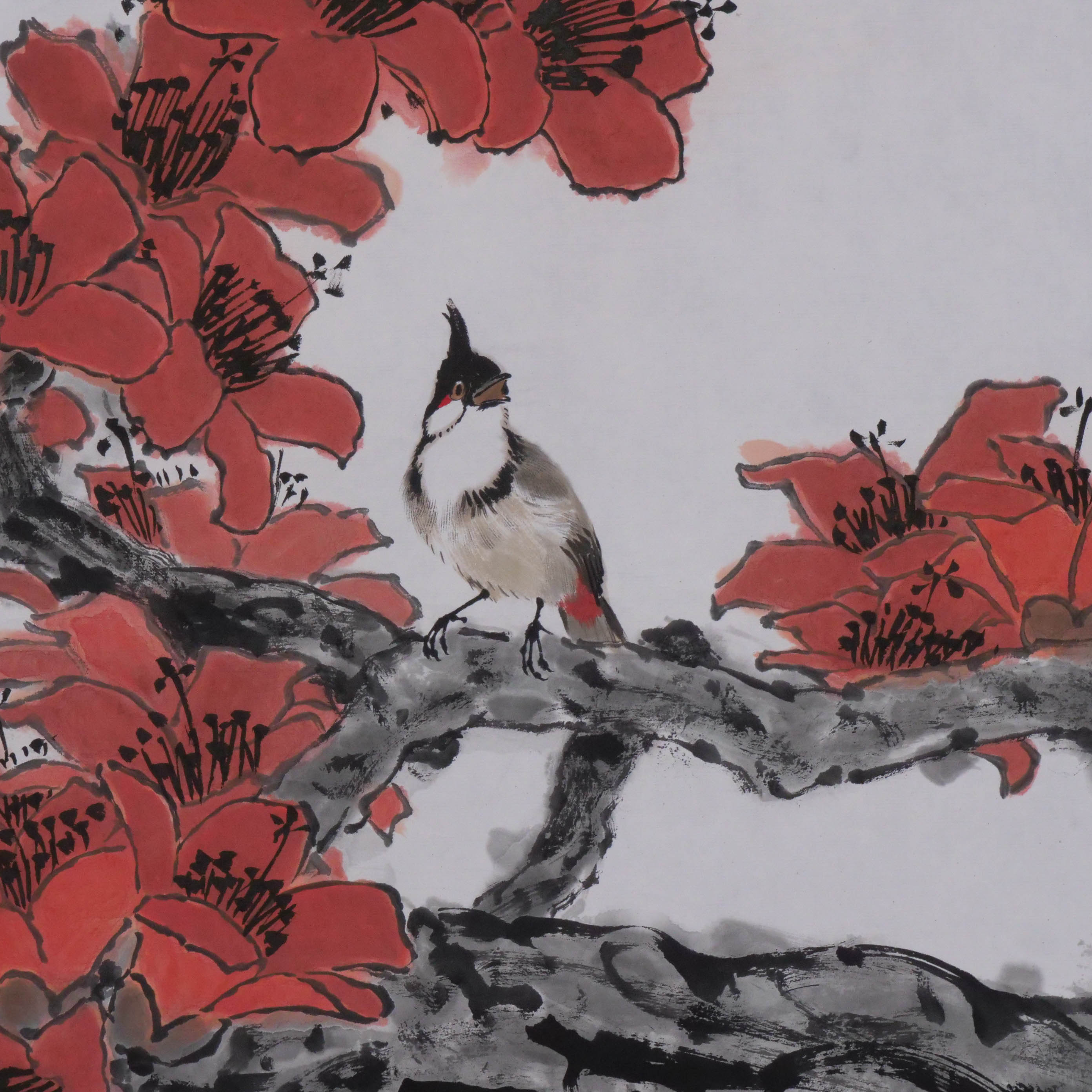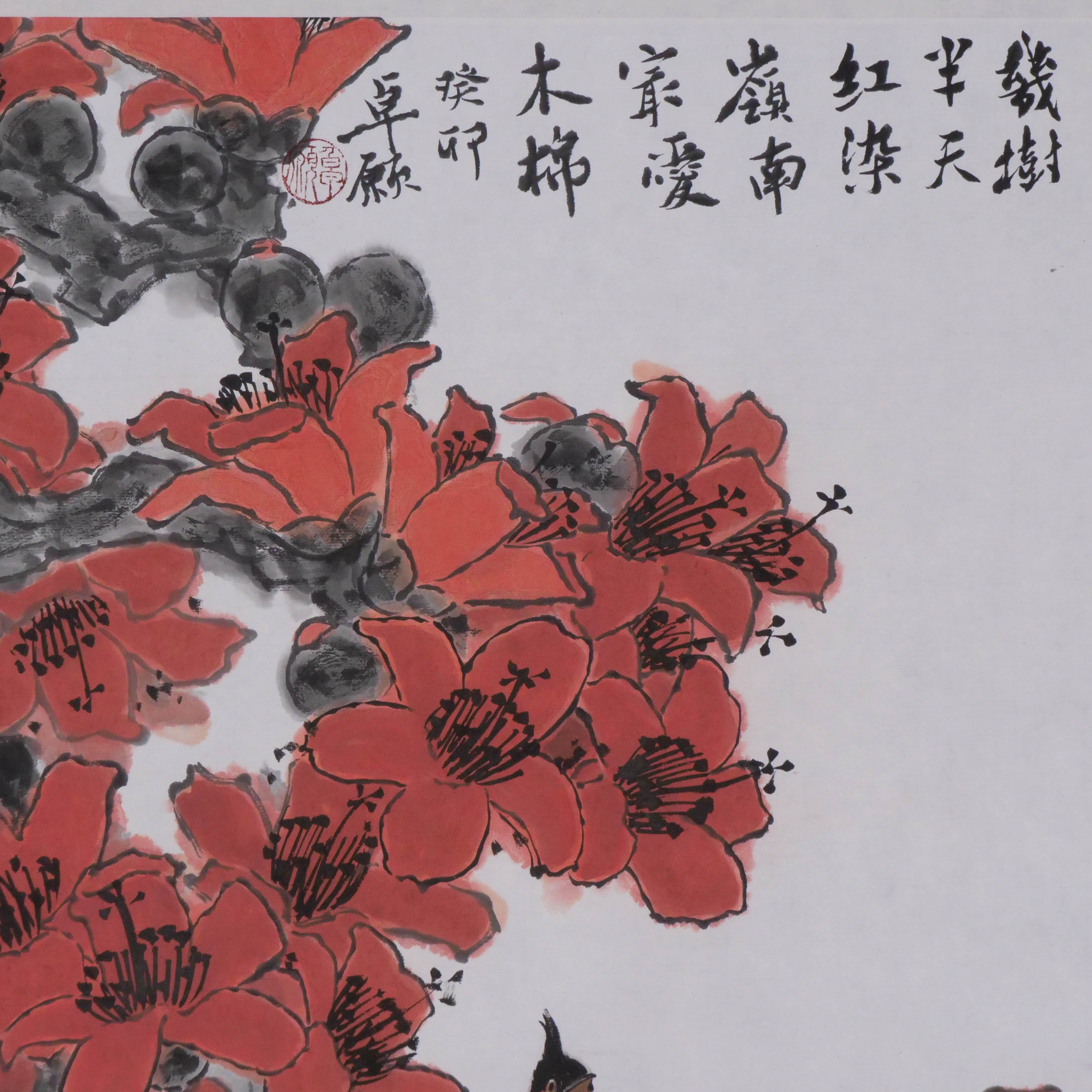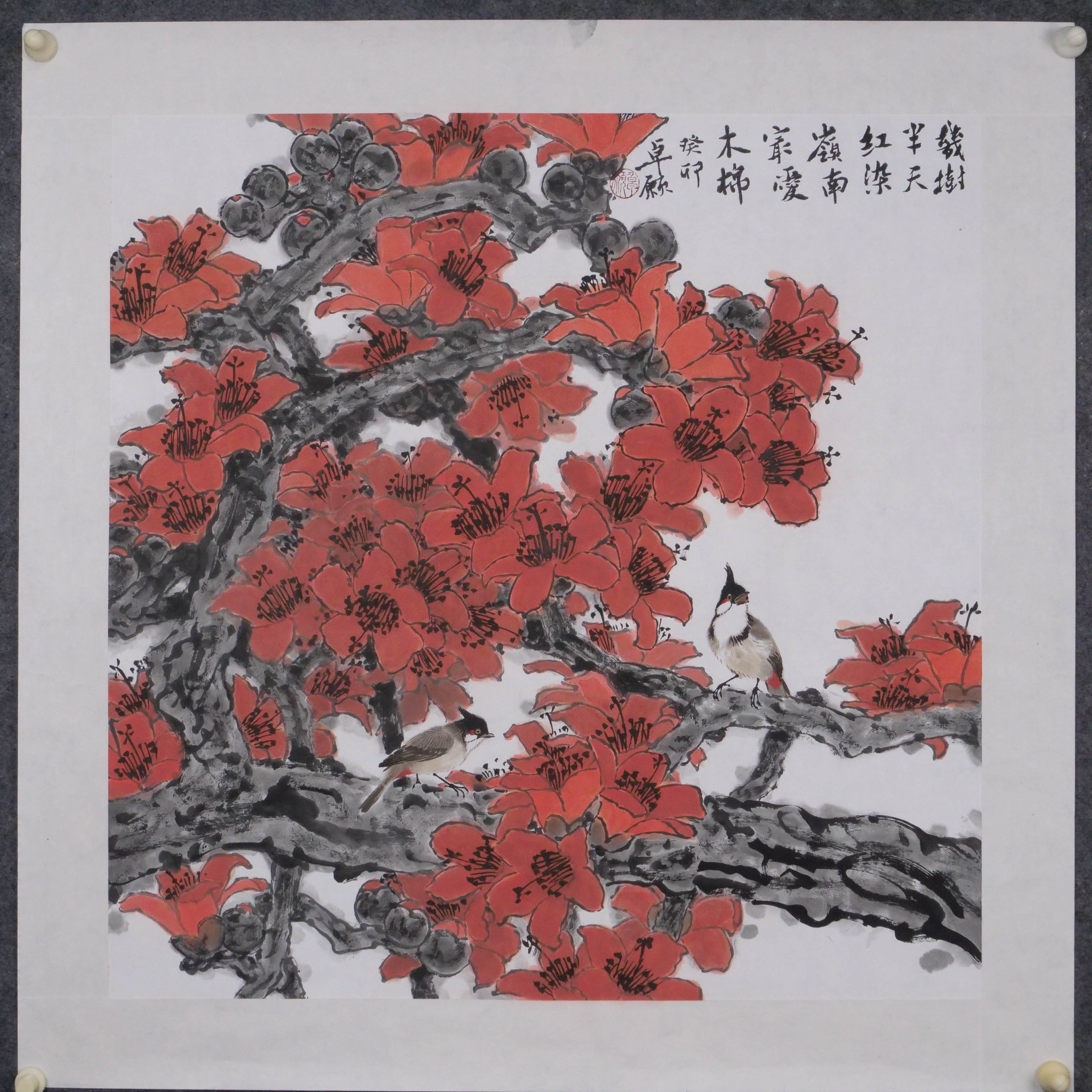 卓愿《几树半天红染,岭南最爱木棉》70x69CM 手绘纸本宣纸国画作品