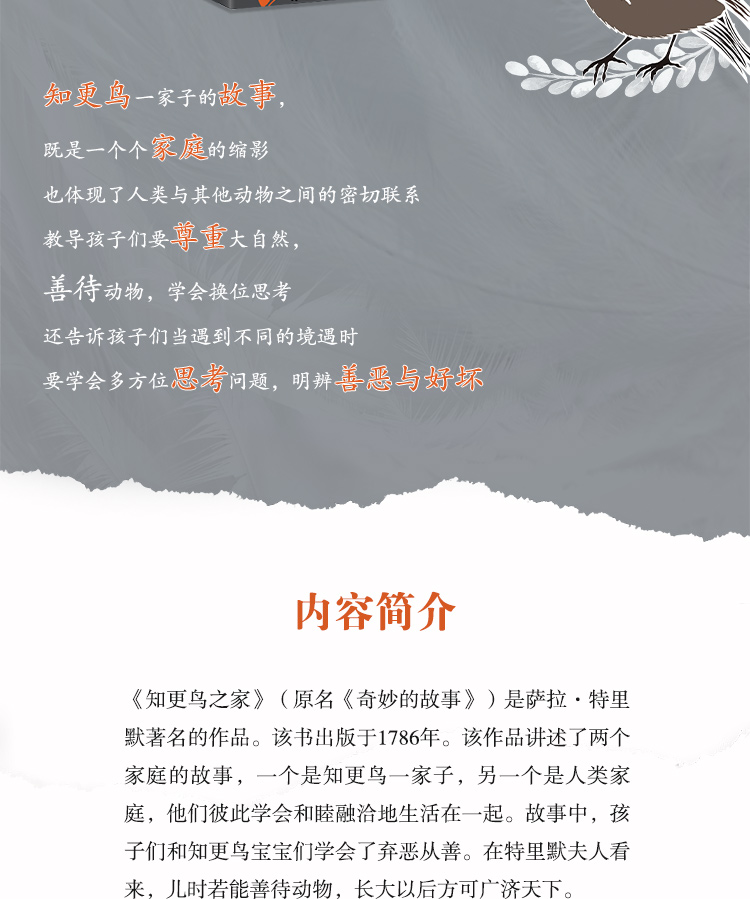 知更鸟之家(教导孩子们要尊重大自然、善待动物,学会换位思考;还告诉孩子们当遇到不同的境遇时要学会全面思考问题,明辨善恶与好坏)