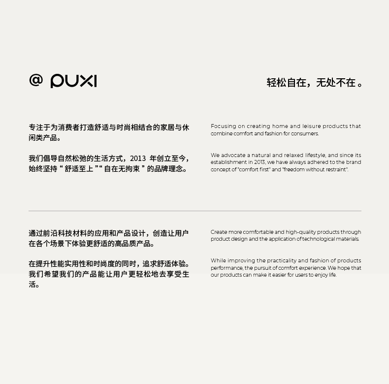- 浙江朴西集团成立于2013年,是一家集研发设计生产销售服务为一体的复合型集团。朴西多年来坚持自主延发设计,并不断融合科技创新,致力于让更多人穿上舒适拖鞋,享受家庭幸福感。