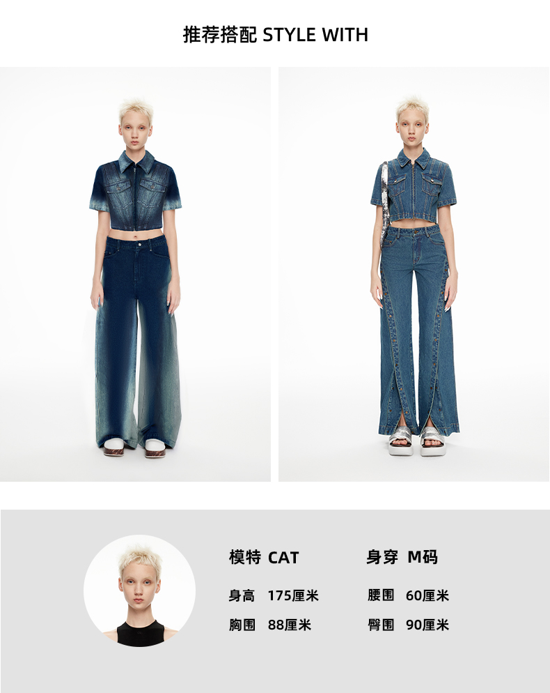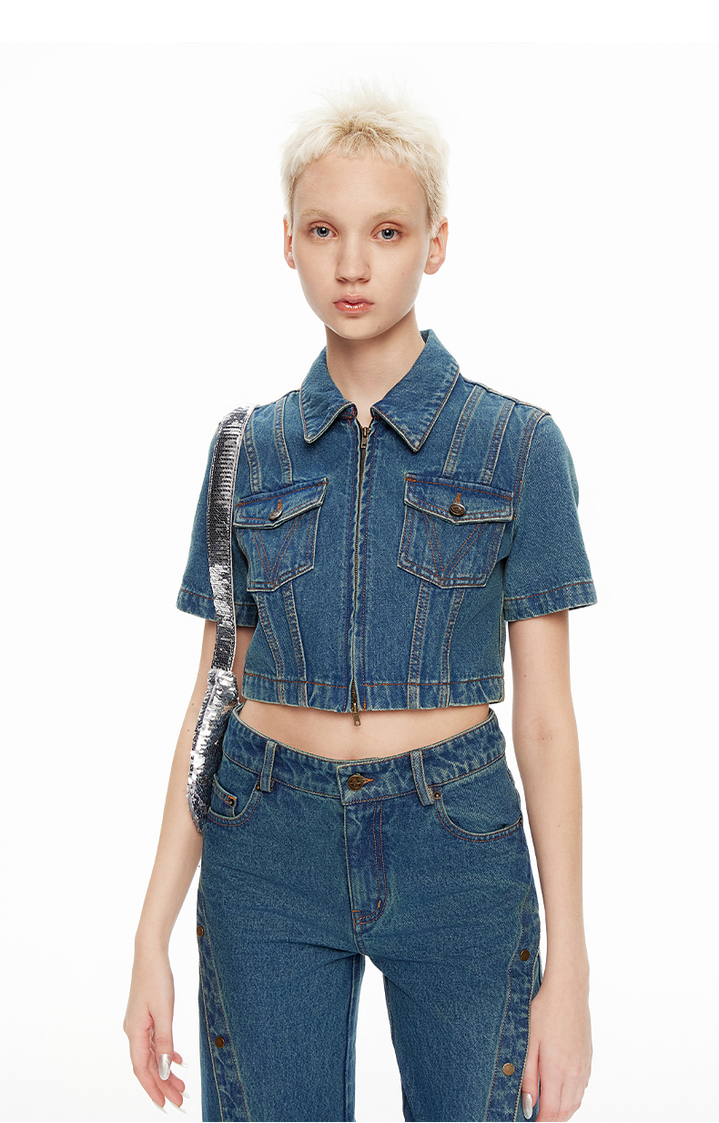 lost in echo2024春季新款设计师品牌修身短款拉链酸洗牛仔外套