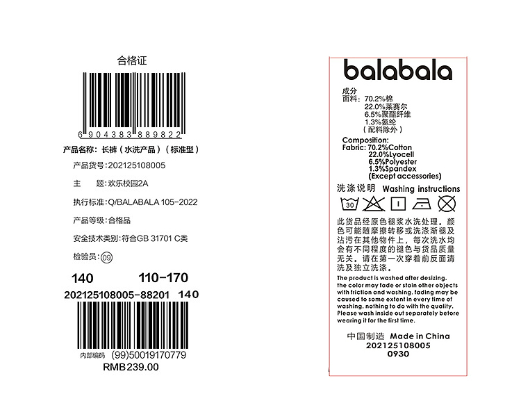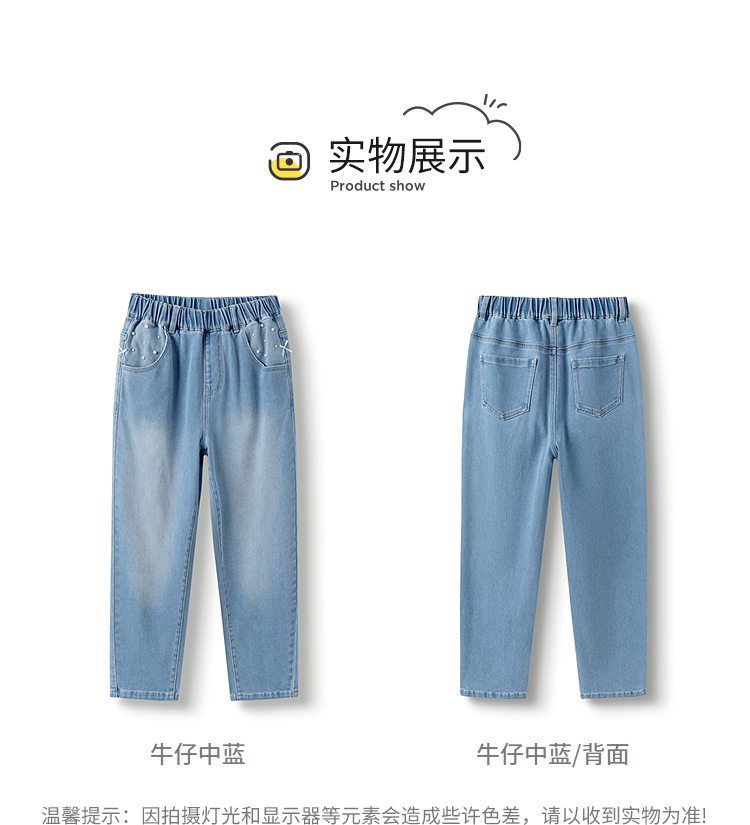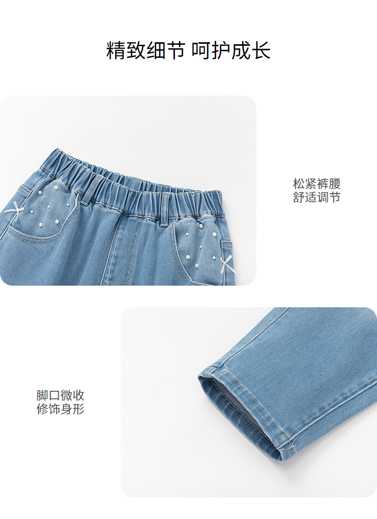 巴拉巴拉女童牛仔裤春装儿童萝卜裤中大童蝴蝶结长裤甜美时尚潮
