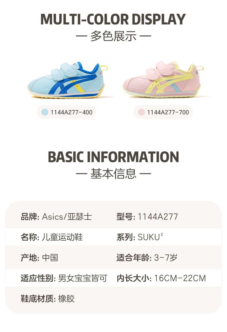 温馨提示:亚瑟士童鞋需对照尺码表鞋子内长拍相应码数