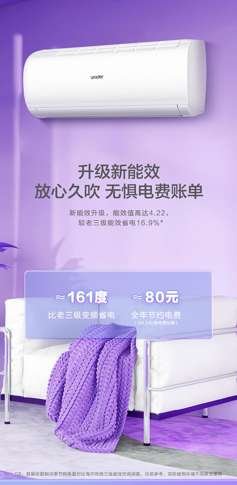 统帅(Leader)海尔智家 1.5匹壁挂式变频空调挂机 冷暖两用 新能效 自清洁 KFR-35GW/83@T-Xc 以旧换新