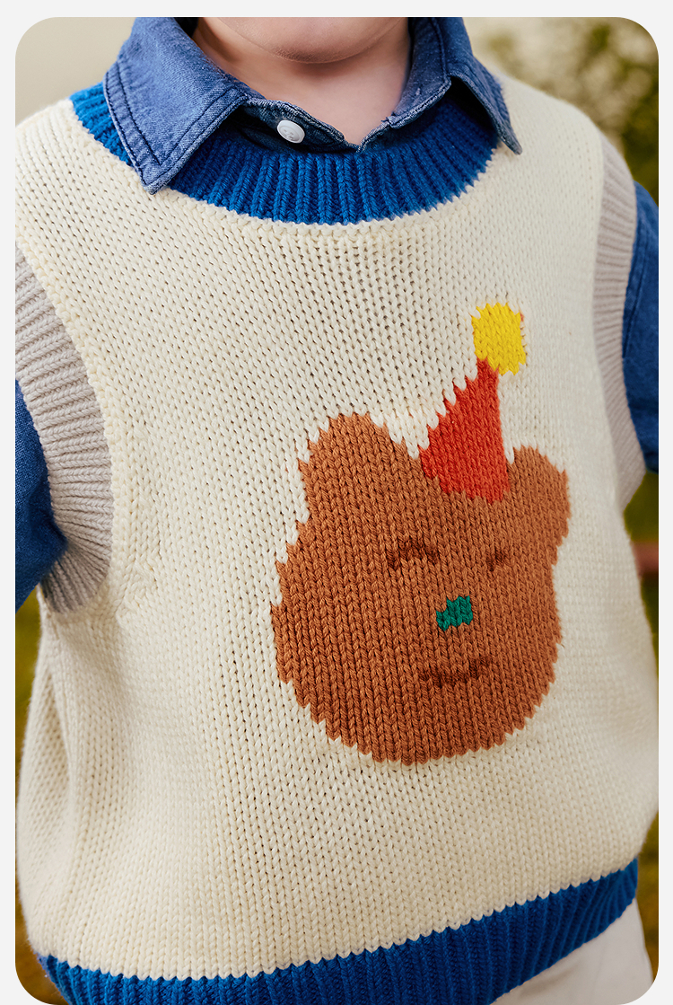 【艺术家联名】迷你巴拉男女童宝宝针织背心萌趣刺绣图案2025秋新