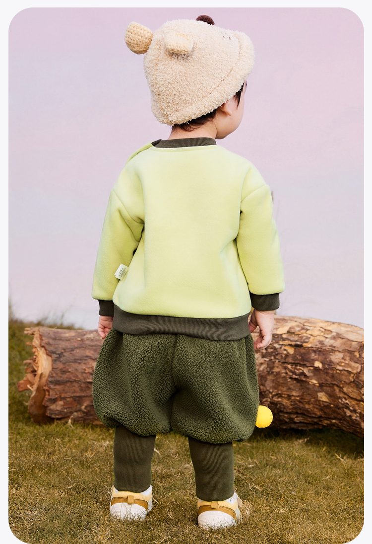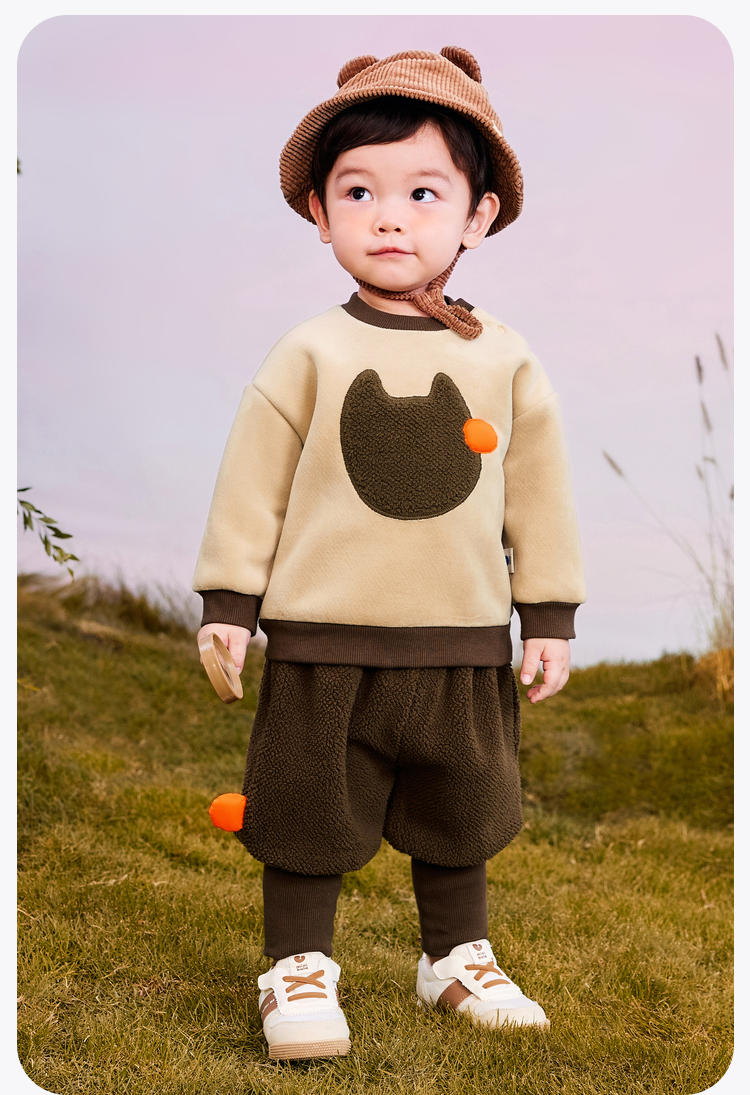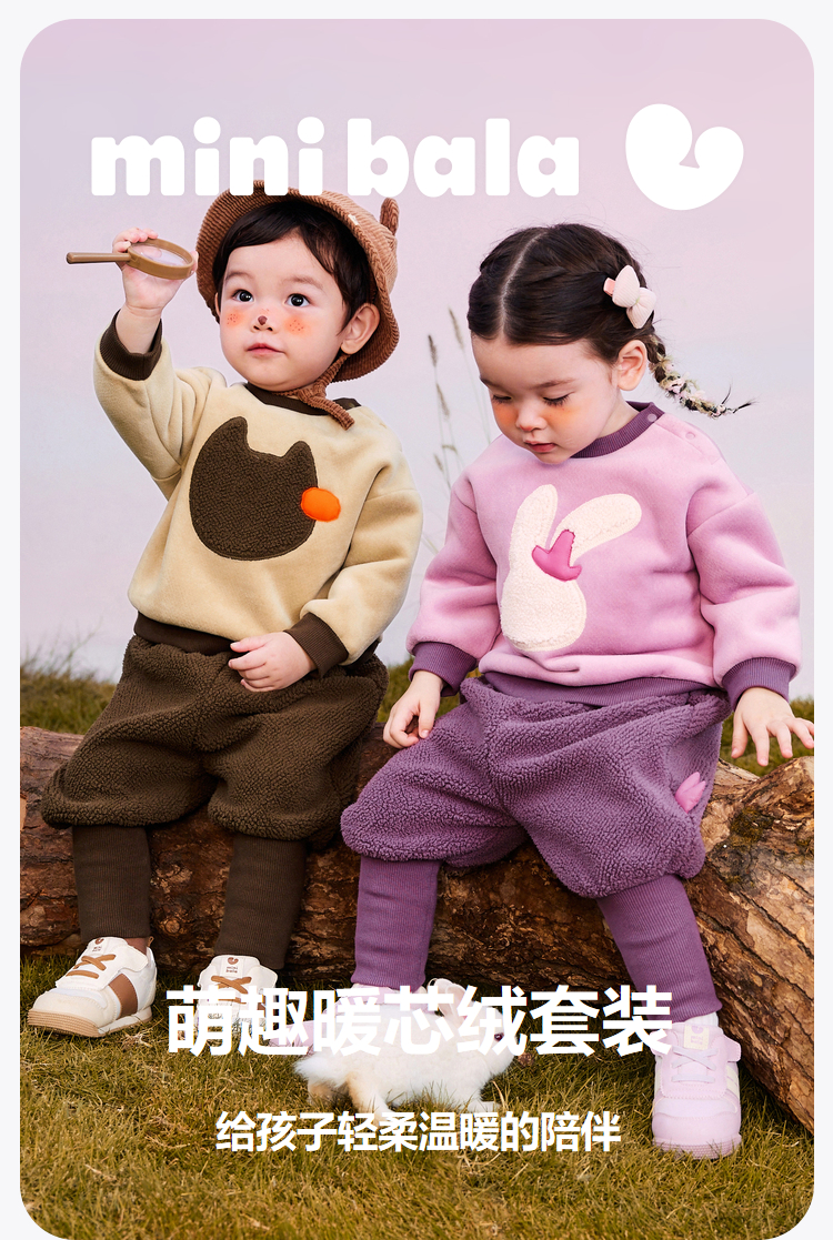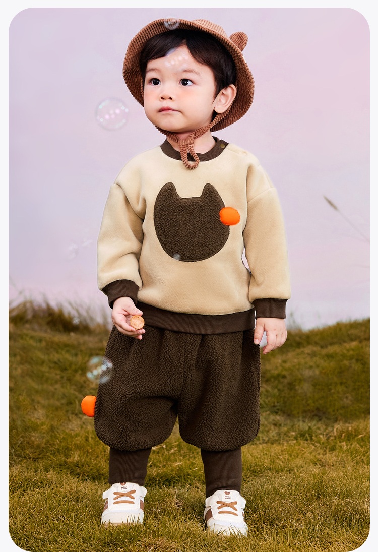 【暖芯绒】迷你巴拉长袖套装男女童宝宝双面宽松萌趣毛绒两件套