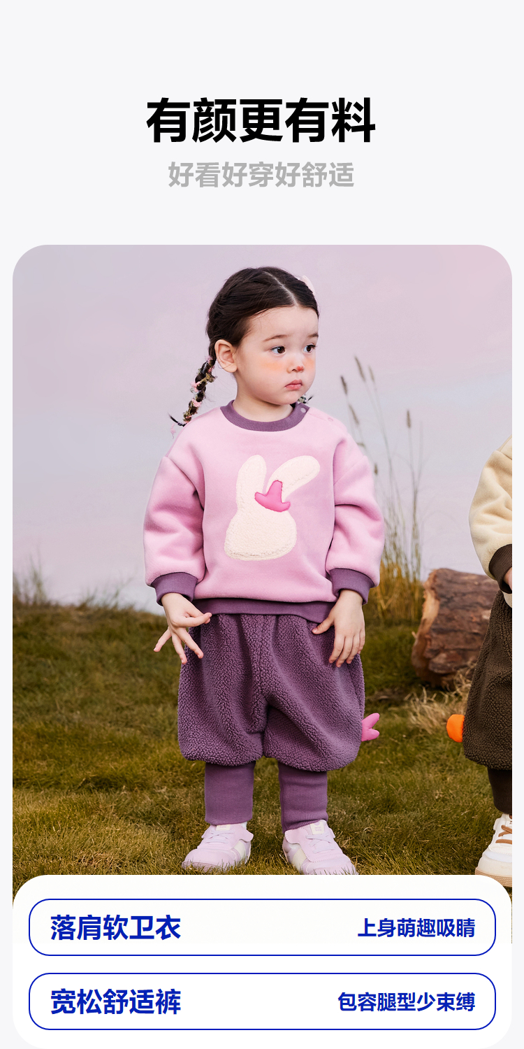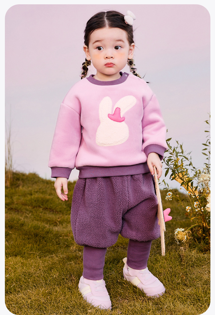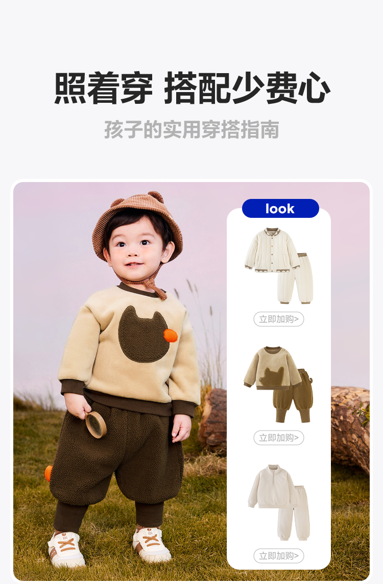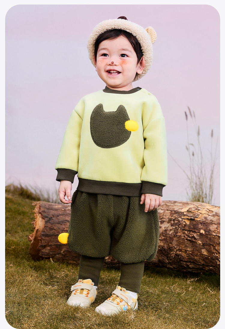 【暖芯绒】迷你巴拉长袖套装男女童宝宝双面宽松萌趣毛绒两件套
