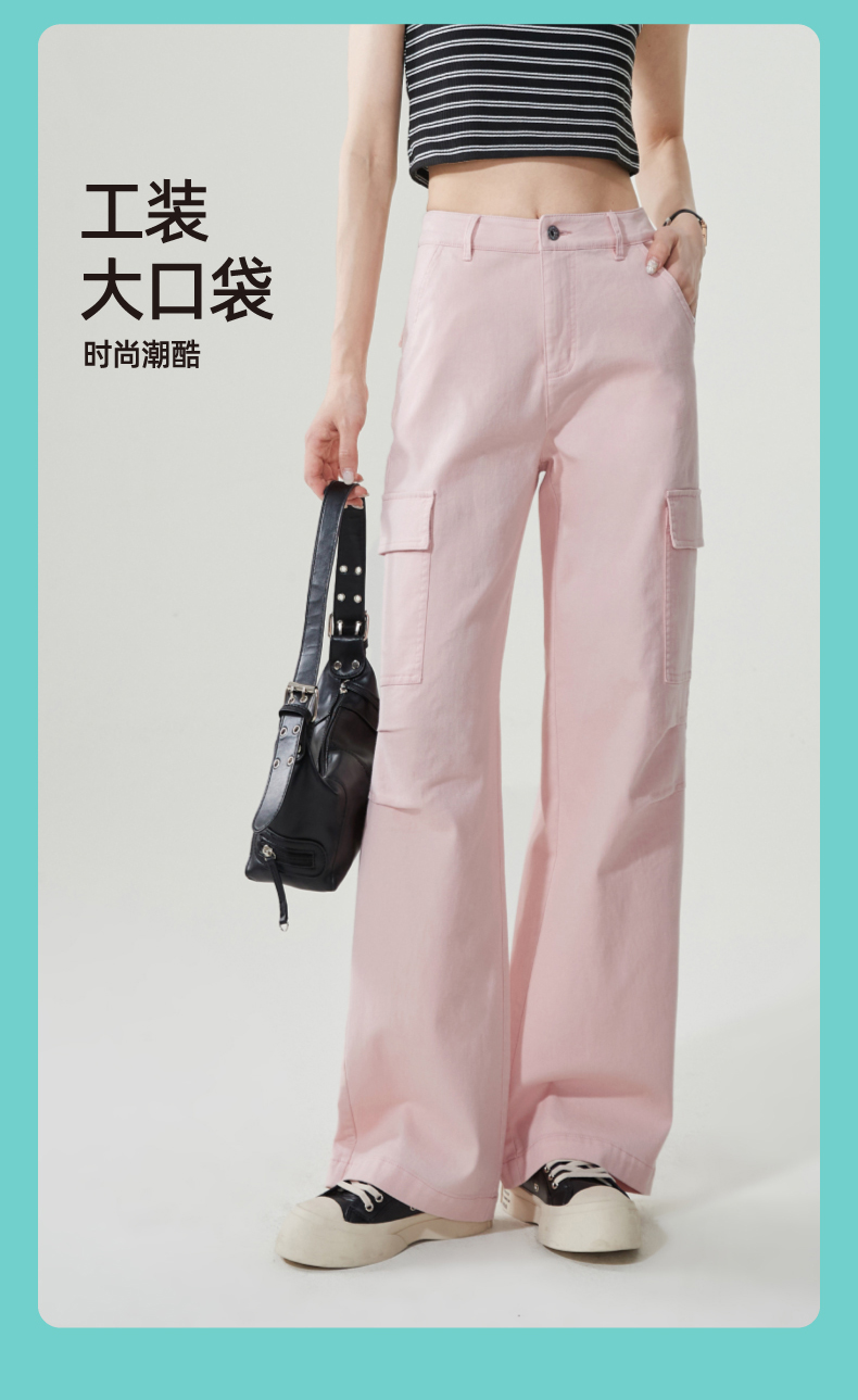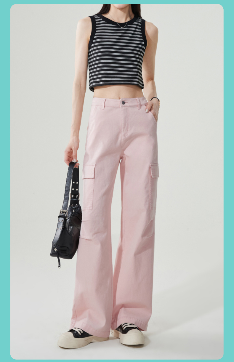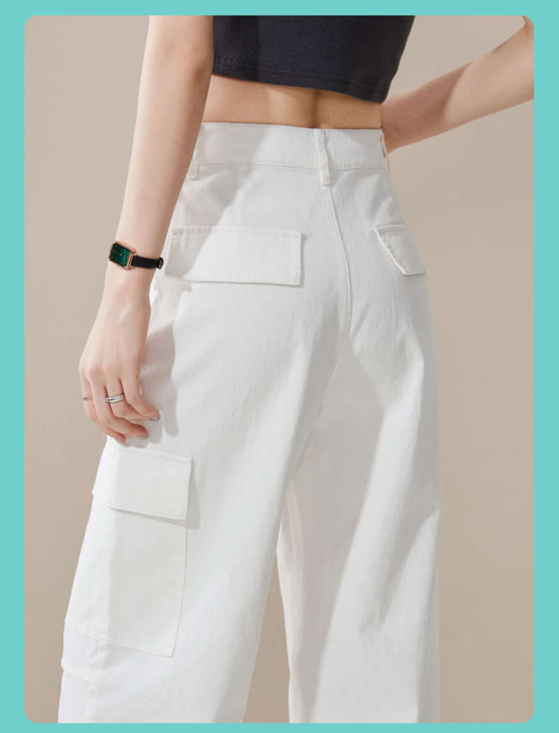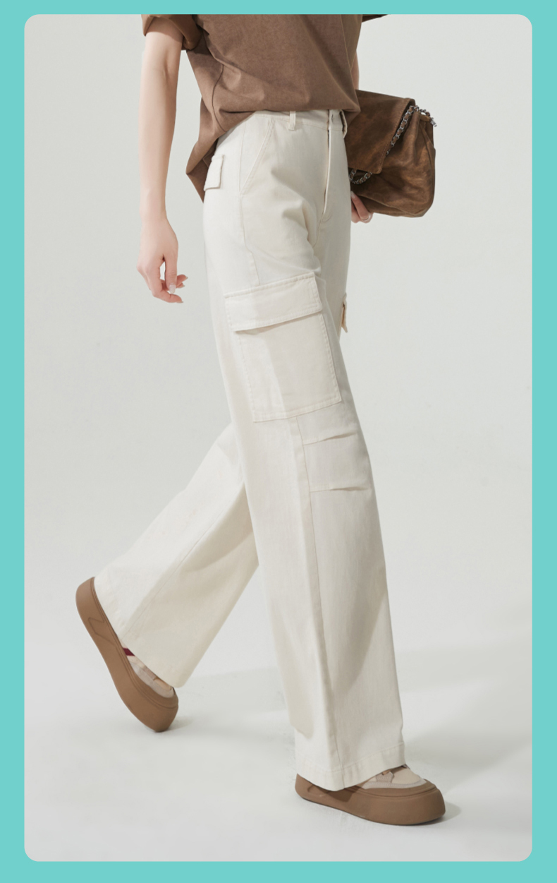 【降价!夏薄-彩棉工装裤】逸阳大口袋宽松显瘦阔腿牛仔裤子1094