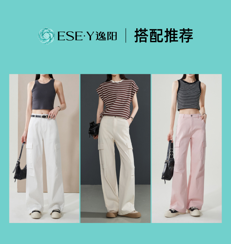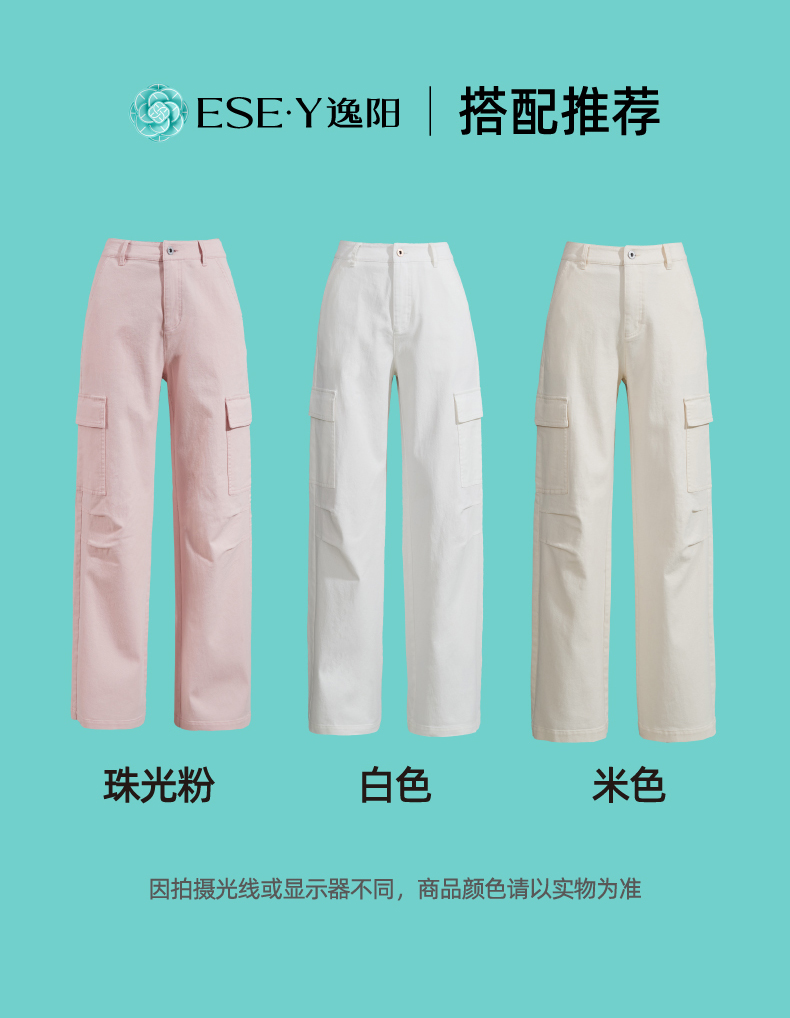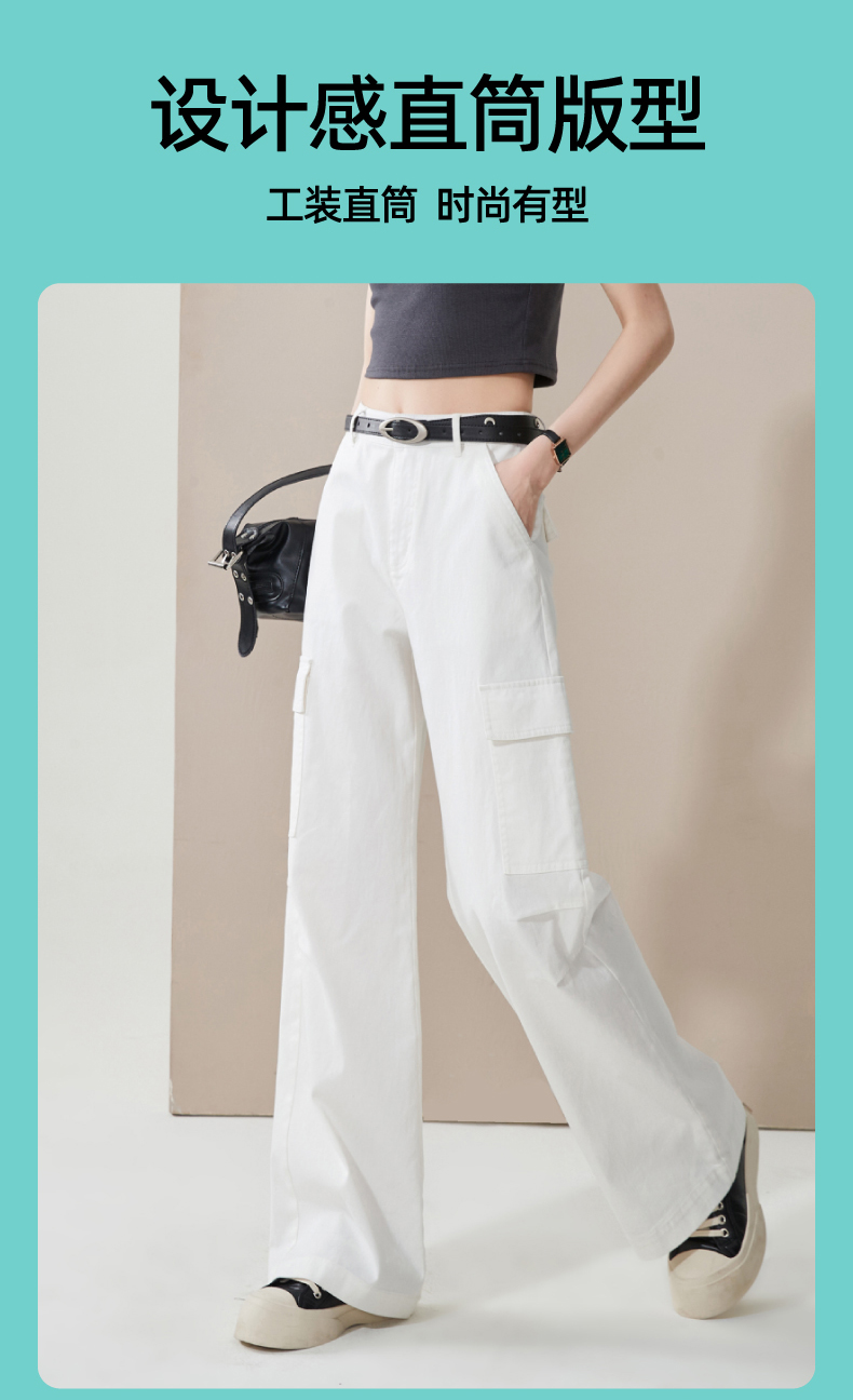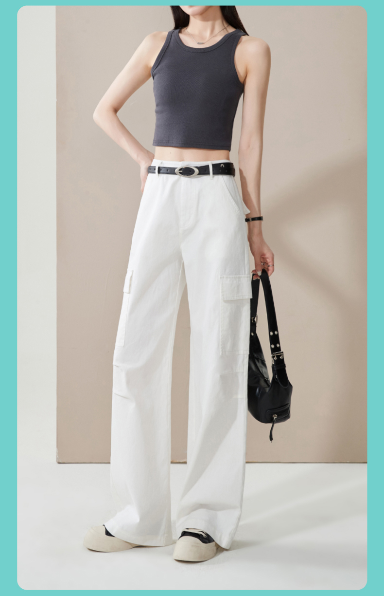 【降价!夏薄-彩棉工装裤】逸阳大口袋宽松显瘦阔腿牛仔裤子1094