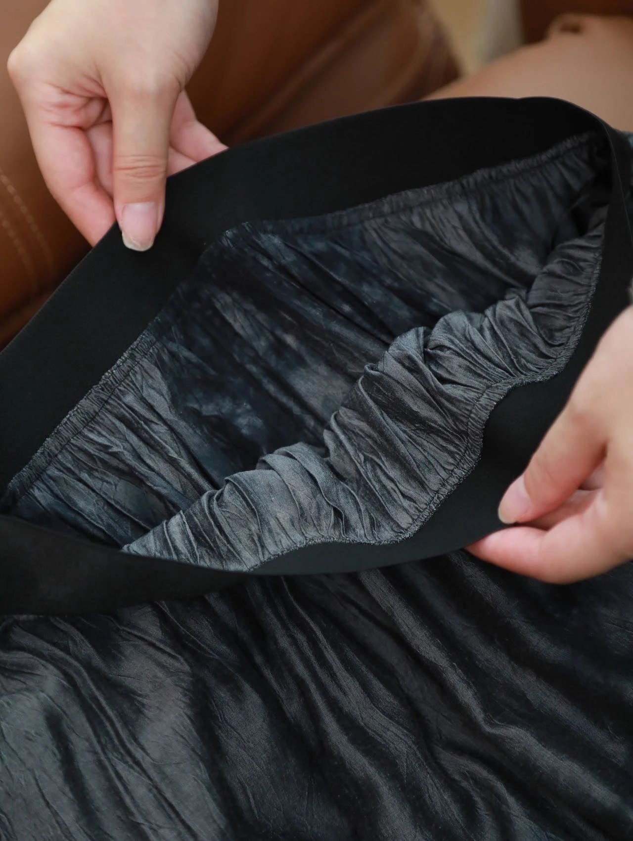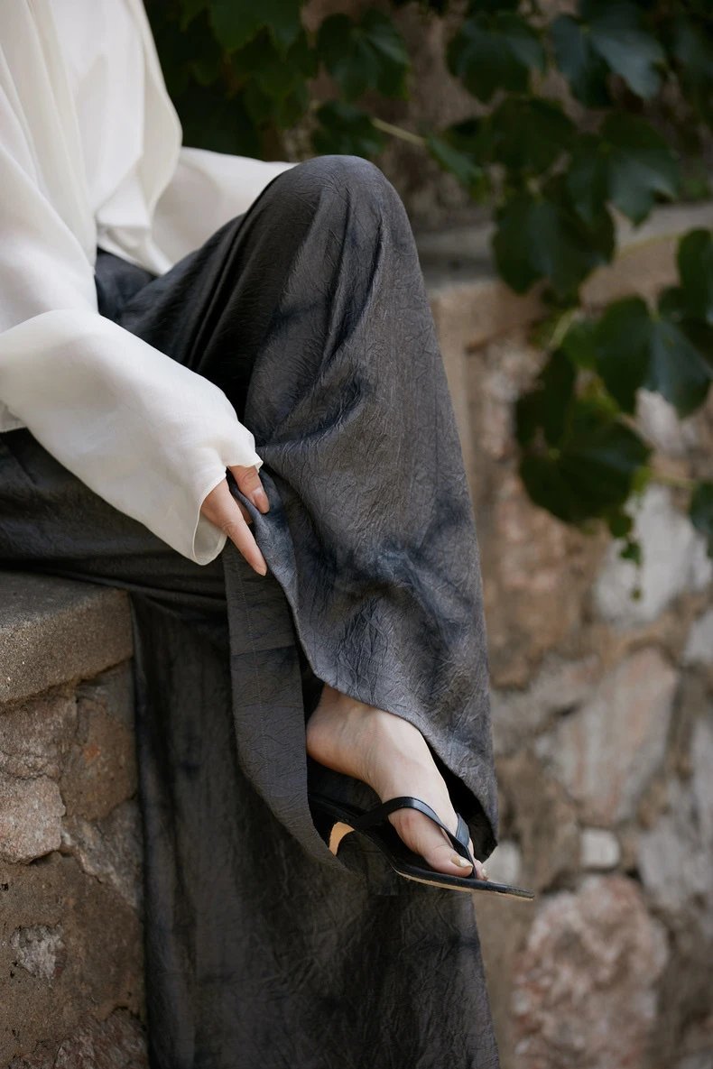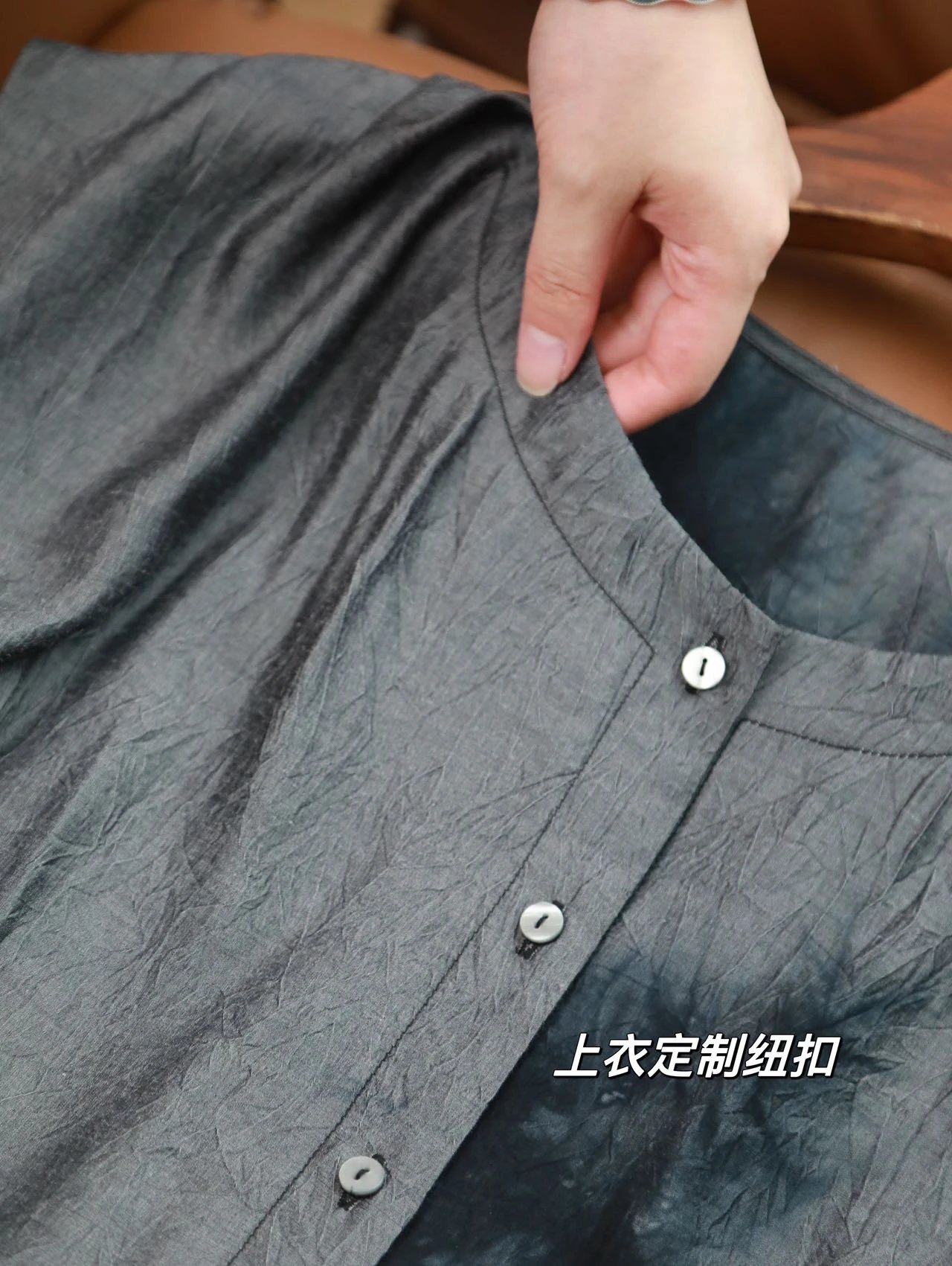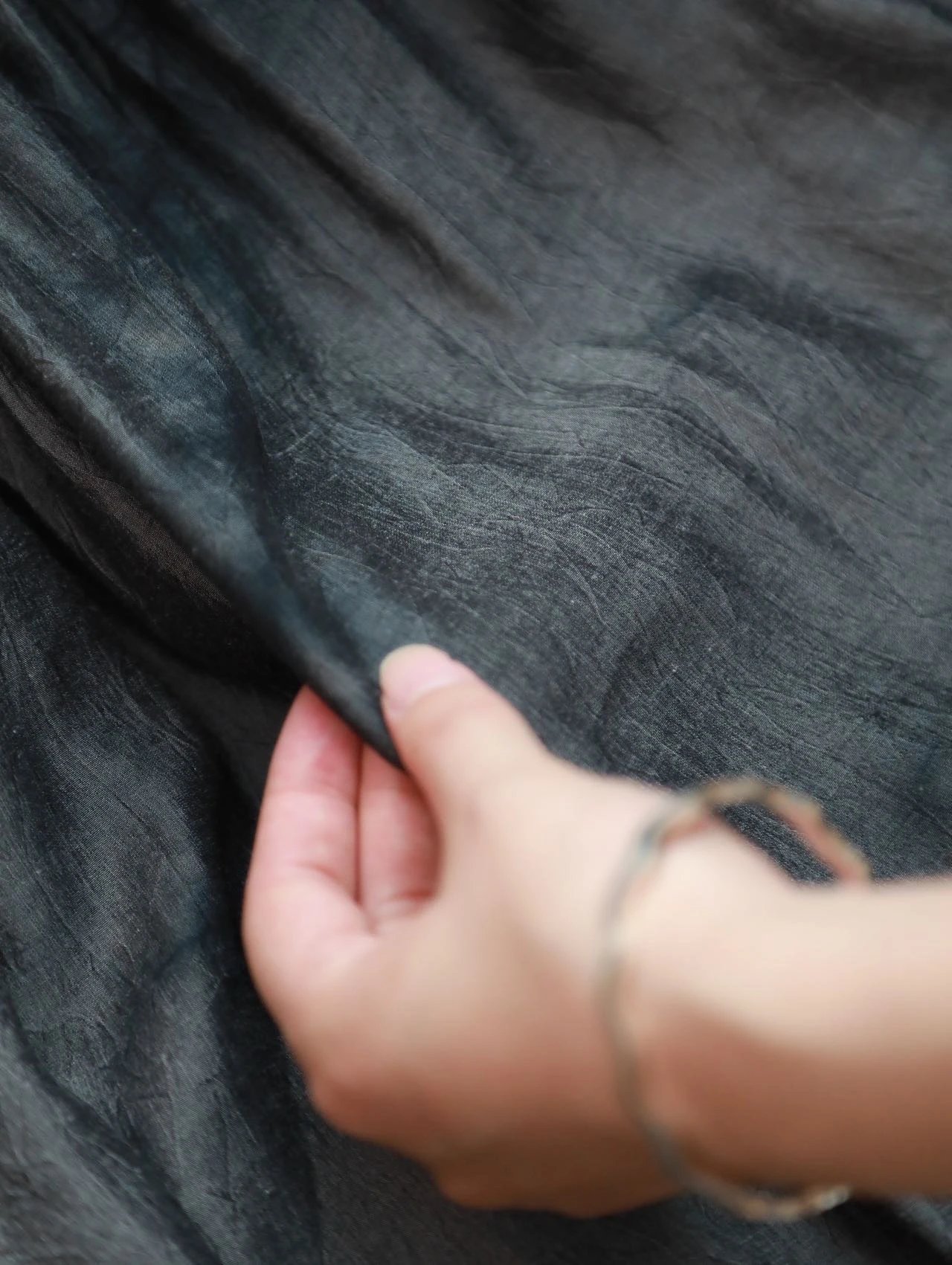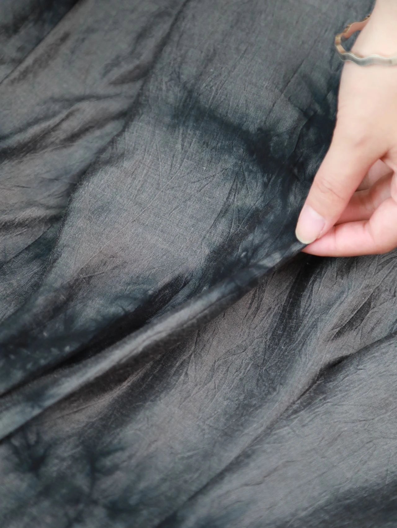 随性自然地扎染工艺,呈现黑、灰、墨兰晕染渐变