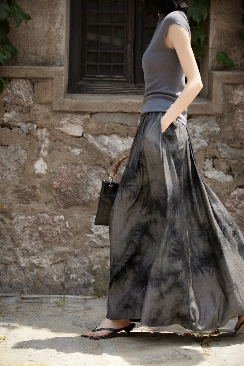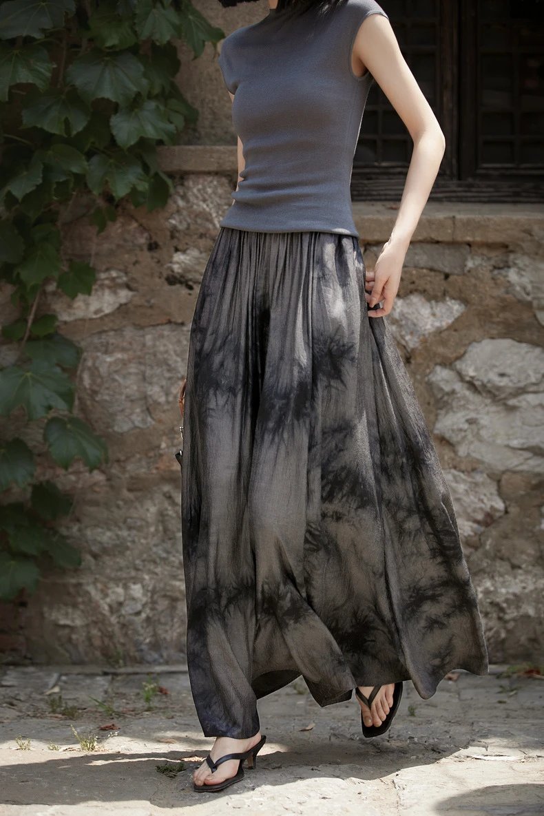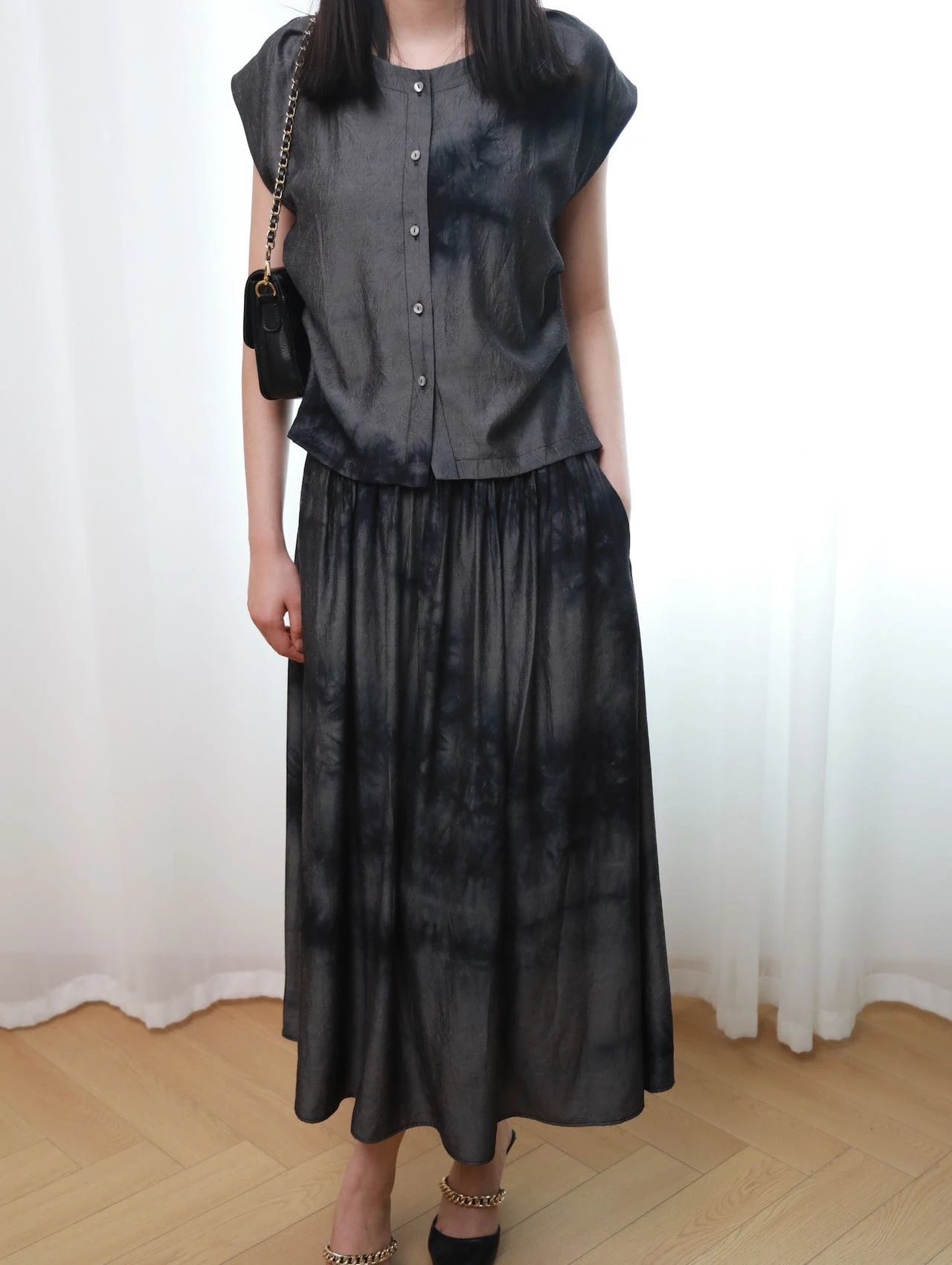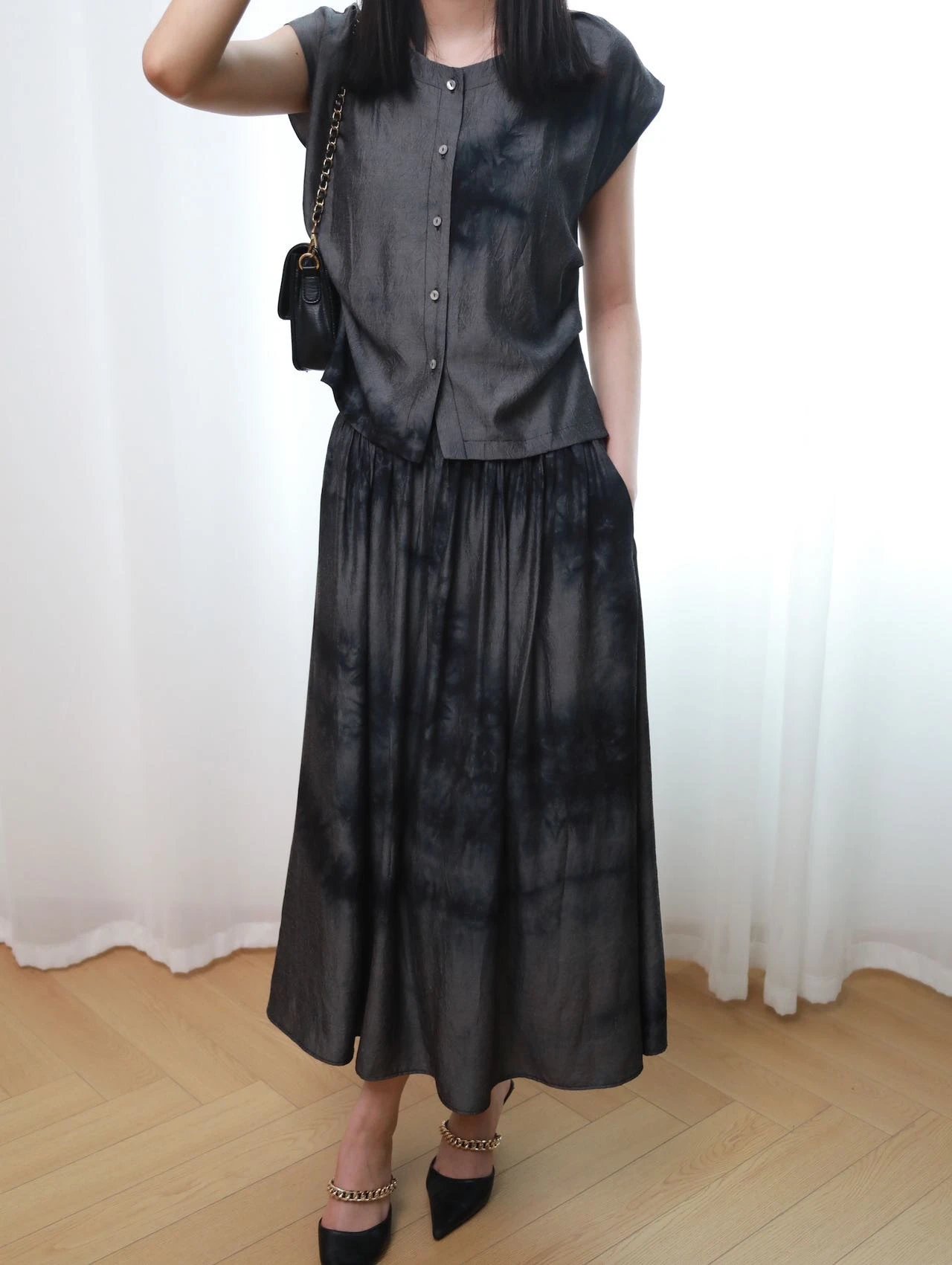 LPIUTY品牌直发!水墨扎染醋酸 短袖B08ZJ-24-7-58/阔腿裤B08ZJ-680708/半身裙B08ZJ-680709
