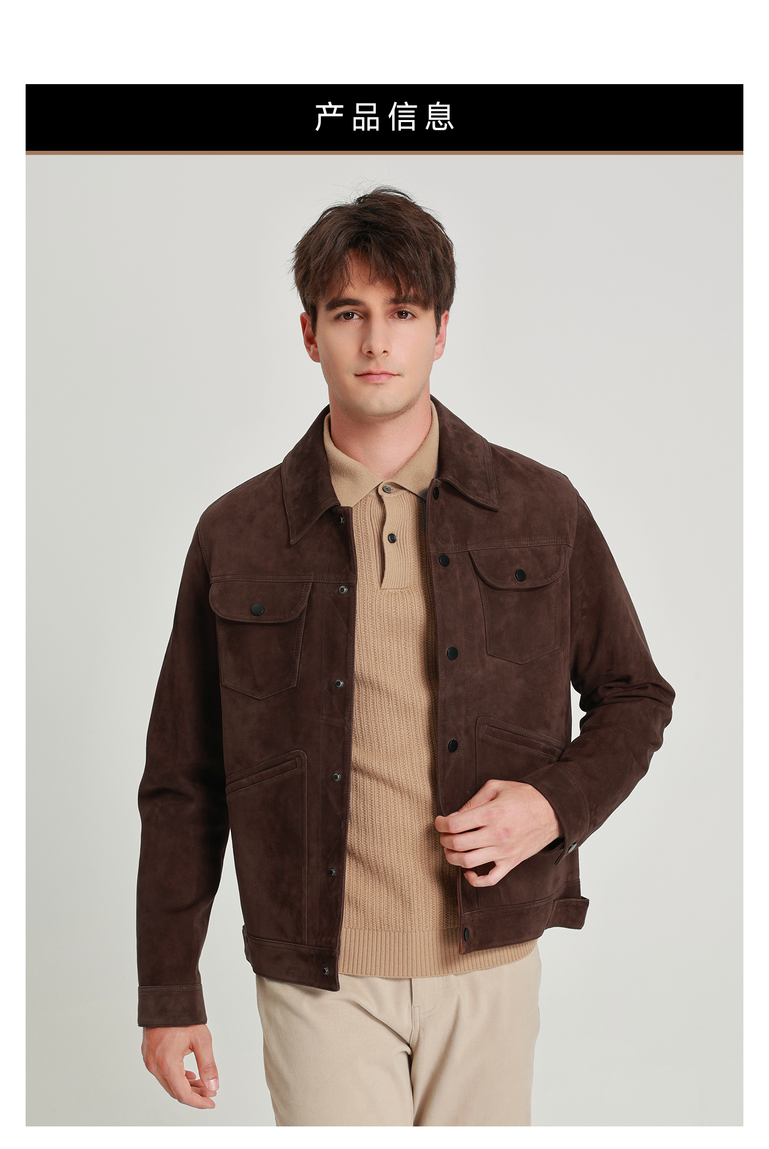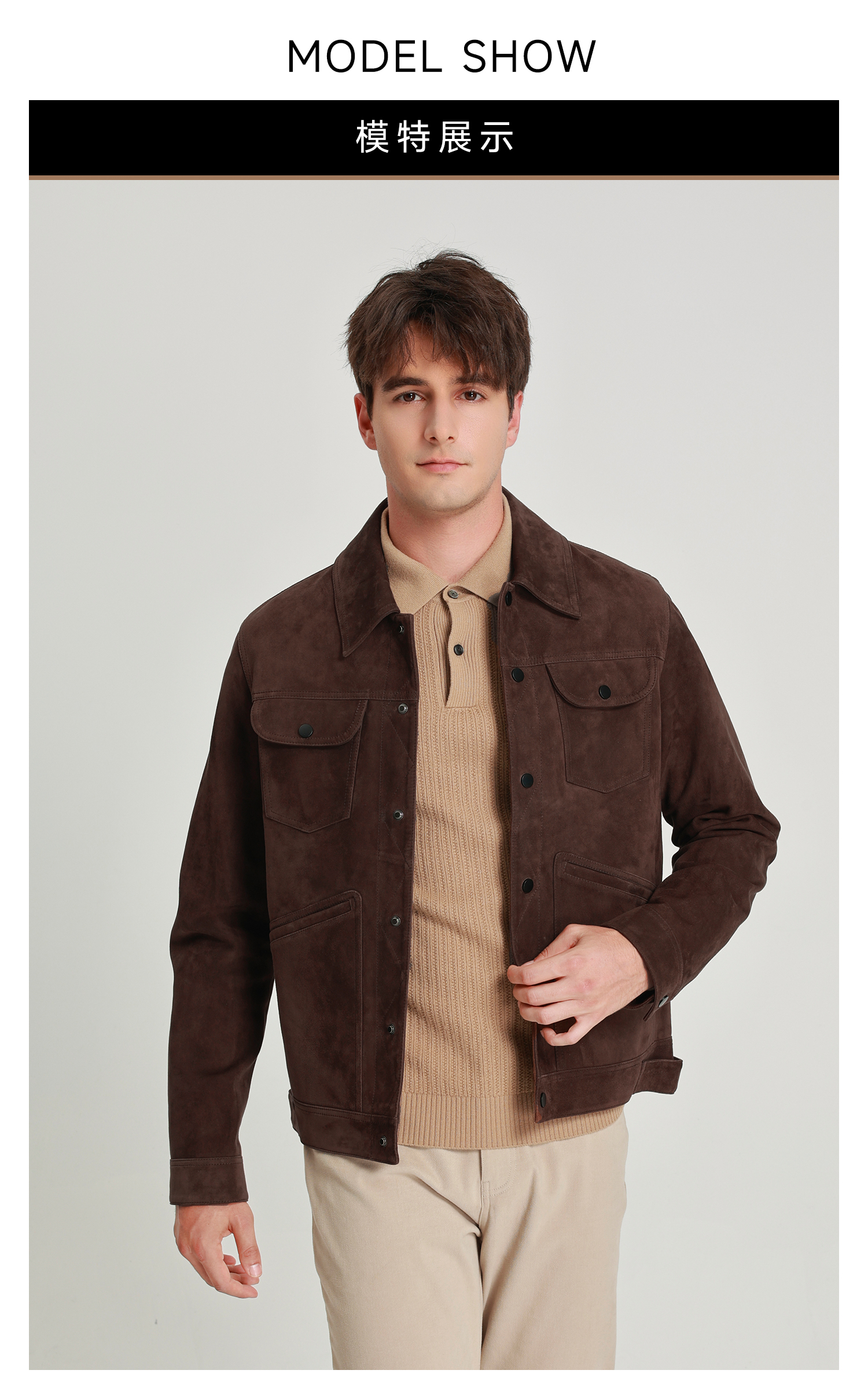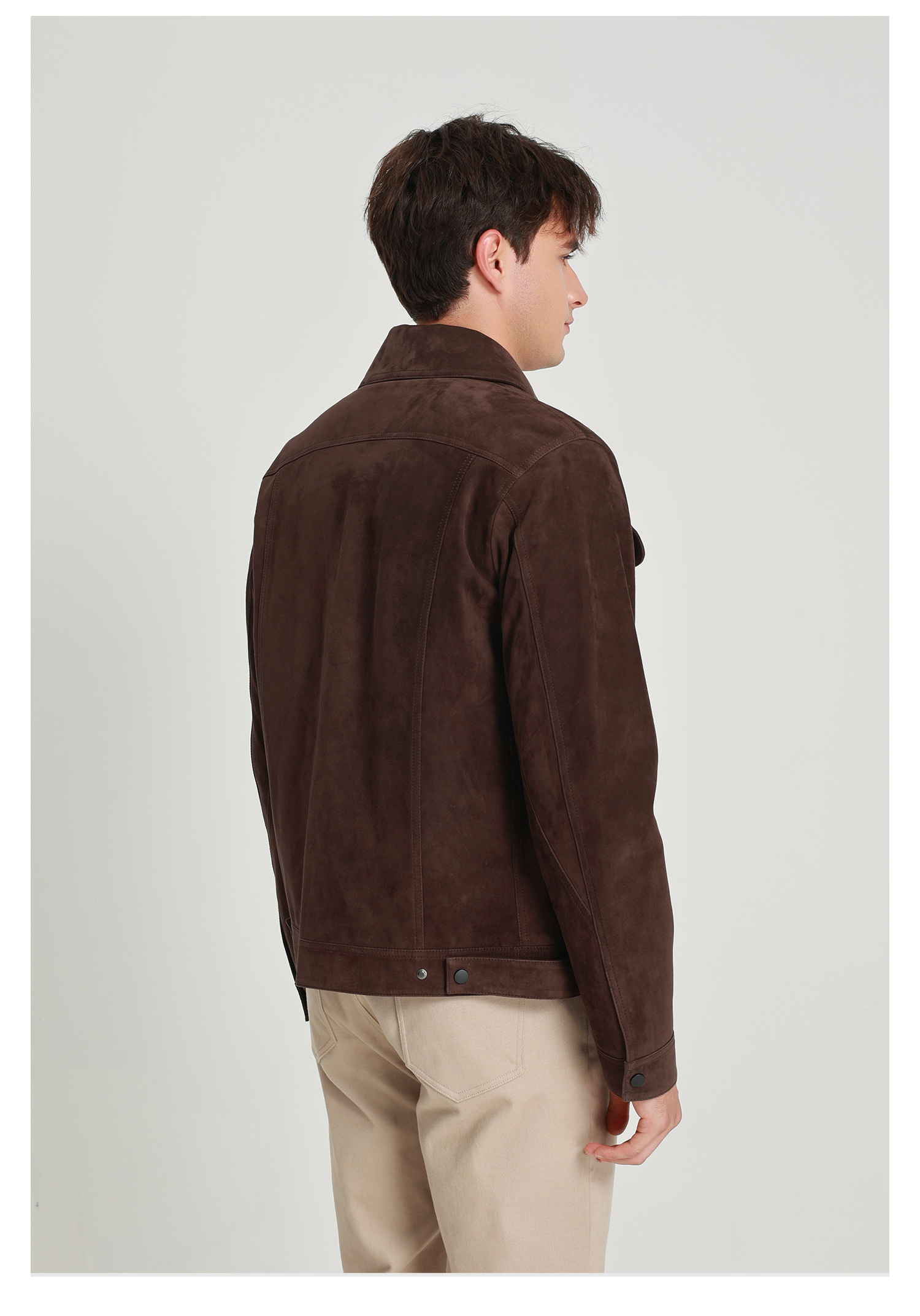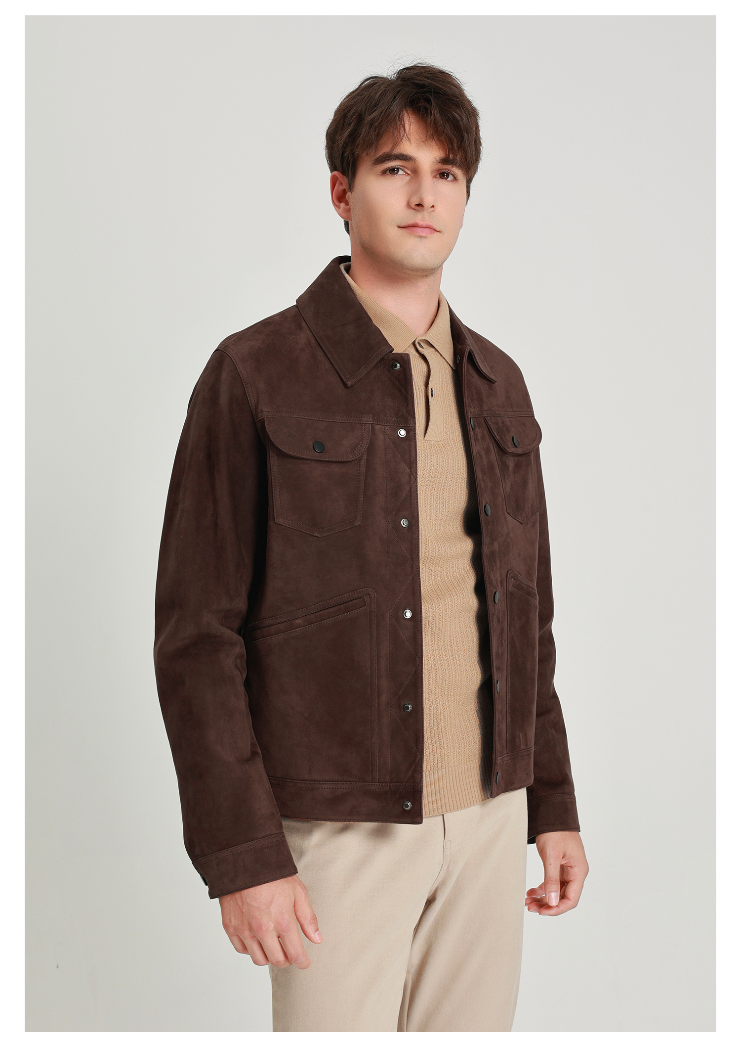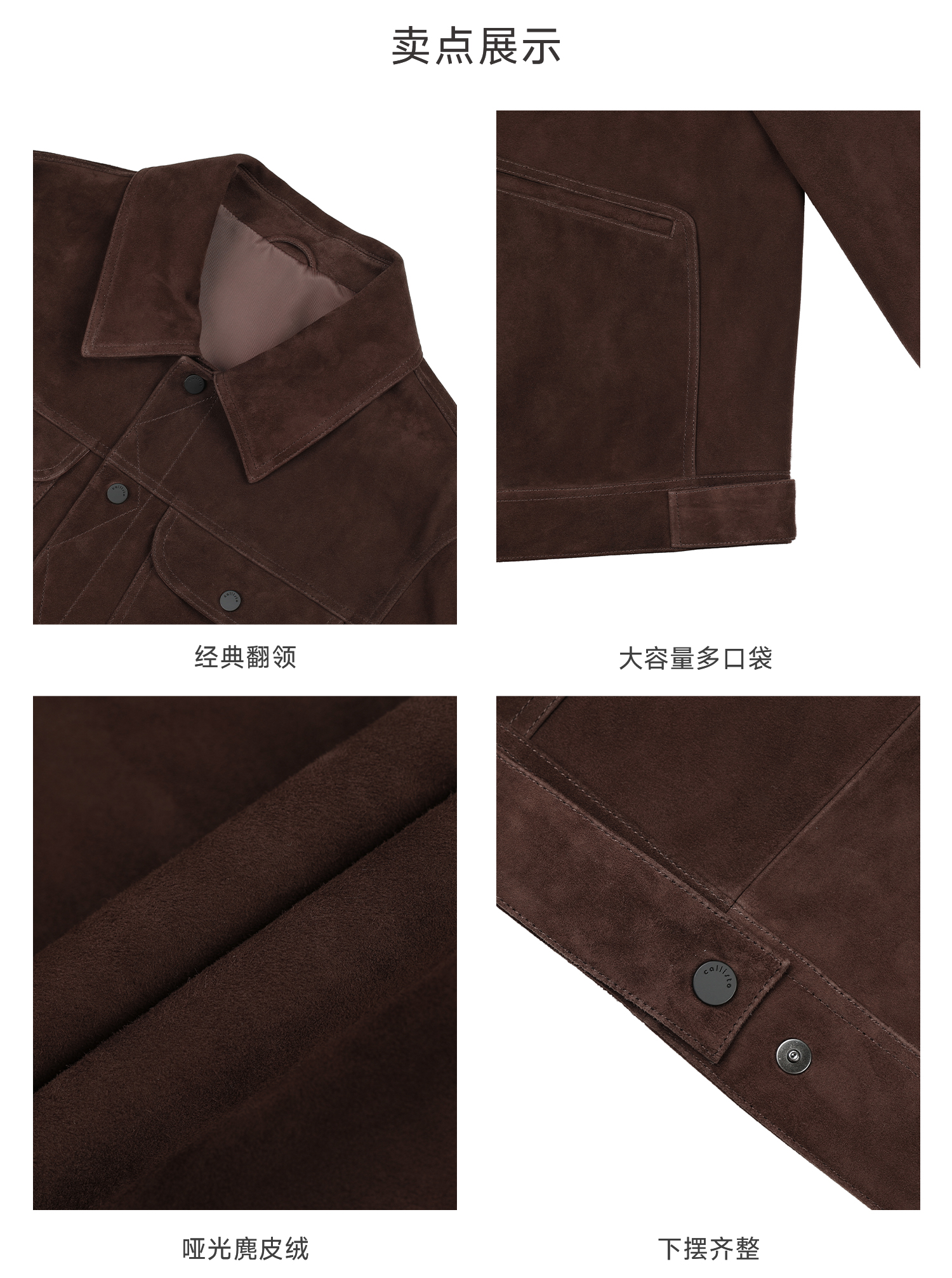 callisto雪茄棕麂皮绒羊皮革轻工装皮衣