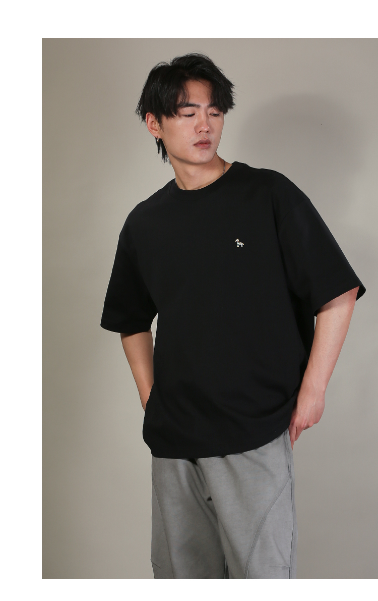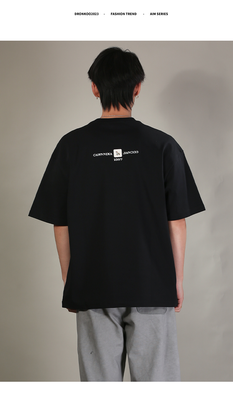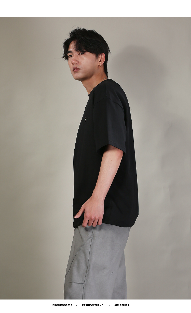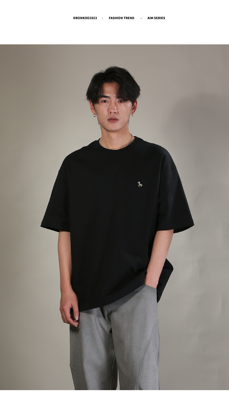 DRONKOO 2026 圆领左胸彩色马后皮标字母刺绣微阔短袖T恤