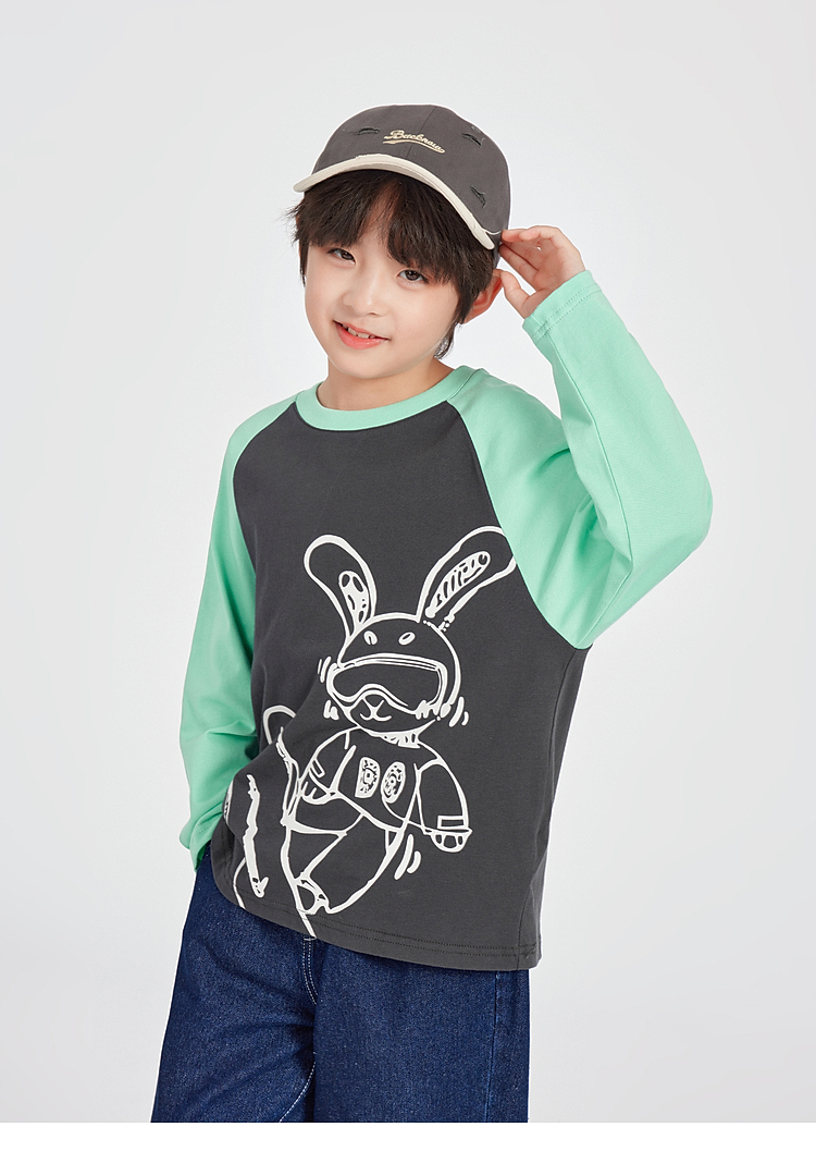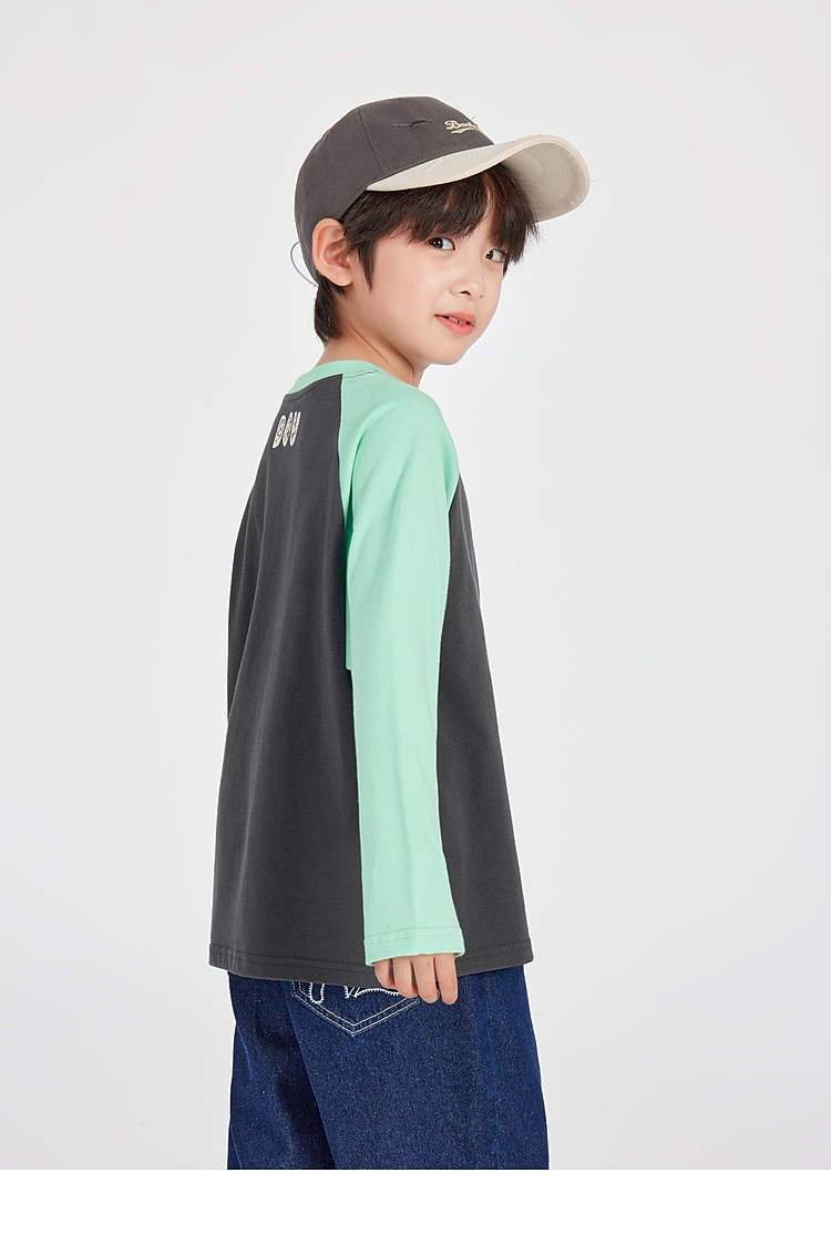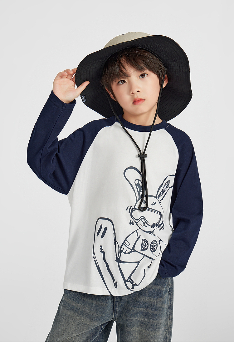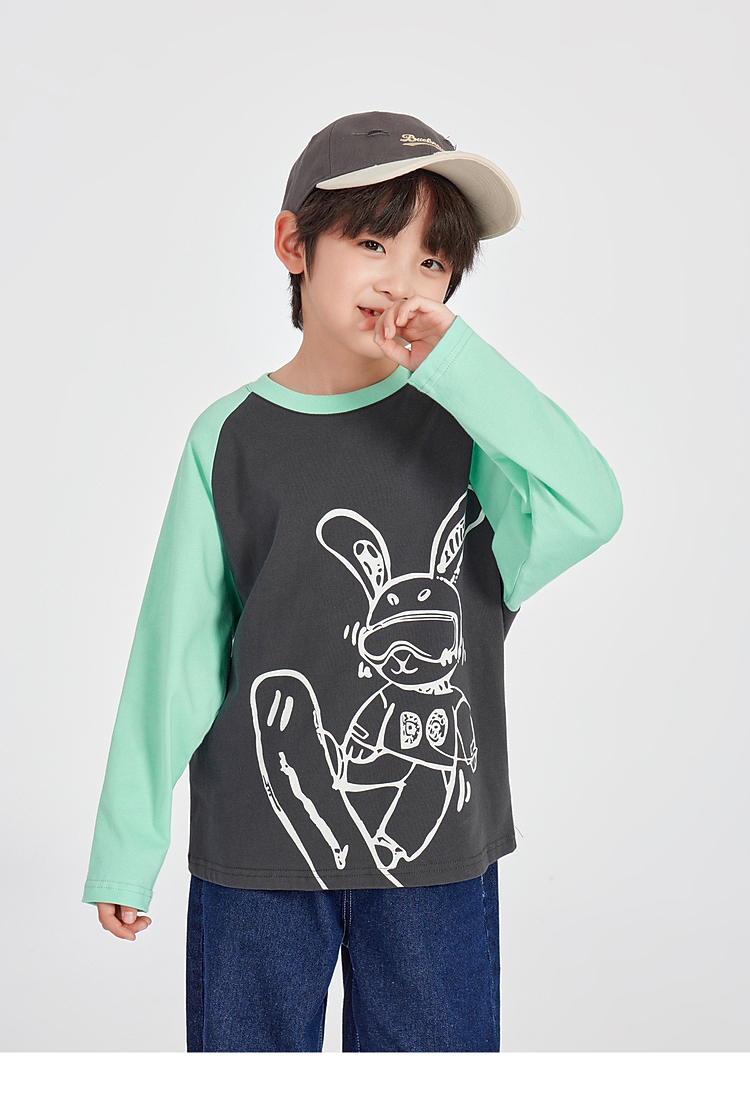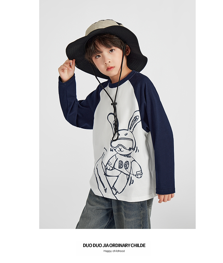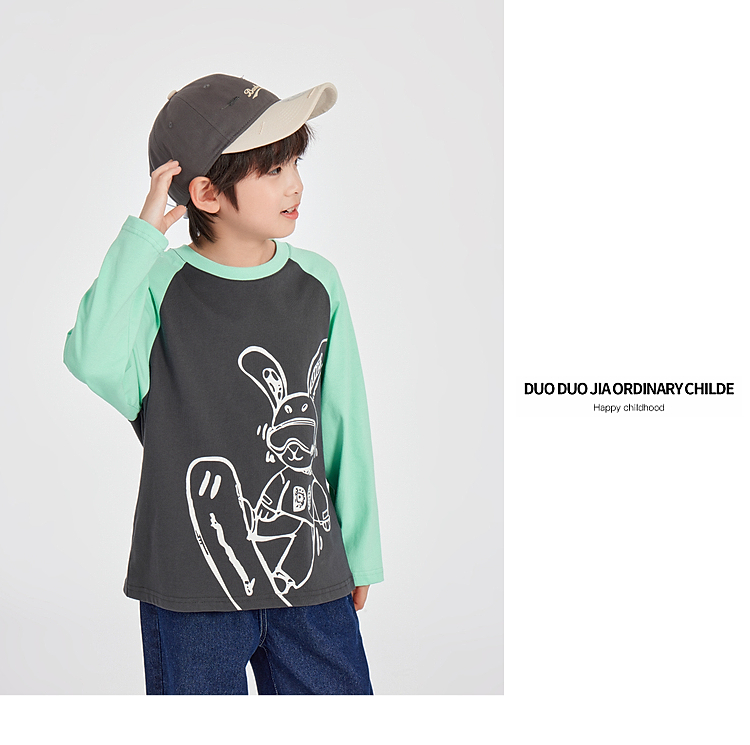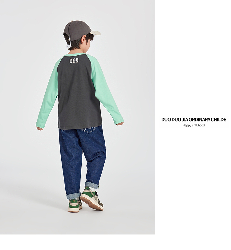 【团购价29.9】多多家男童长袖T恤纯棉2025春秋新款儿童中大童撞色印花打底衫潮10344