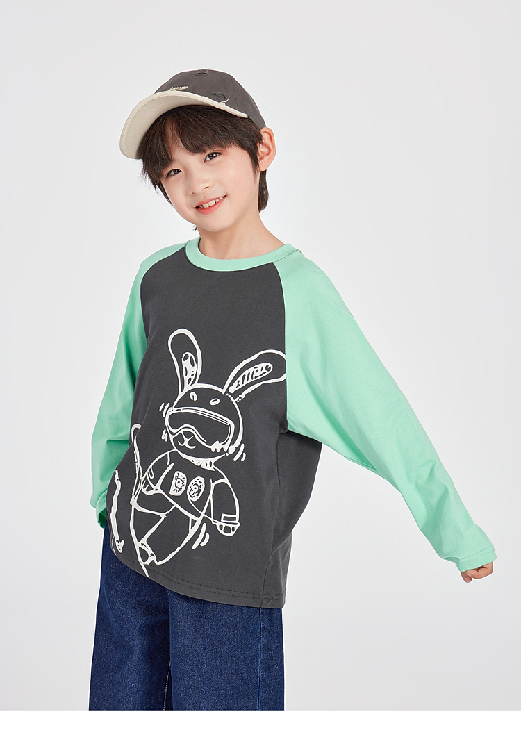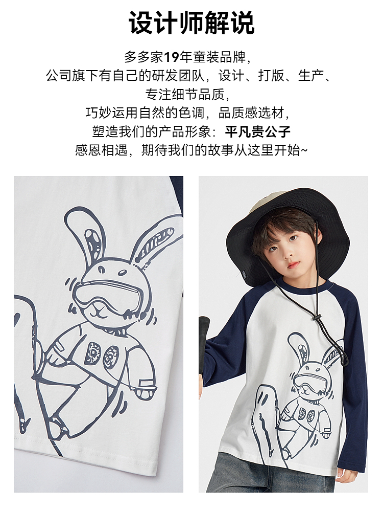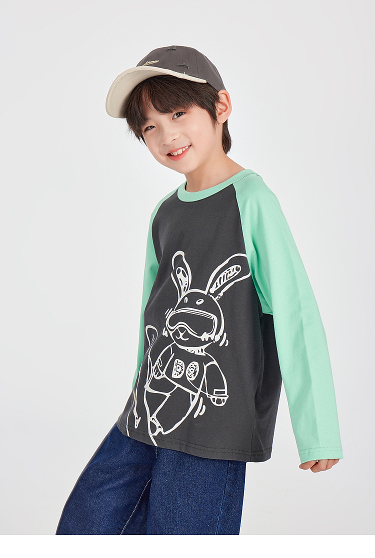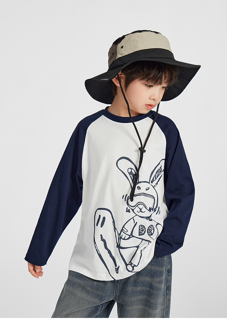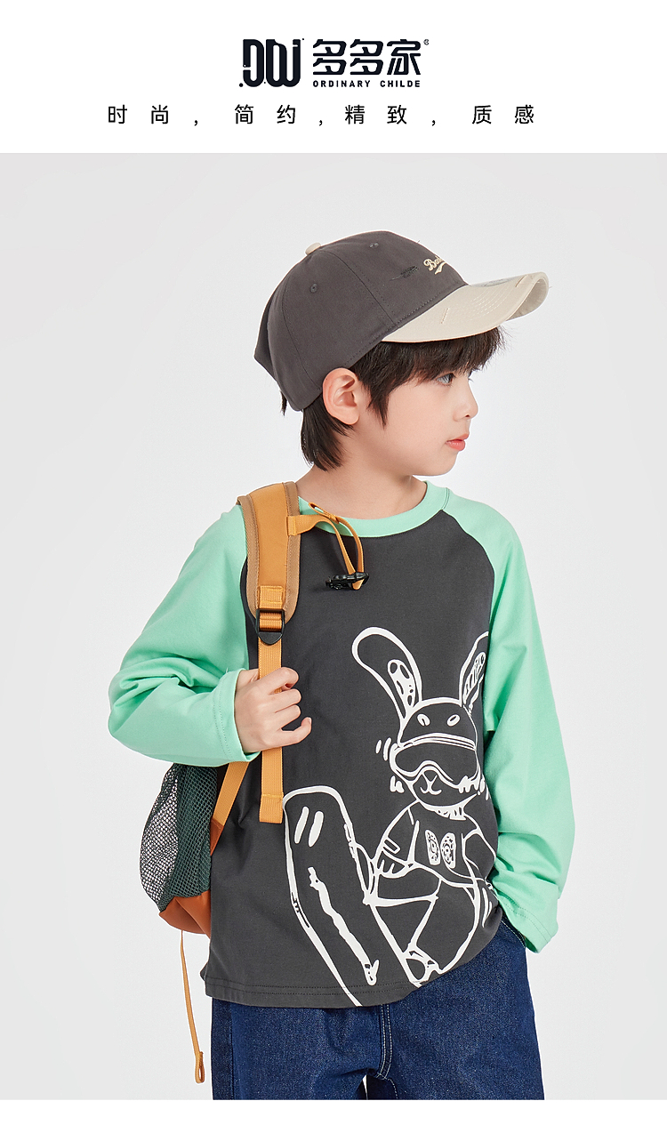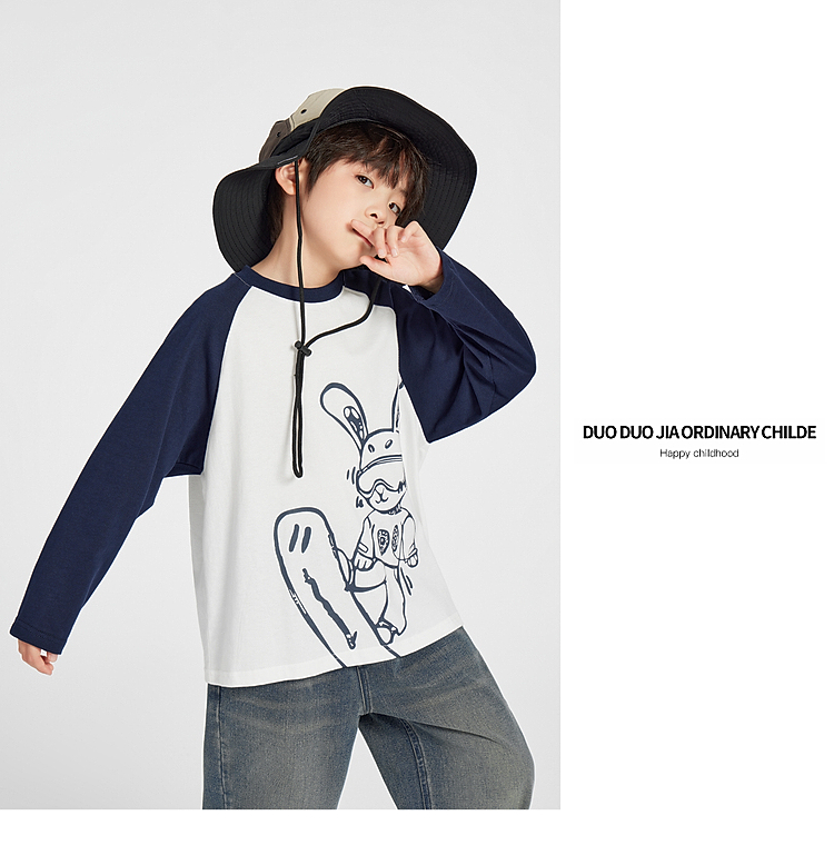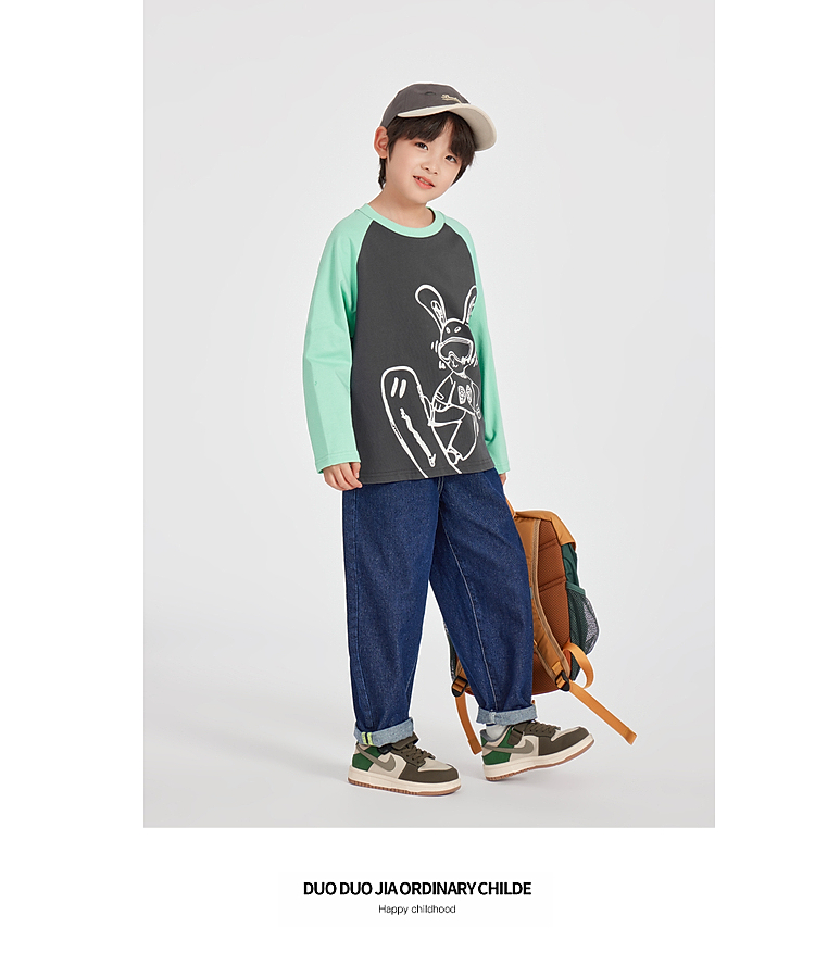 【团购价29.9】多多家男童长袖T恤纯棉2025春秋新款儿童中大童撞色印花打底衫潮10344