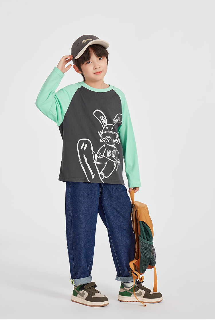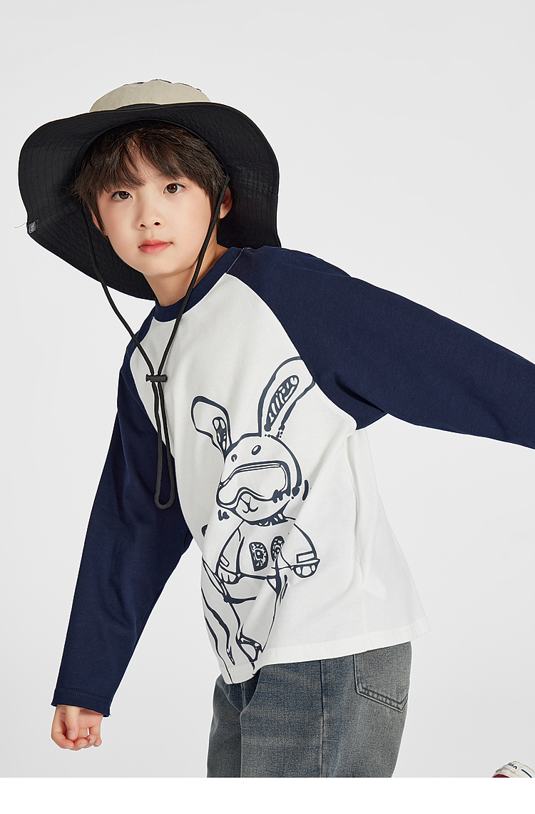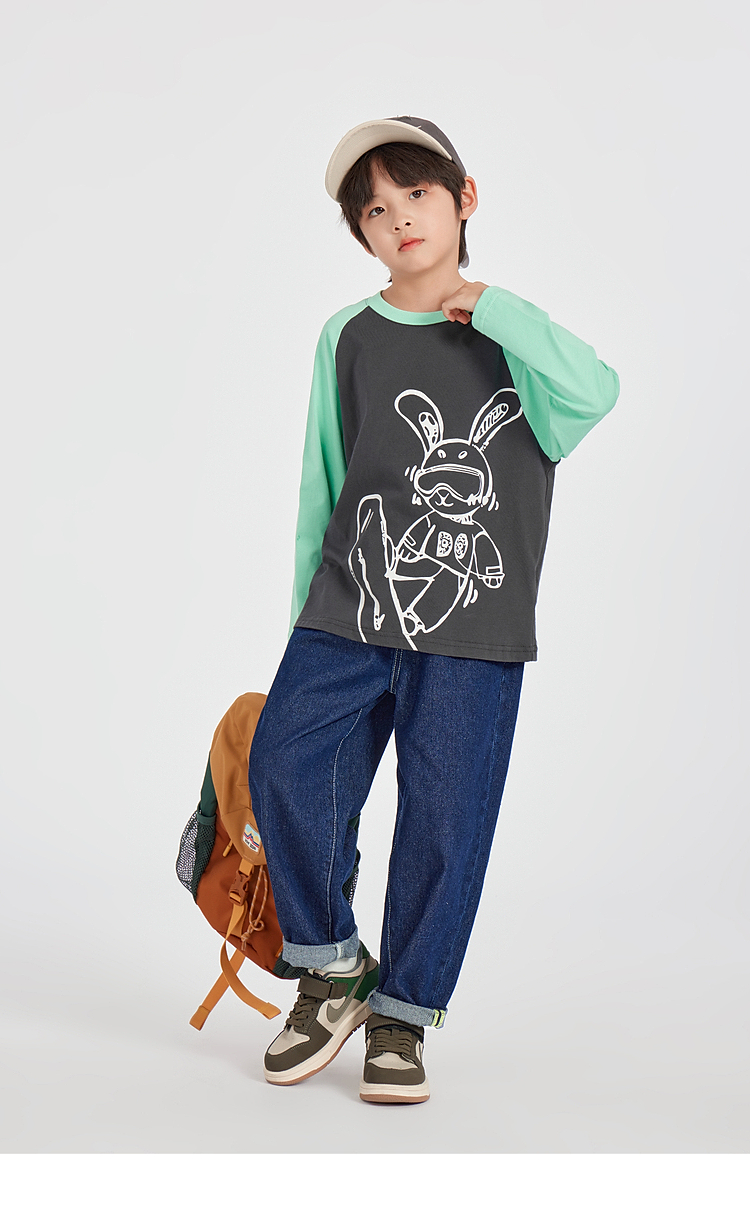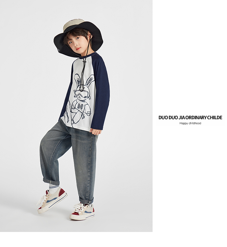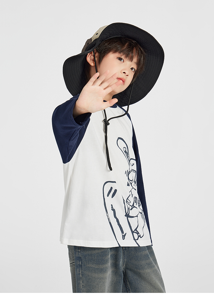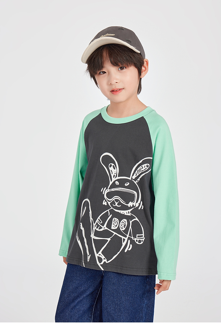 【团购价29.9】多多家男童长袖T恤纯棉2025春秋新款儿童中大童撞色印花打底衫潮10344